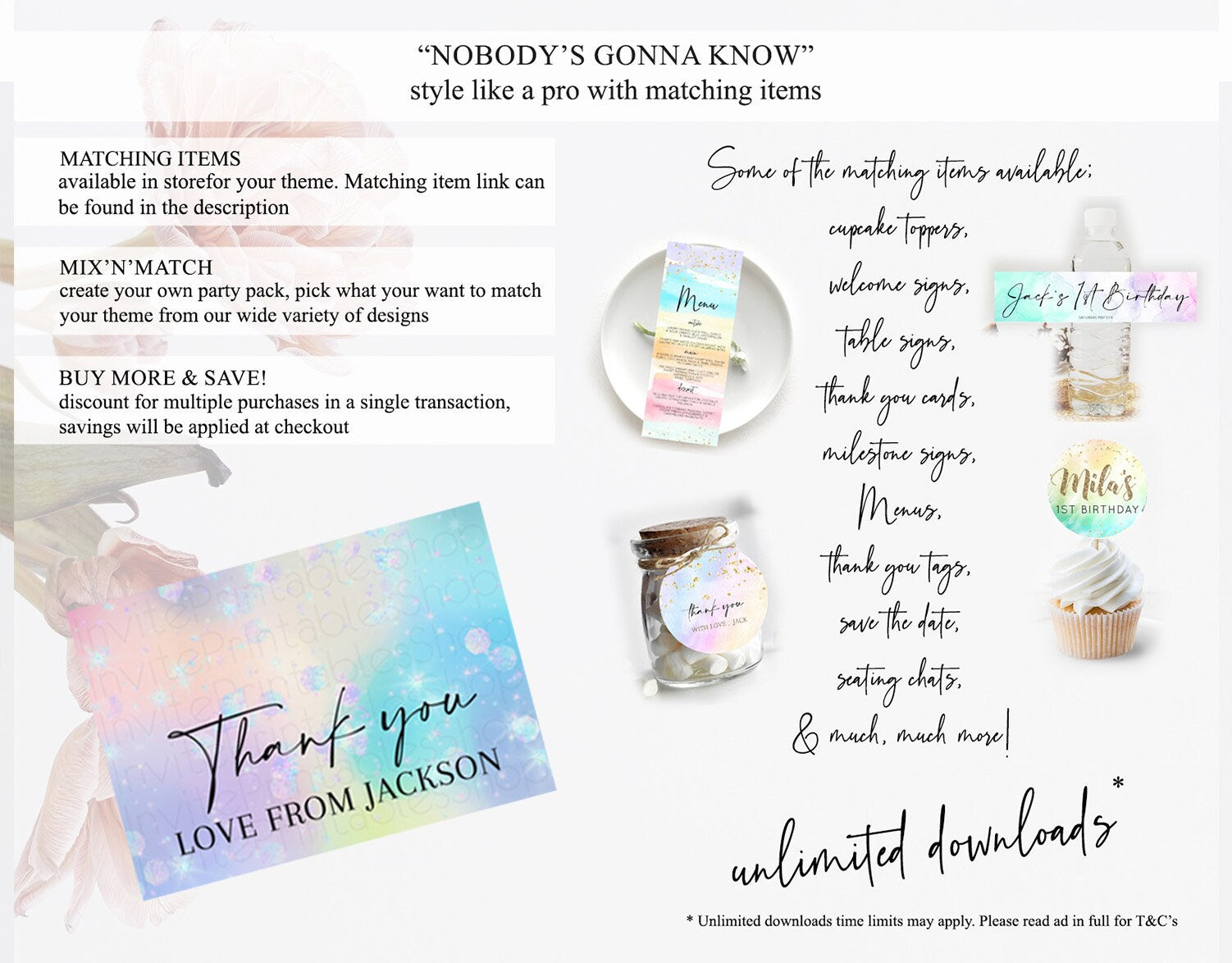 • Content shown in your gallery images is the source of truth for what’s included.