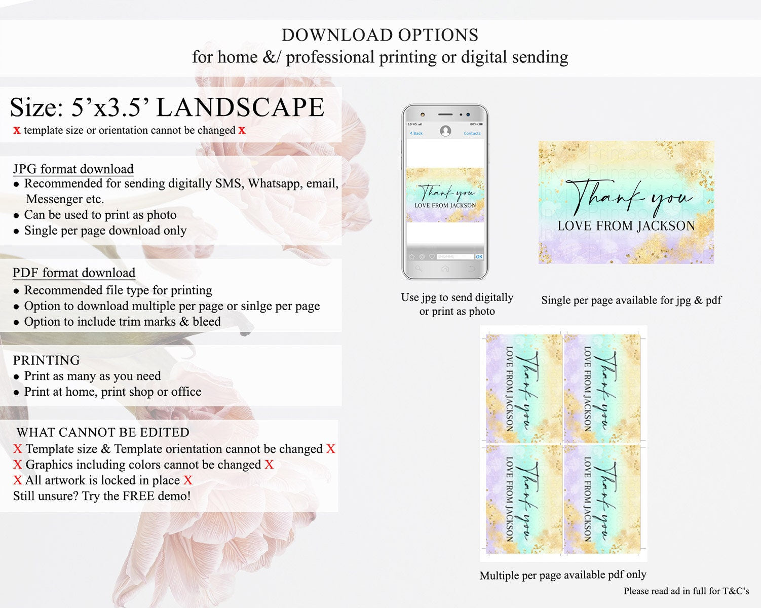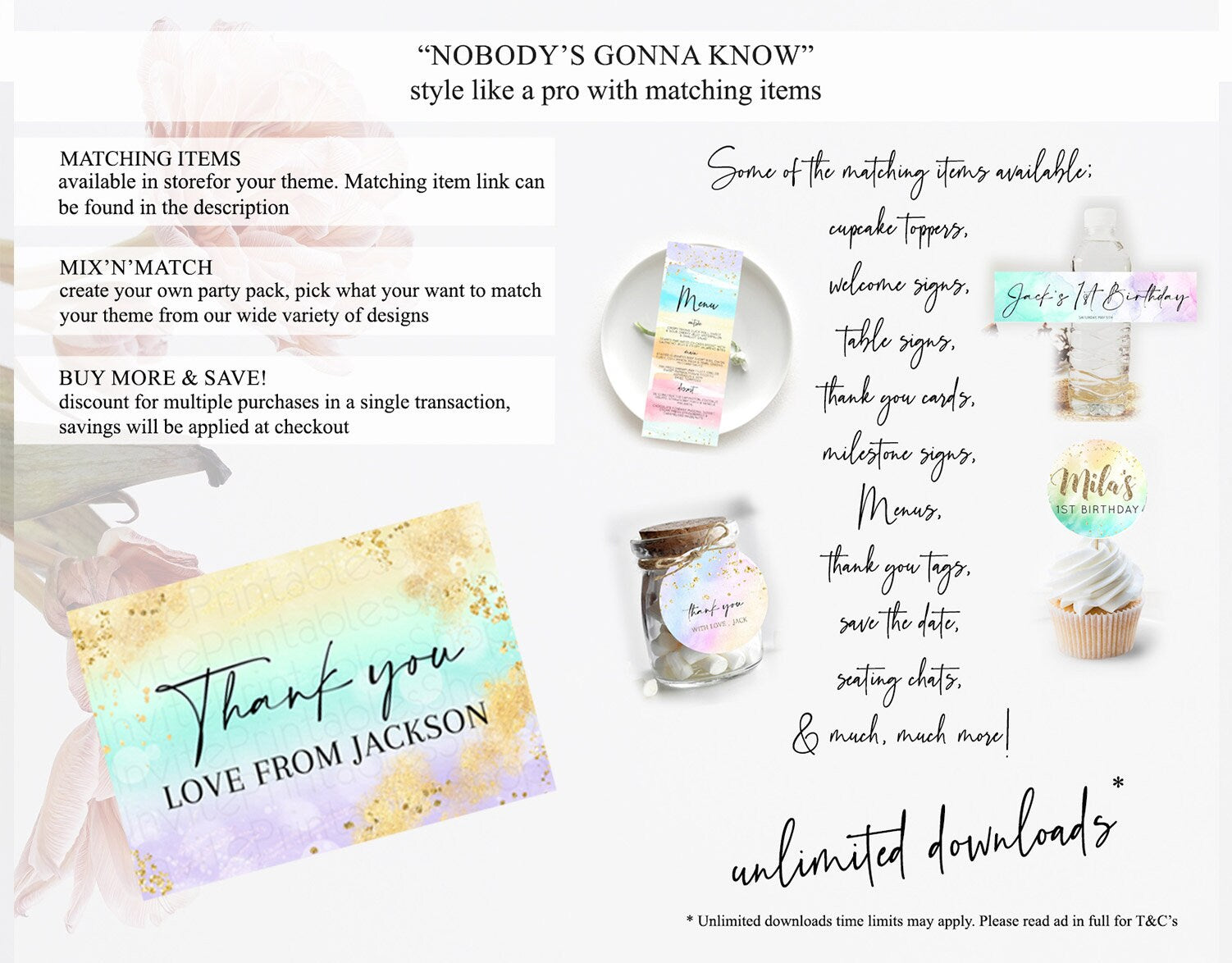 Pastel Thank You Rainbow Thank You Card Colorful Pastel Birthday Thank You Card Confetti Watercolor Pastel Teacher Thank You Cards D10672