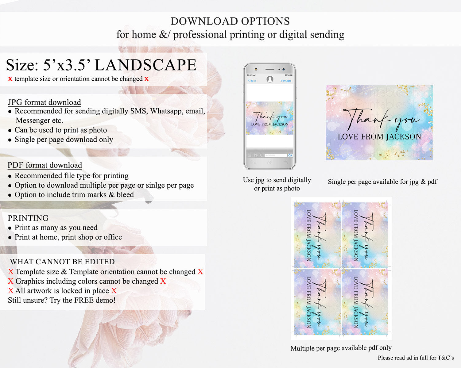 Pastel Thank You Rainbow Thank You Card Colorful Pastel Birthday Thank You Card Confetti Watercolor Pastel Teacher Thank You Cards D10675