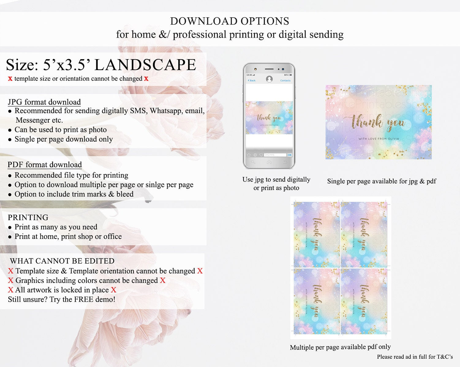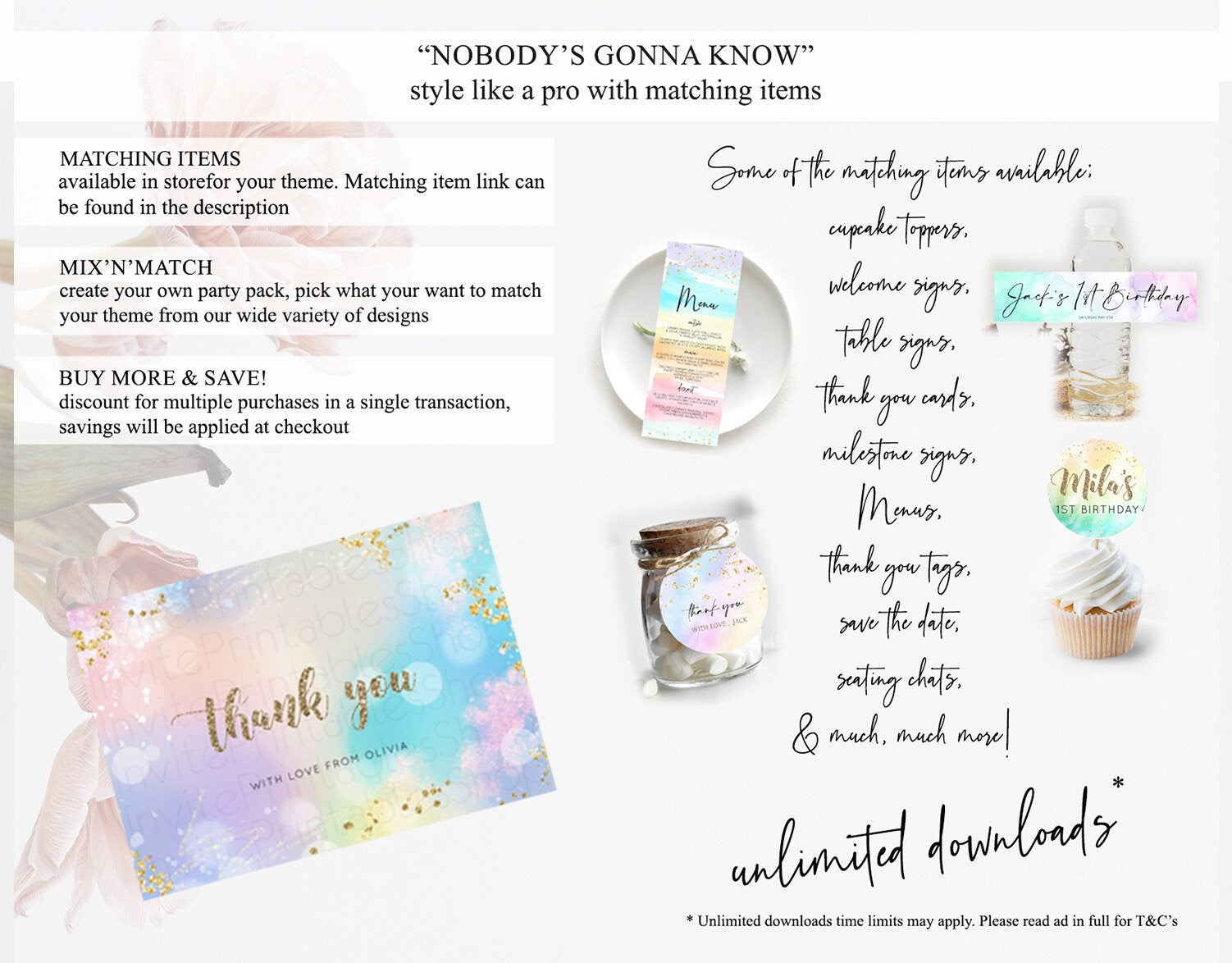 Pastel Thank You Rainbow Thank You Card Colorful Pastel Birthday Thank You Card Confetti Watercolor Pastel Teacher Thank You Cards D10677