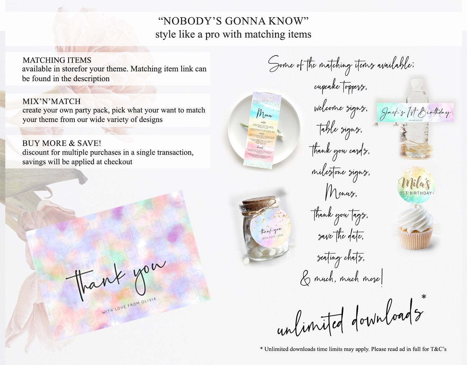 Pastel Thank You Rainbow Thank You Card Colorful Pastel Birthday Thank You Card Confetti Watercolor Pastel Teacher Thank You Cards D10697
