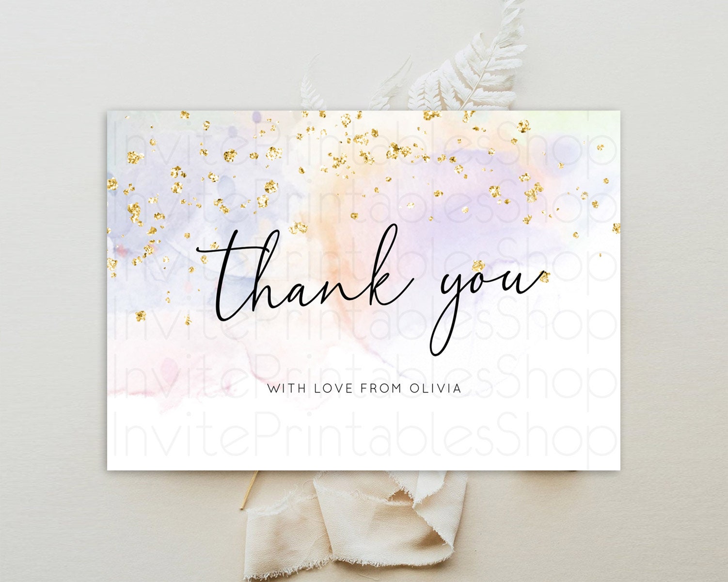 Pastel Thank You Rainbow Thank You Card Colorful Pastel Birthday Thank You Card Confetti Watercolor Pastel Teacher Thank You Cards D10769