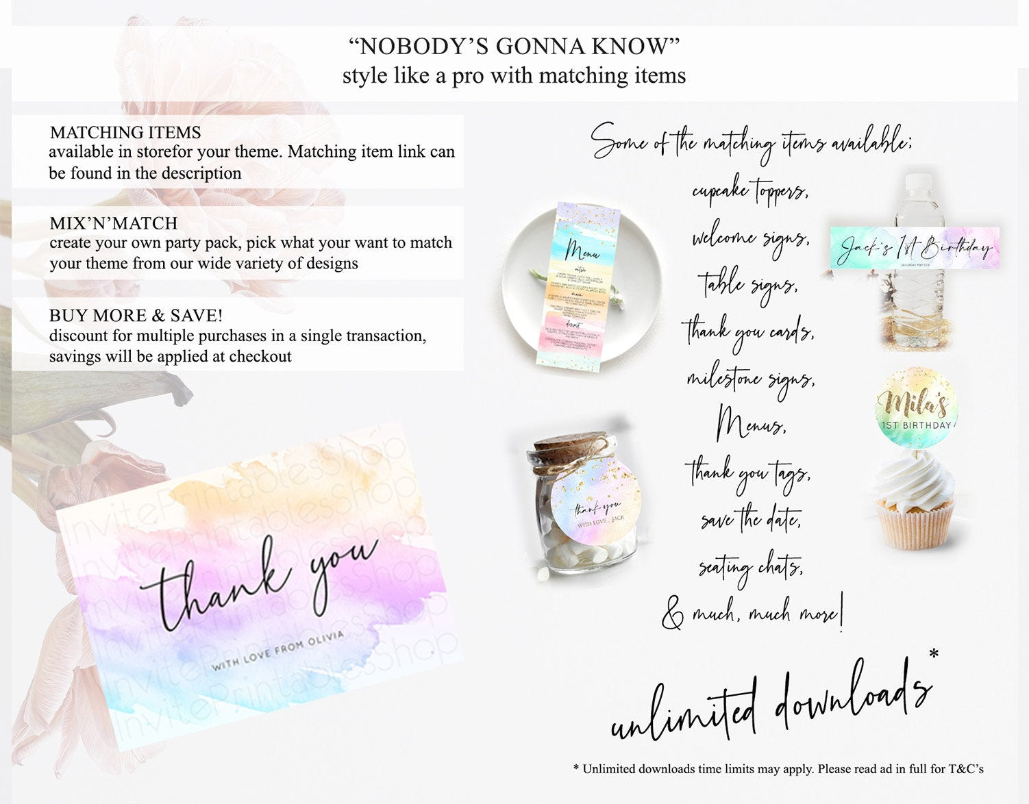 Pastel Thank You Rainbow Thank You Card Colorful Pastel Birthday Thank You Card Confetti Watercolor Pastel Teacher Thank You Cards D10774