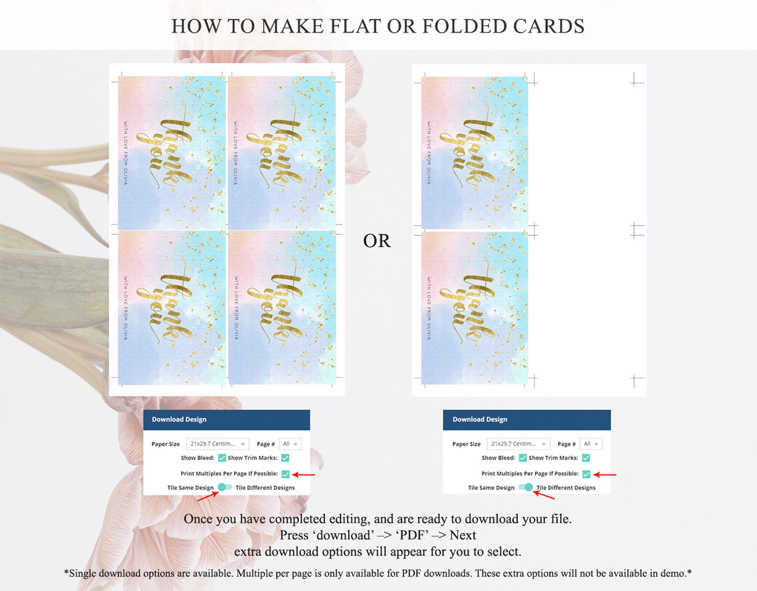 • Custom changes to artwork are not provided on existing templates.
