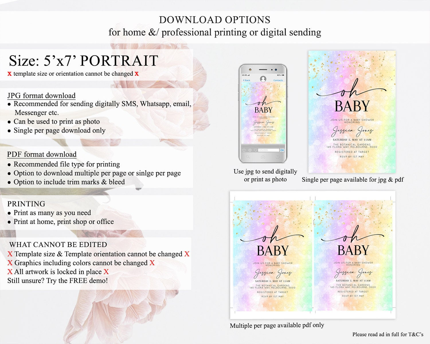 • Template size & orientation cannot be changed. Please use the demo link to confirm this product suits your needs.