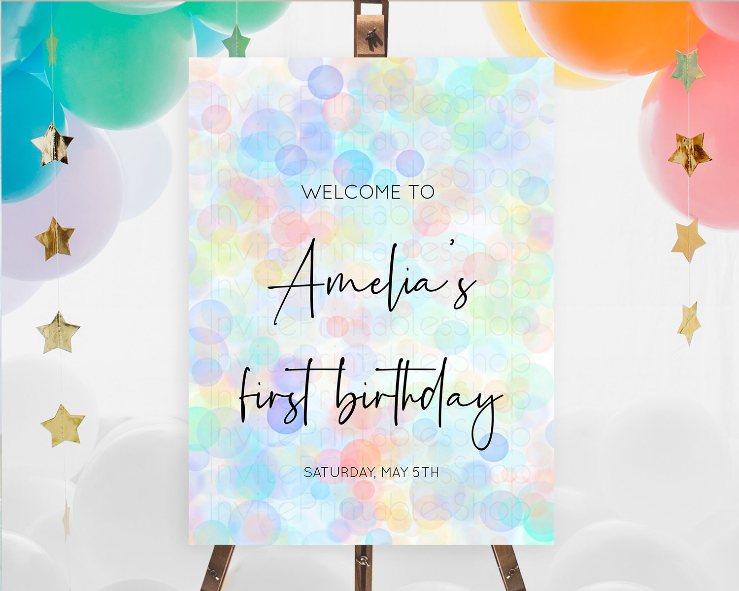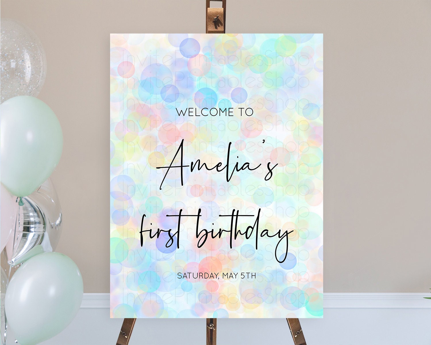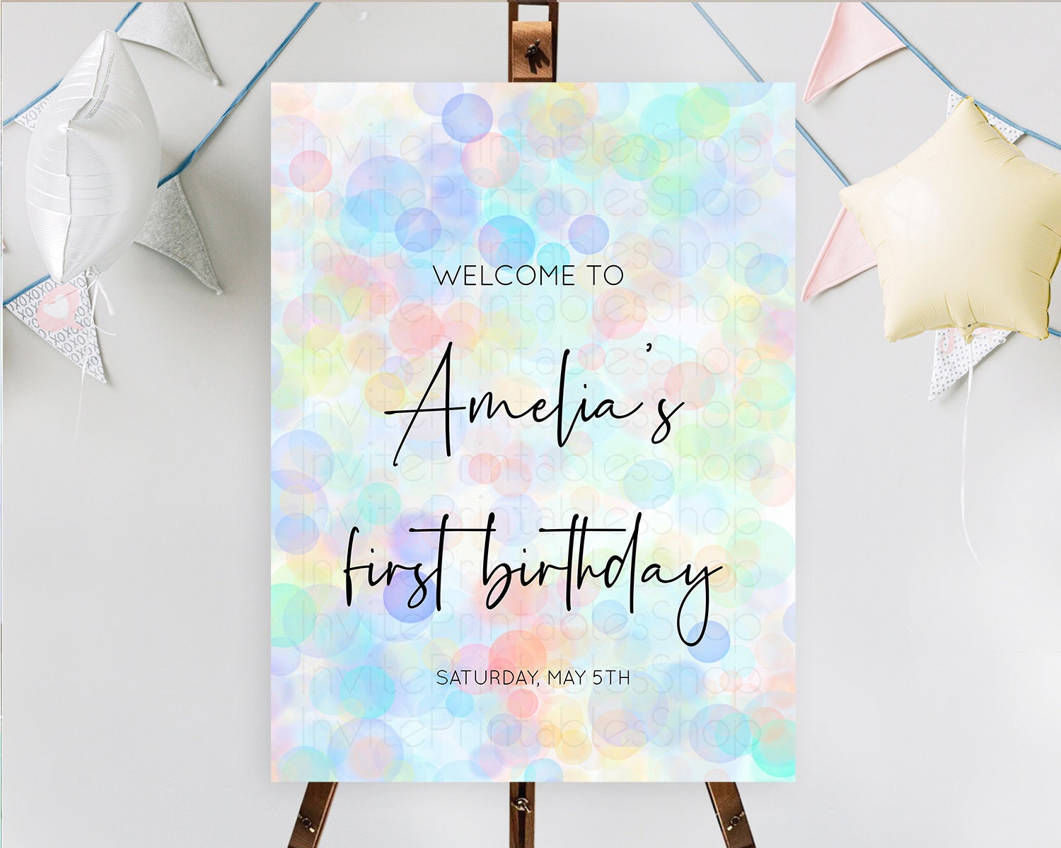 Pastel Welcome Sign Bubble Bath Birthday Party Rainbow Welcome Board Pastel Bubbles Colorful Confetti First Birthday Welcome Sign D10445