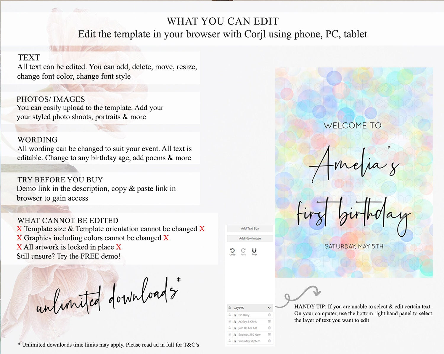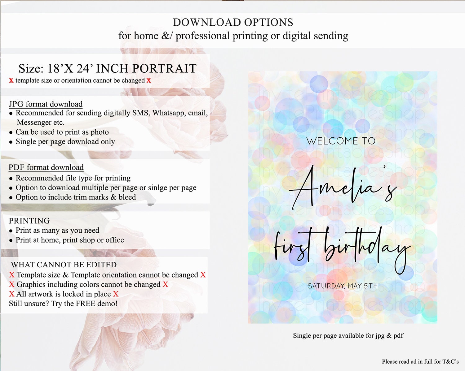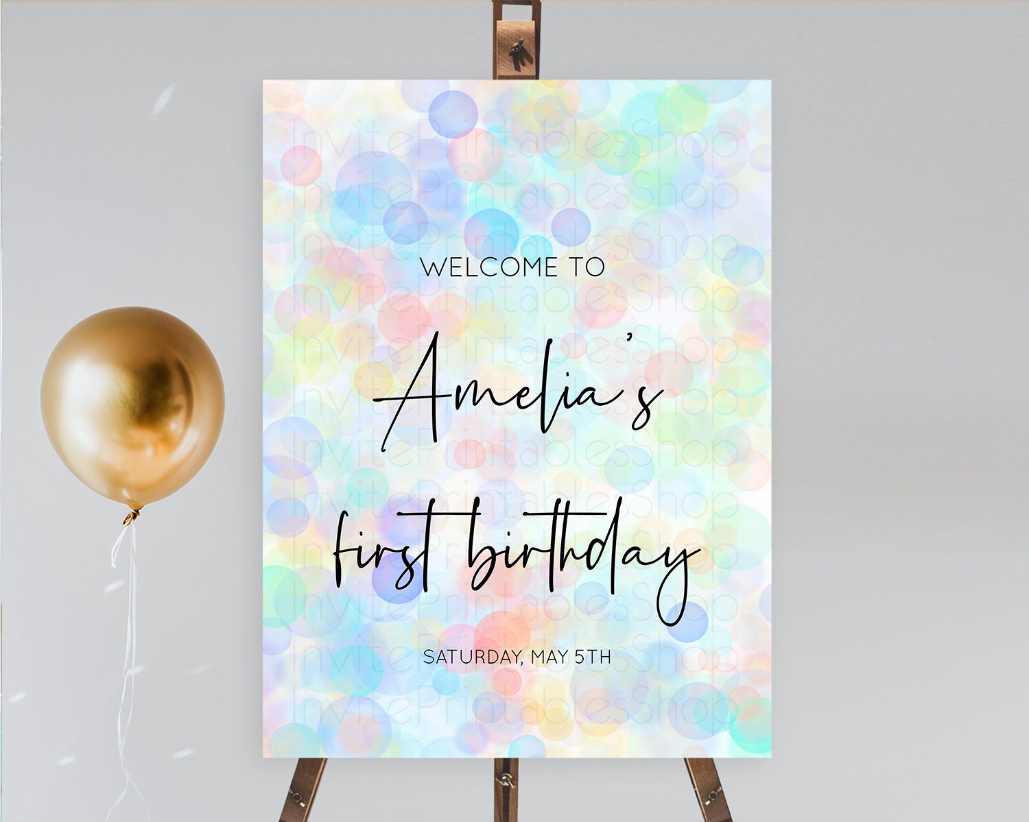 Pastel Welcome Sign Bubble Bath Birthday Party Rainbow Welcome Board Pastel Bubbles Colorful Confetti First Birthday Welcome Sign D10445