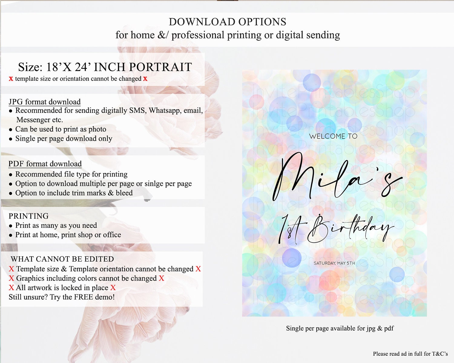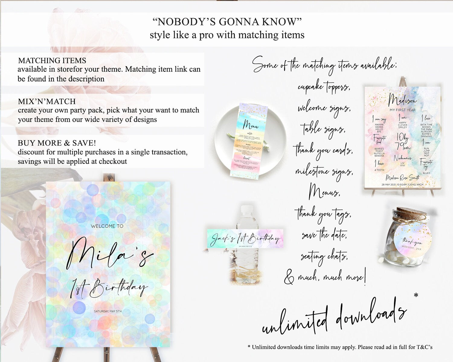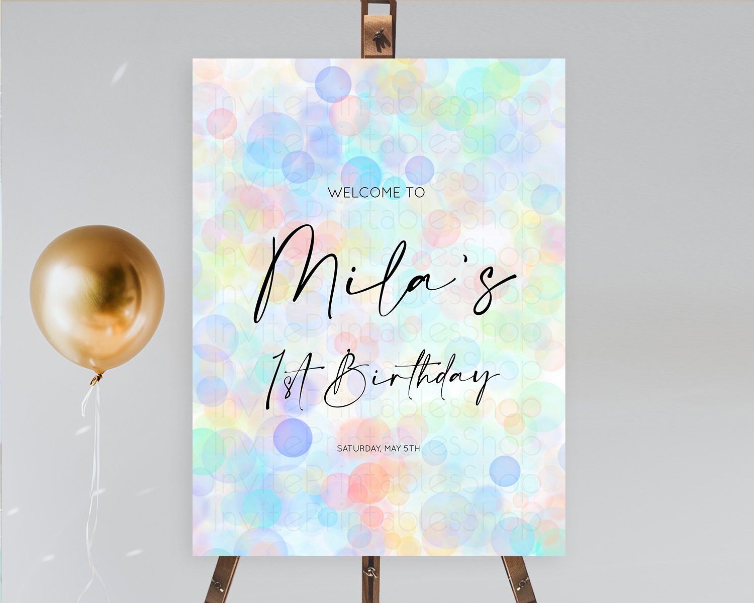 Pastel Welcome Sign Bubble Bath Birthday Party Rainbow Welcome Board Pastel Bubbles Colorful Confetti First Birthday Welcome Sign D10446