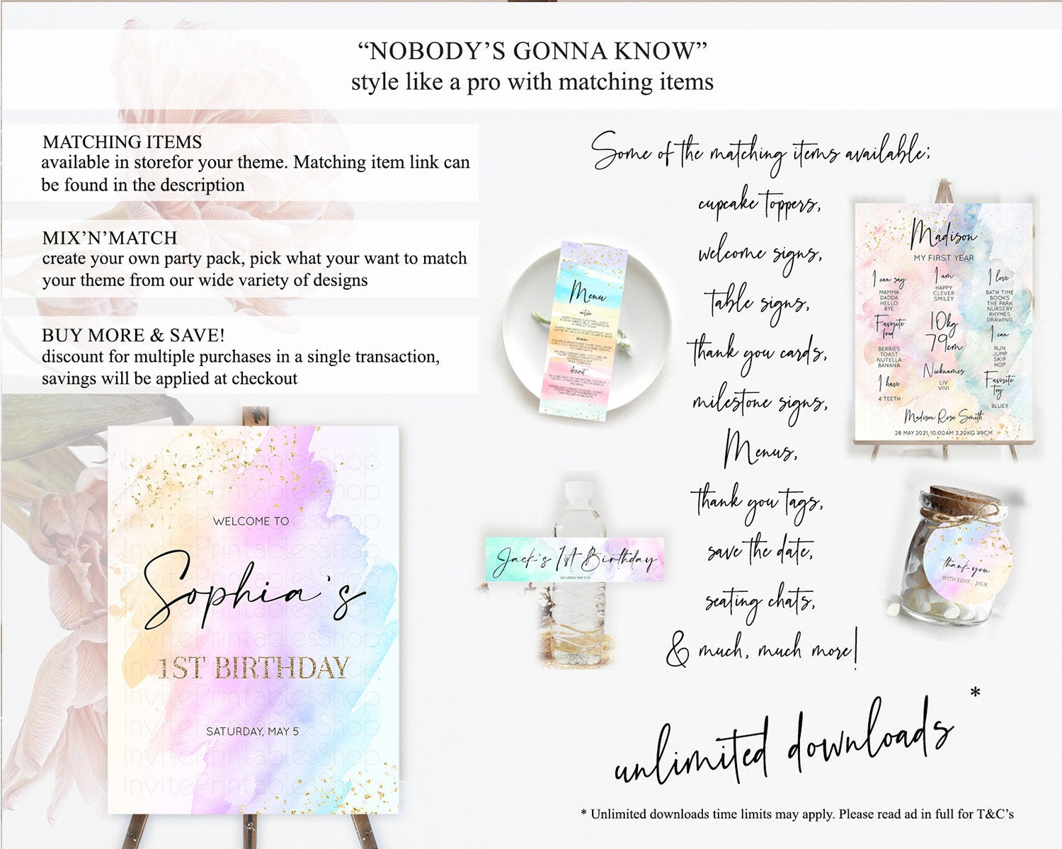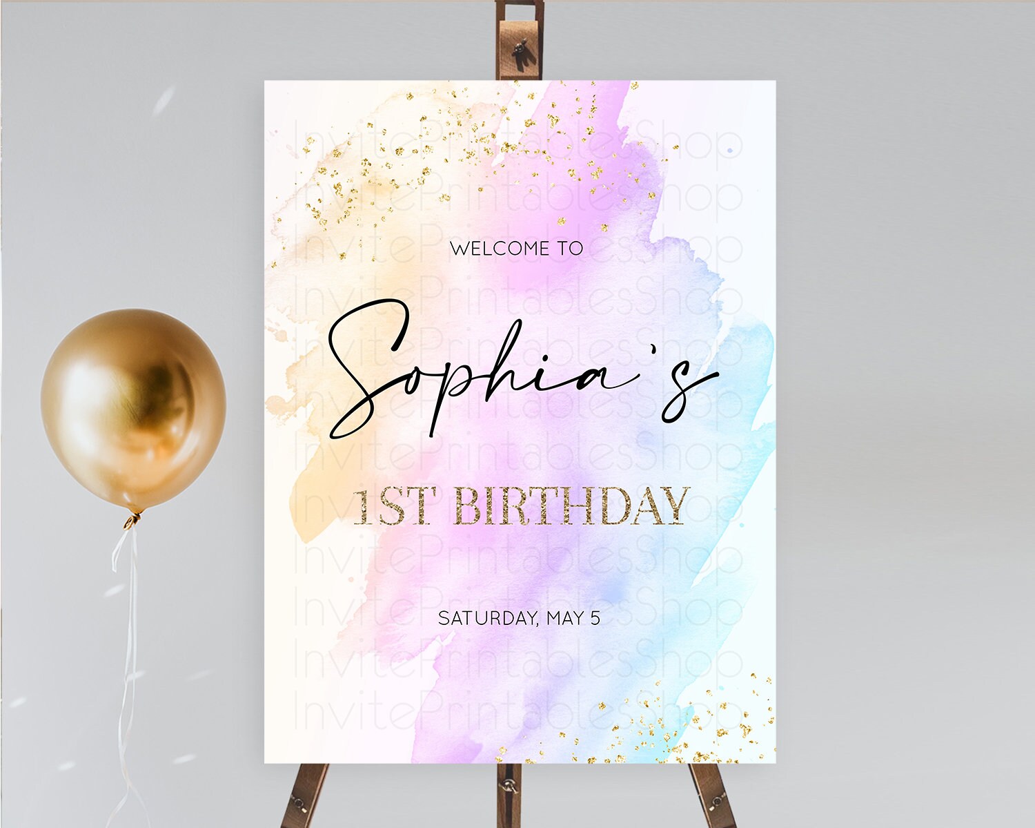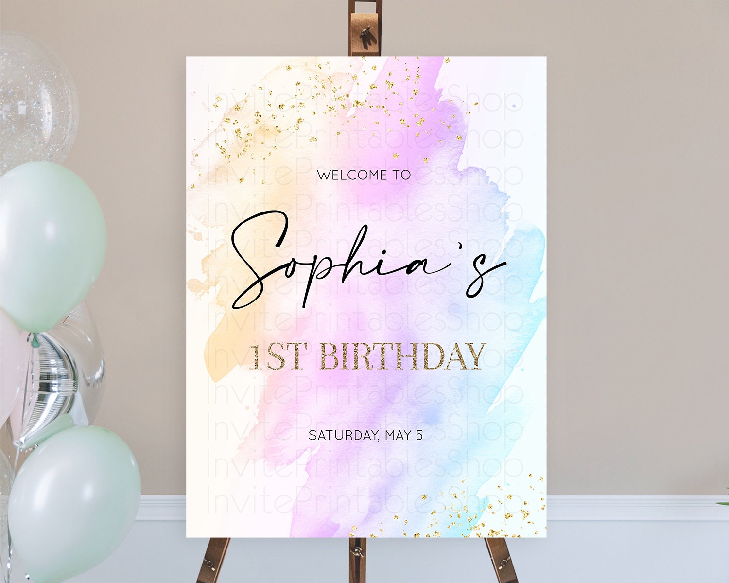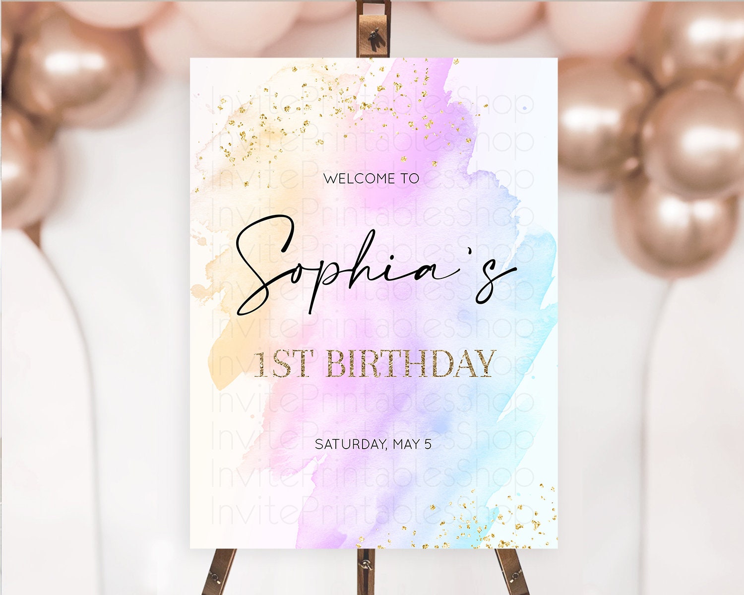 Pastel Welcome Sign Pastel Rainbow Welcome Sign Colorful Rainbow Confetti Watercolor Glitter Pastel First Birthday Welcome Sign D10175