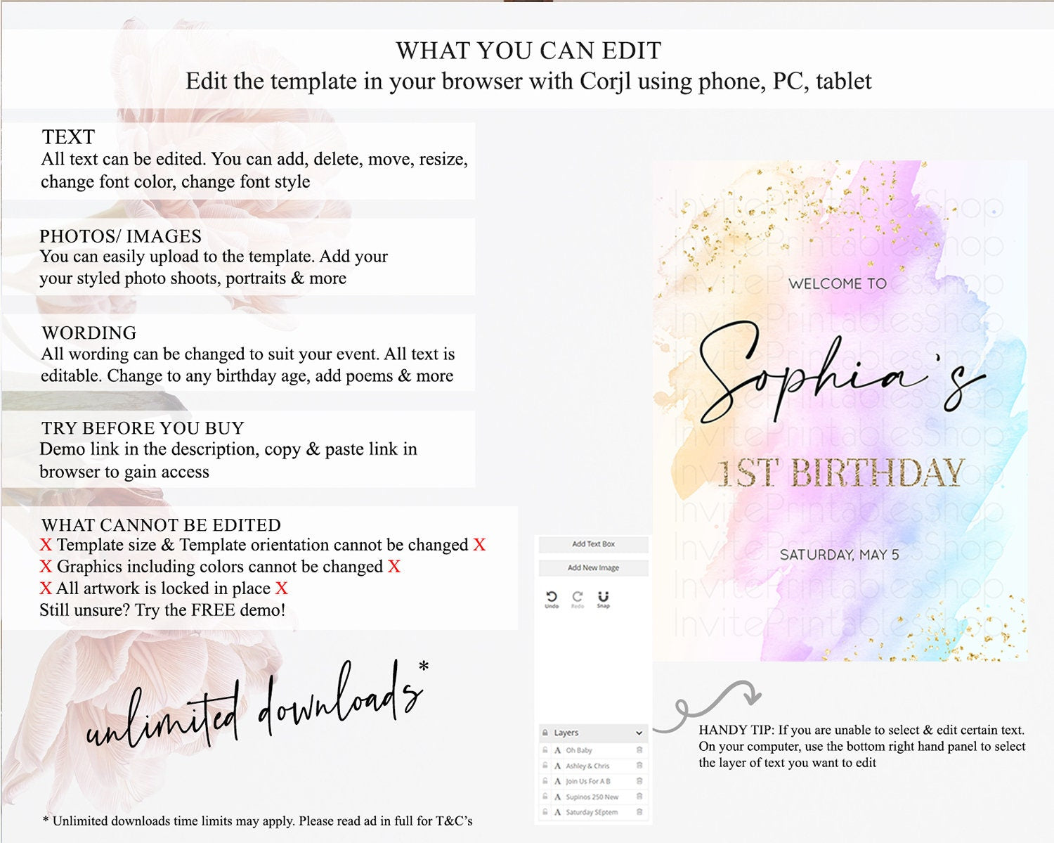 • After purchase, Corjl emails your editing link. Allow up to 15 minutes for delivery.