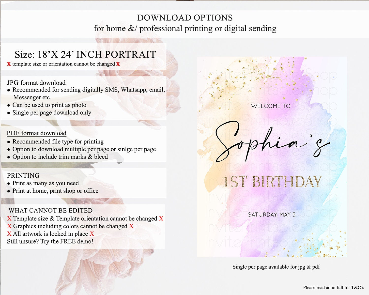 • Template size & orientation cannot be changed. Please use the demo link to confirm this product suits your needs.