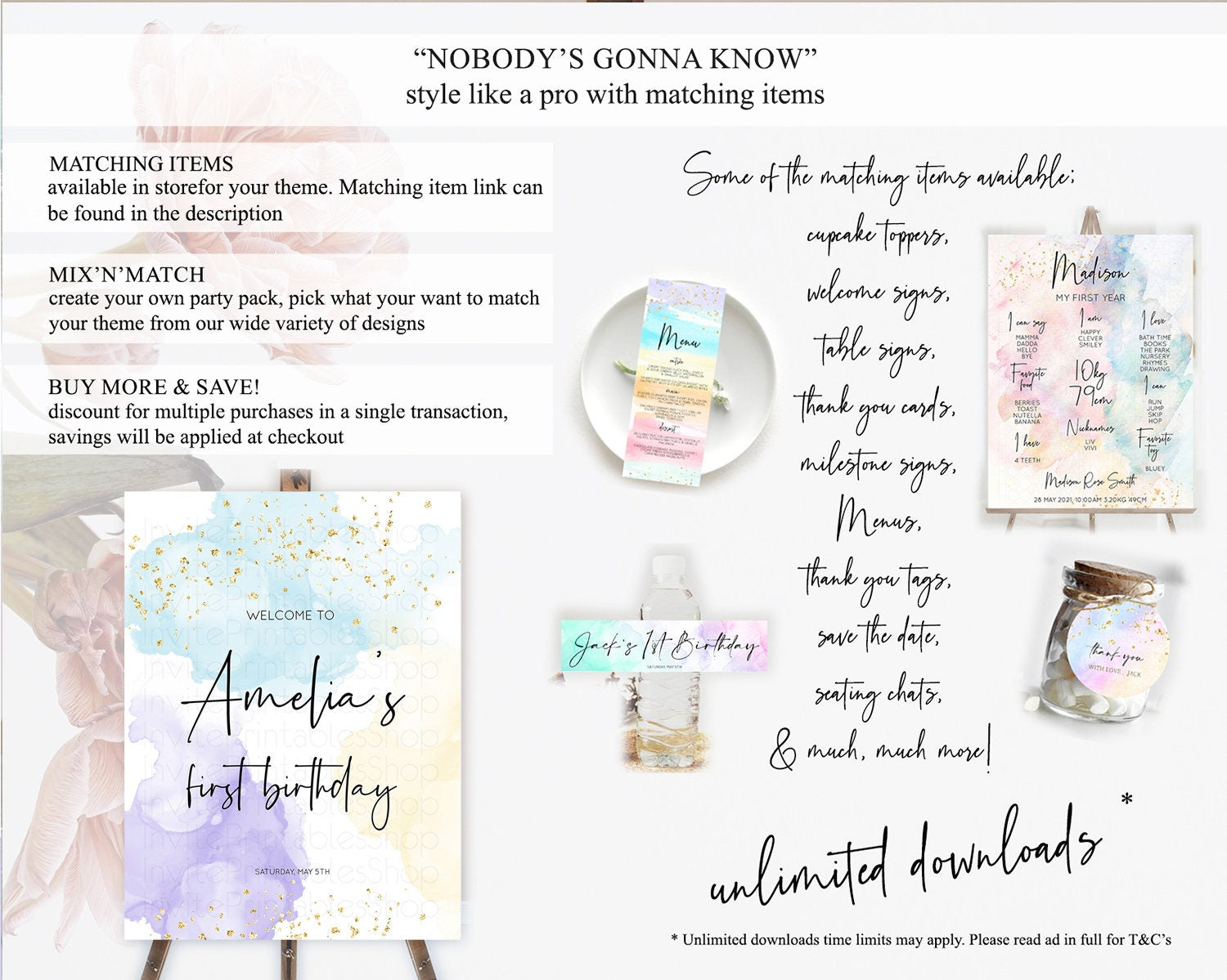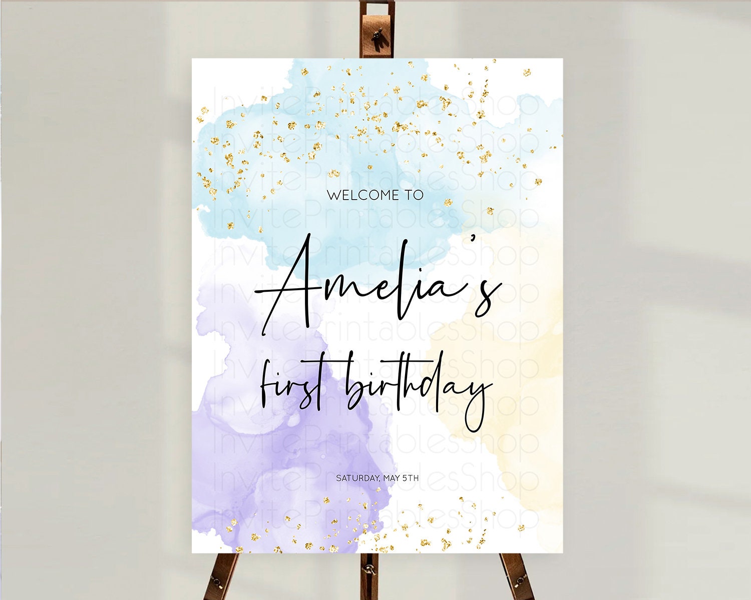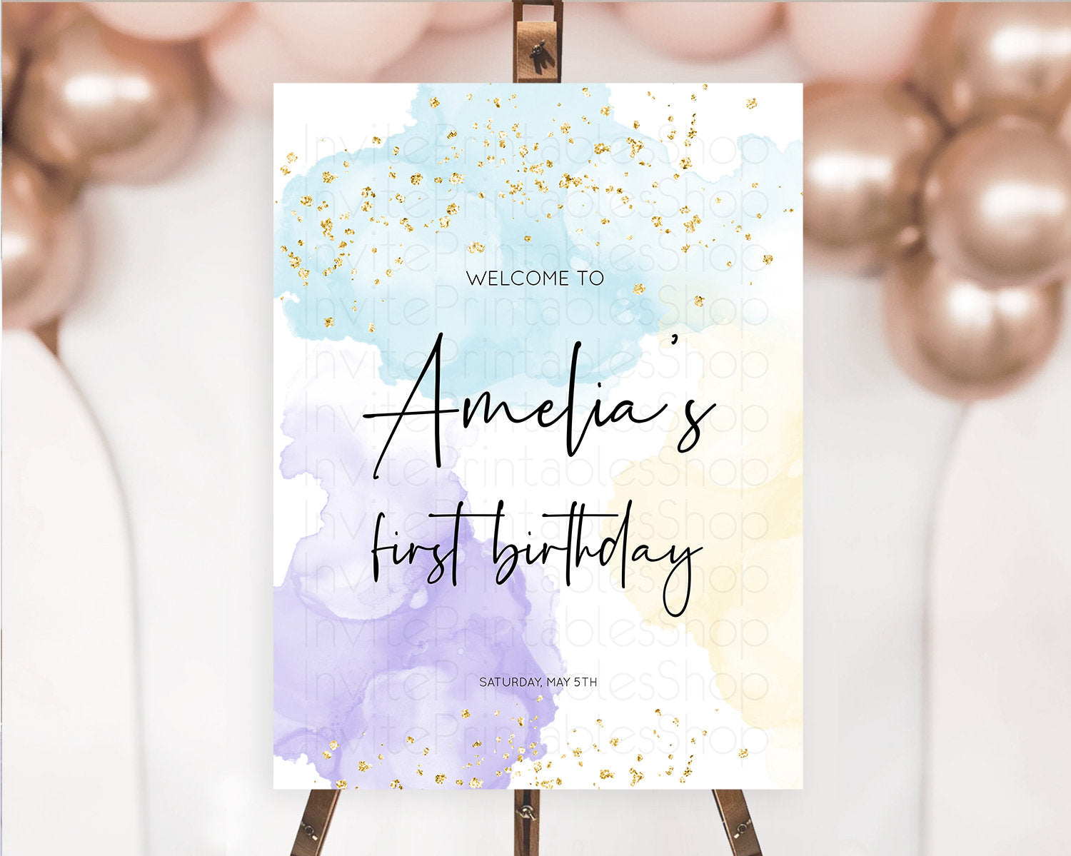 Pastel Welcome Sign Pastel Rainbow Welcome Sign Colorful Rainbow Confetti Watercolor Glitter Pastel First Birthday Welcome Sign D10208