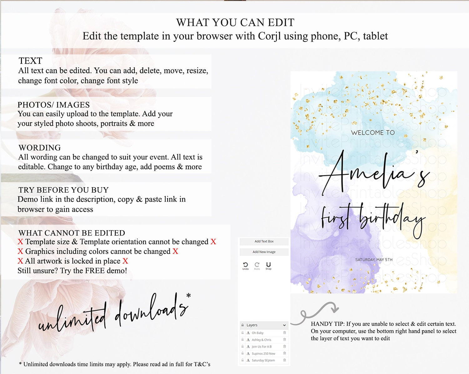 • After purchase, Corjl emails your editing link. Allow up to 15 minutes for delivery.
