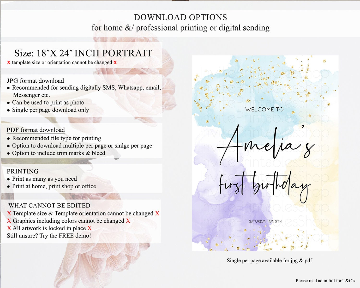 • Template size & orientation cannot be changed. Please use the demo link to confirm this product suits your needs.