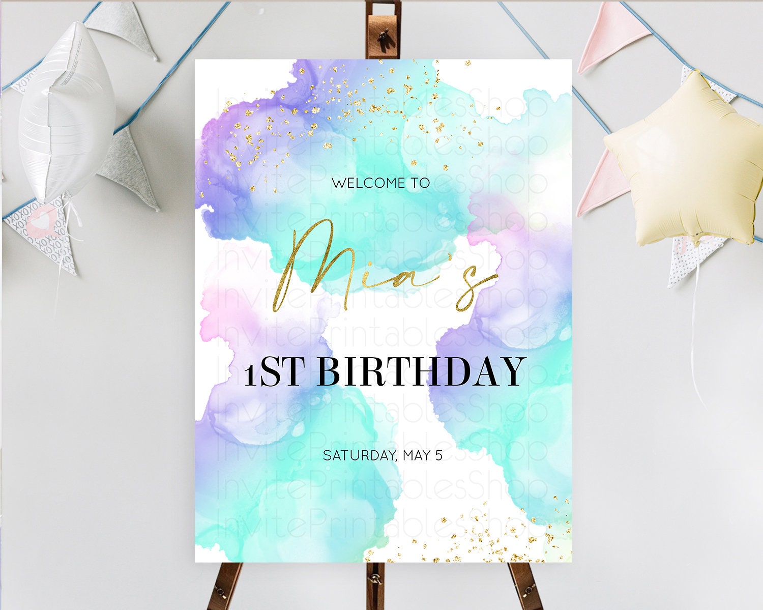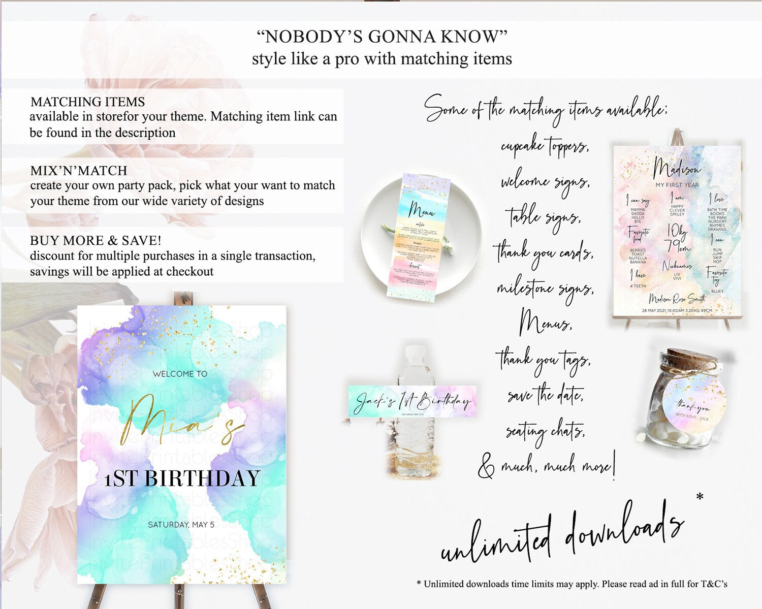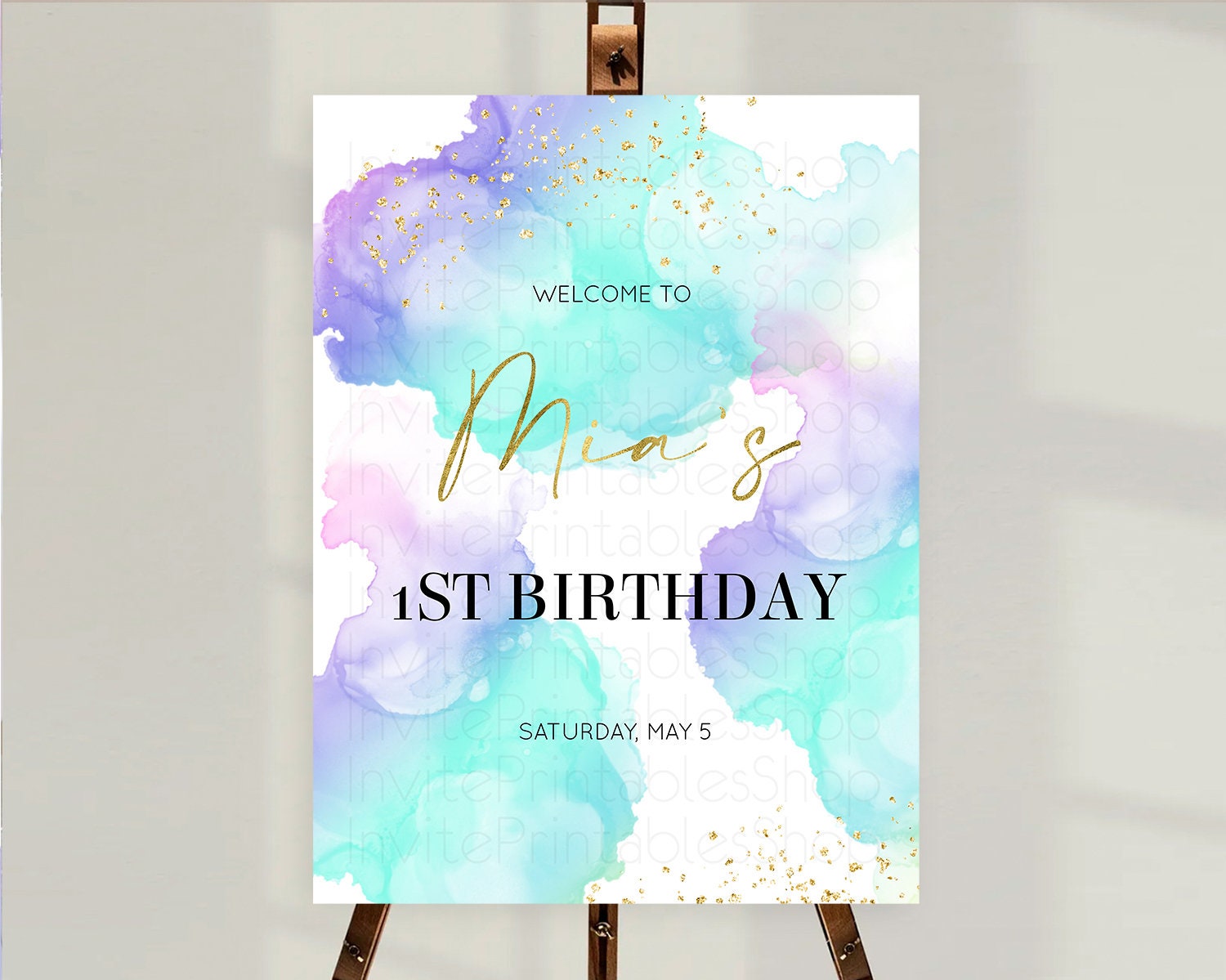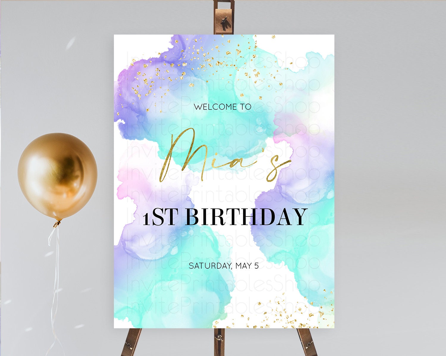 Pastel Welcome Sign Pastel Rainbow Welcome Sign Colorful Rainbow Confetti Watercolor Glitter Pastel First Birthday Welcome Sign D10212