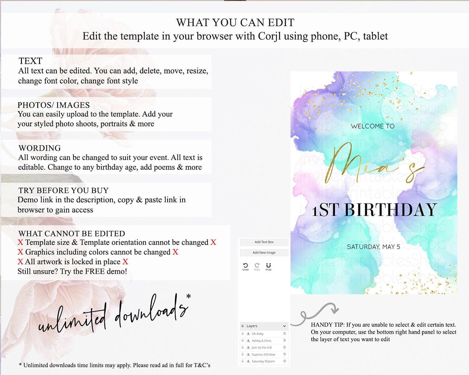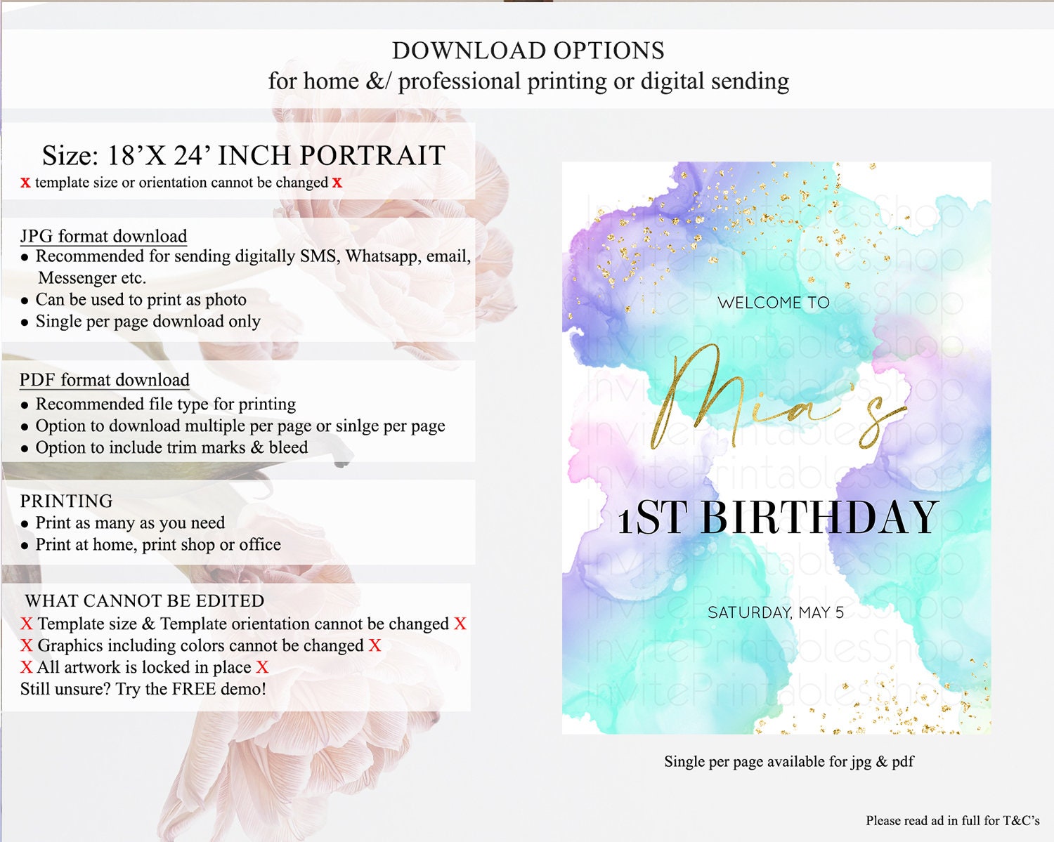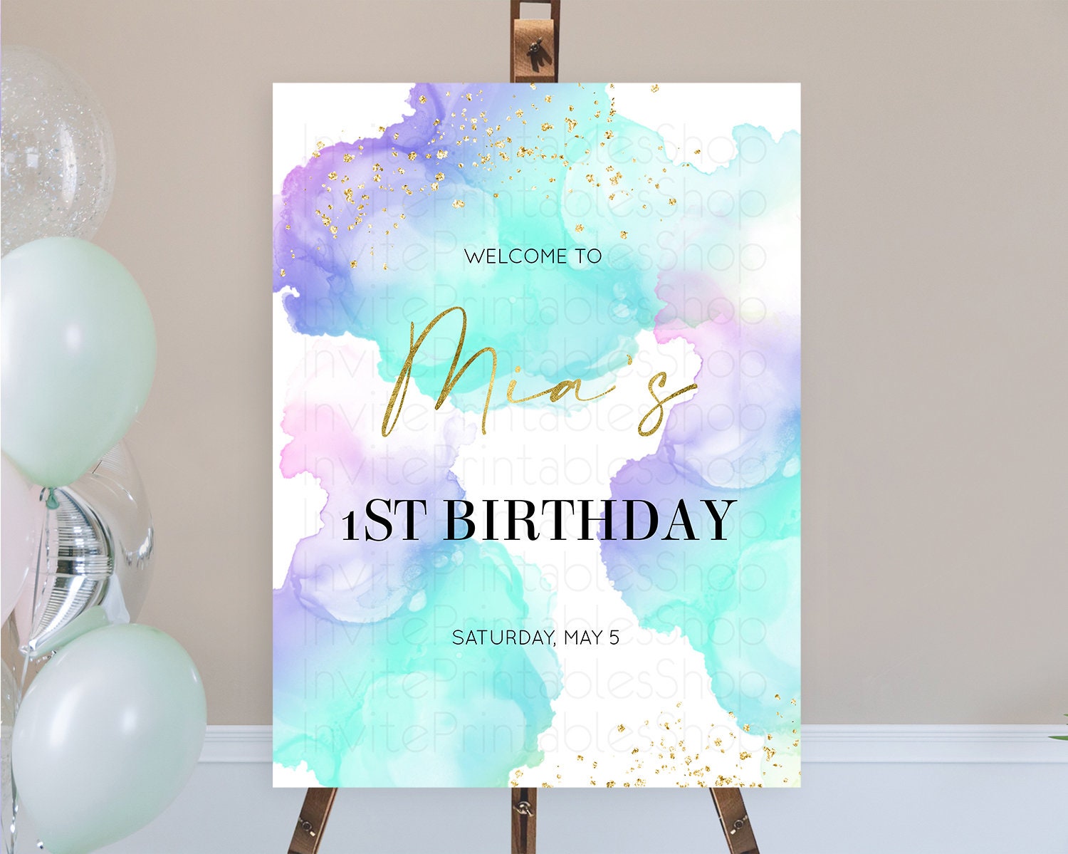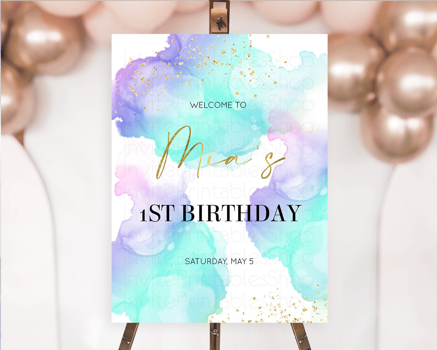 Pastel Welcome Sign Pastel Rainbow Welcome Sign Colorful Rainbow Confetti Watercolor Glitter Pastel First Birthday Welcome Sign D10212