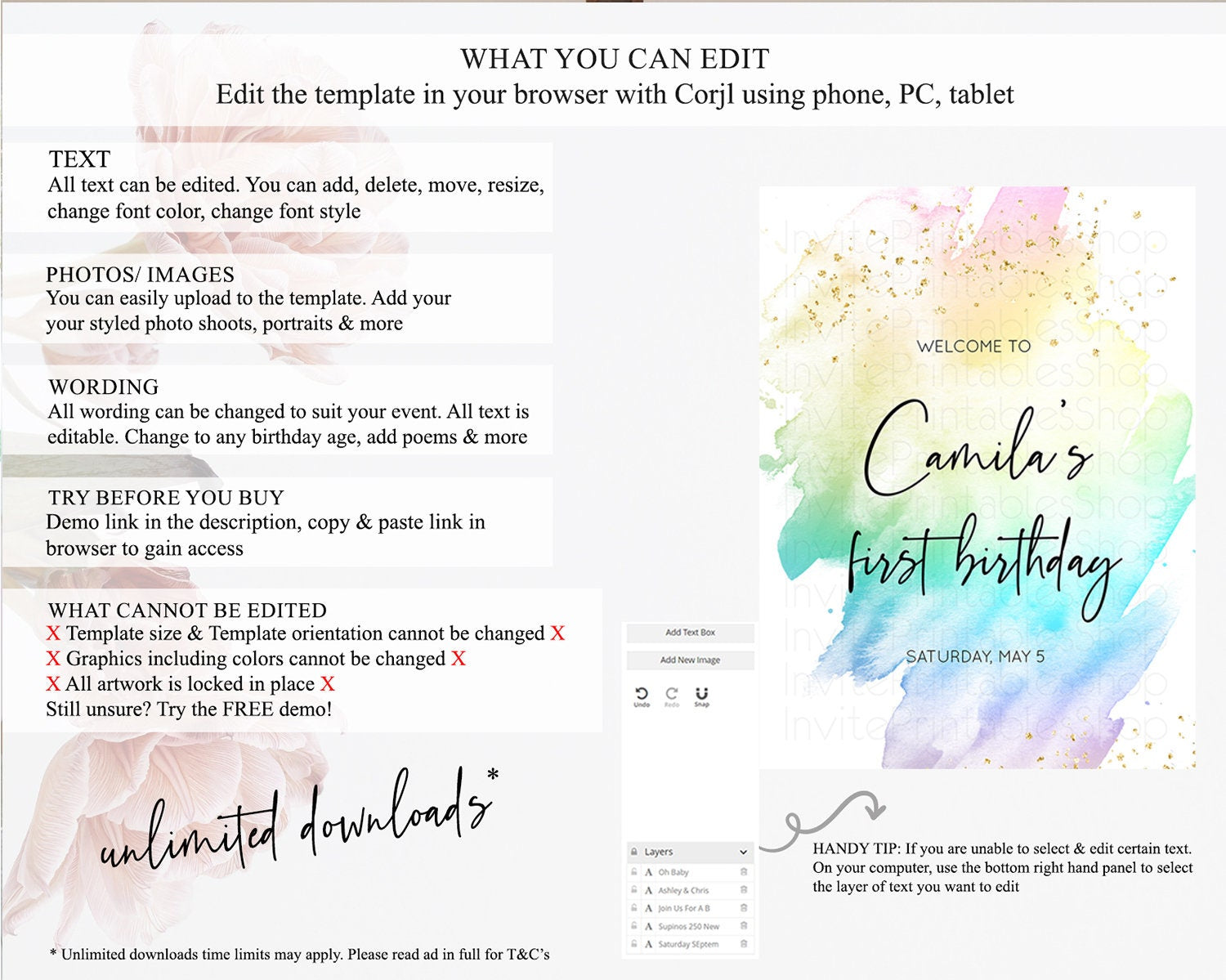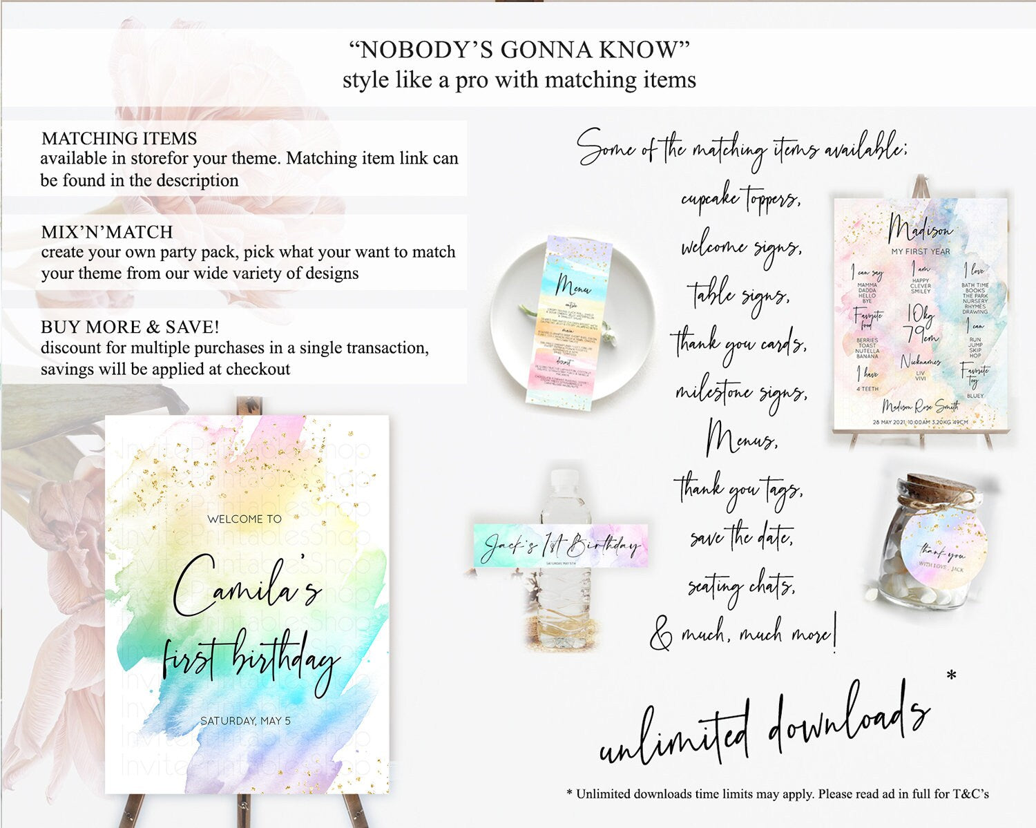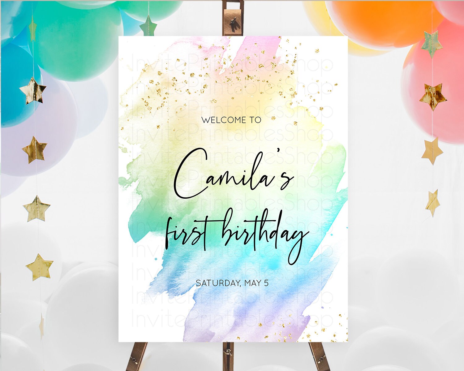 Pastel Welcome Sign Pastel Rainbow Welcome Sign Colorful Rainbow Confetti Watercolor Glitter Pastel First Birthday Welcome Sign D10256
