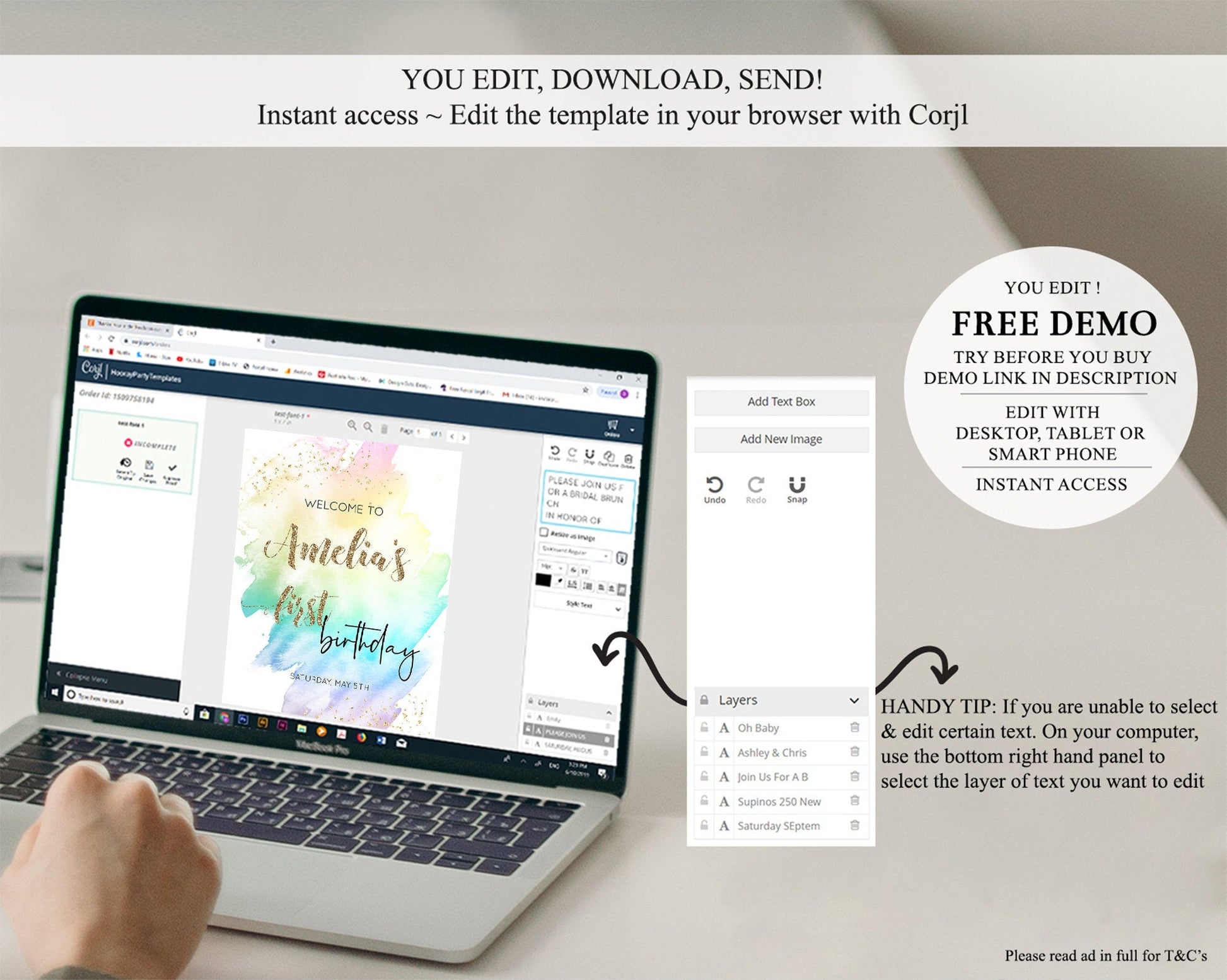 • After purchase, Corjl emails your editing link. Allow up to 15 minutes for delivery.