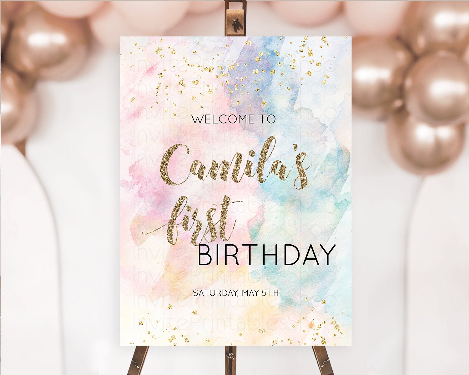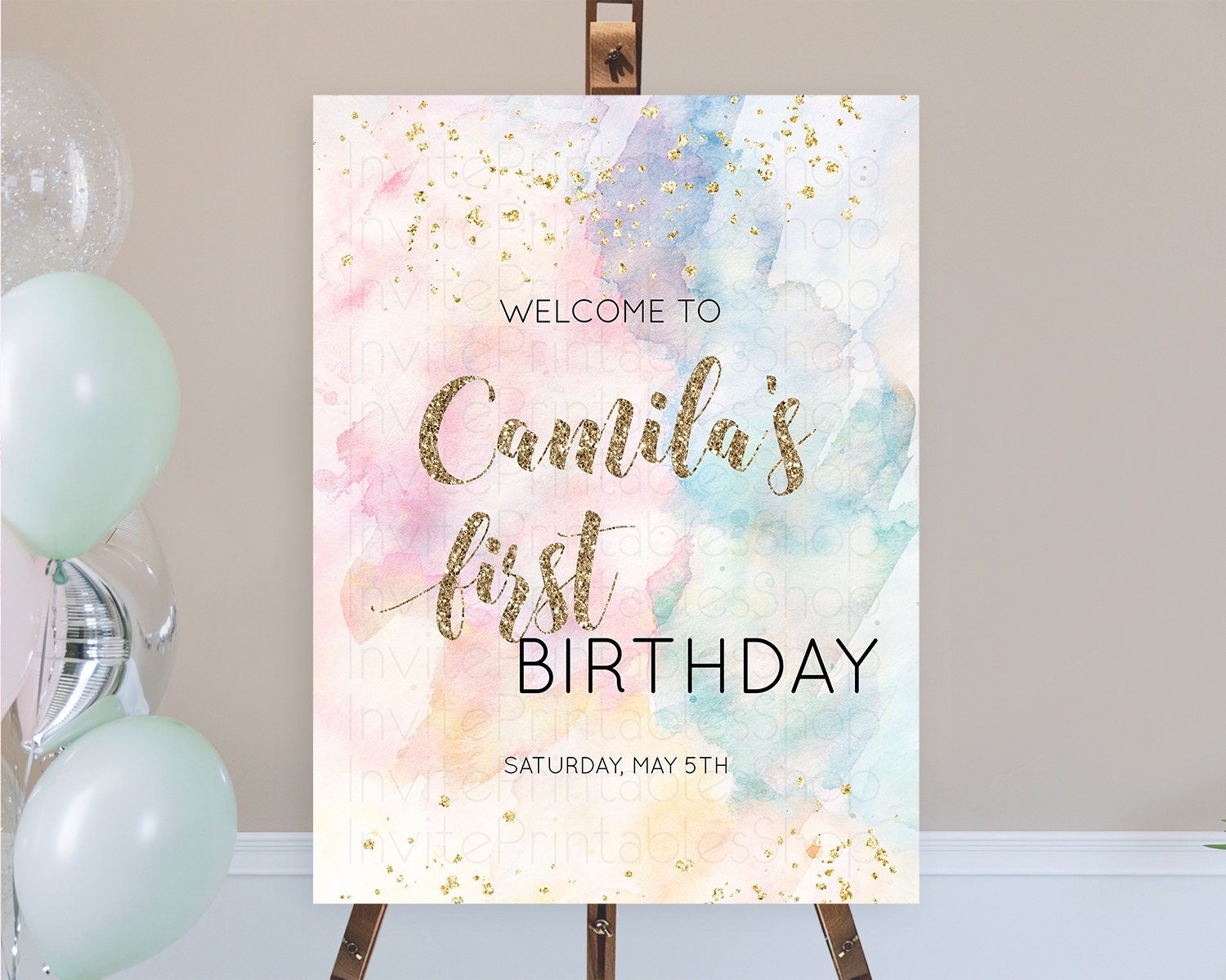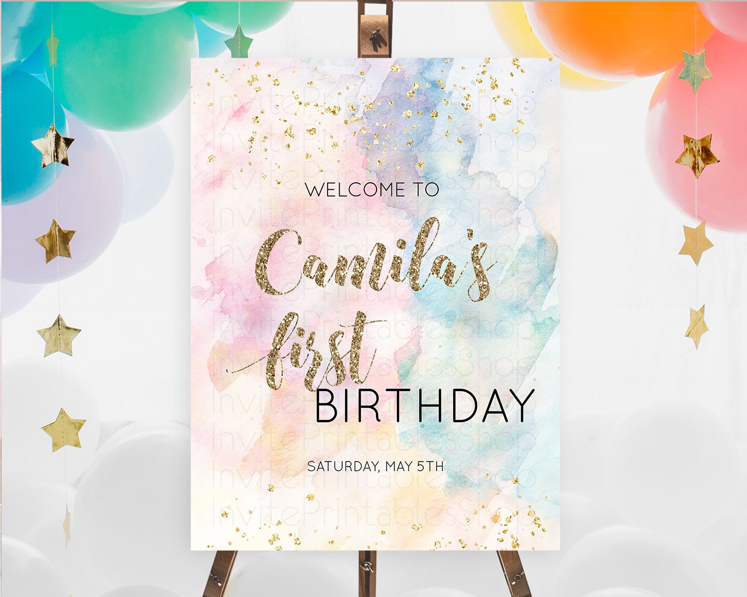 Pastel Welcome Sign Pastel Rainbow Welcome Sign Colorful Rainbow Confetti Watercolor Glitter Pastel First Birthday Welcome Sign D10264