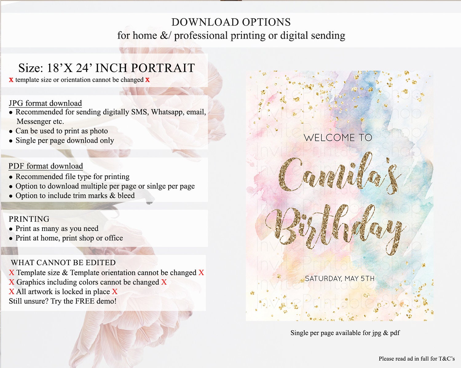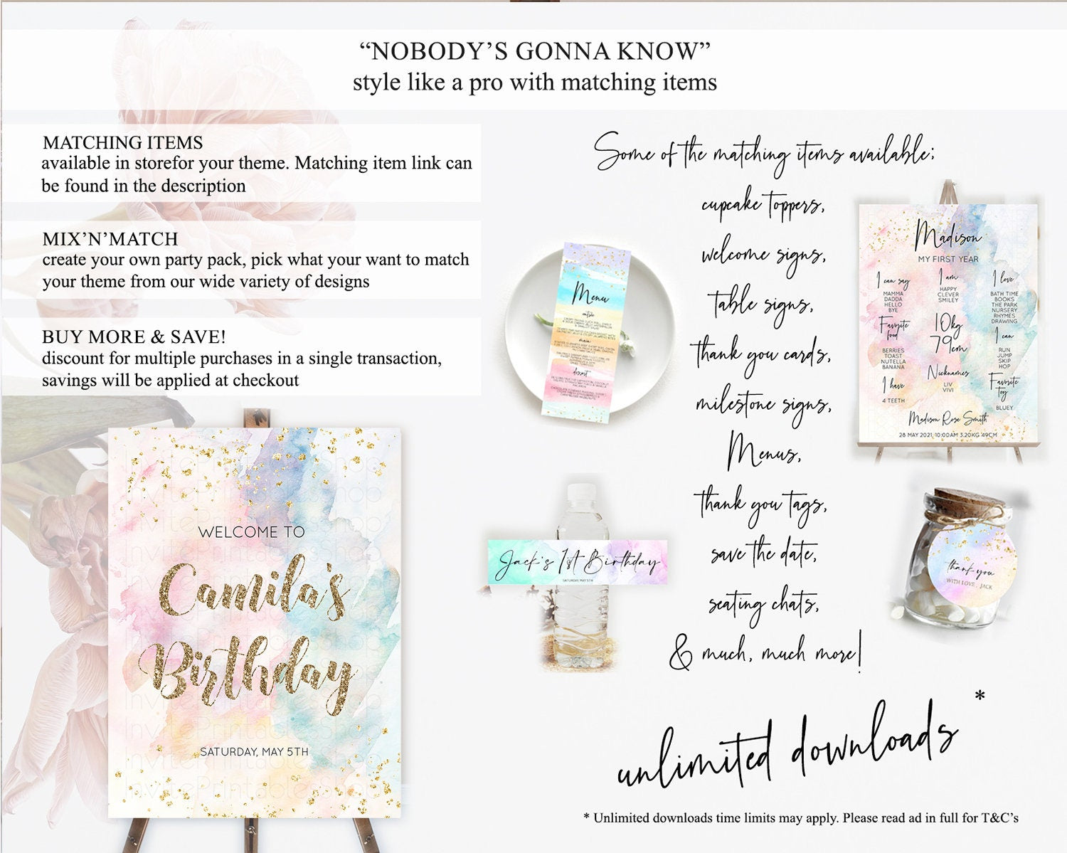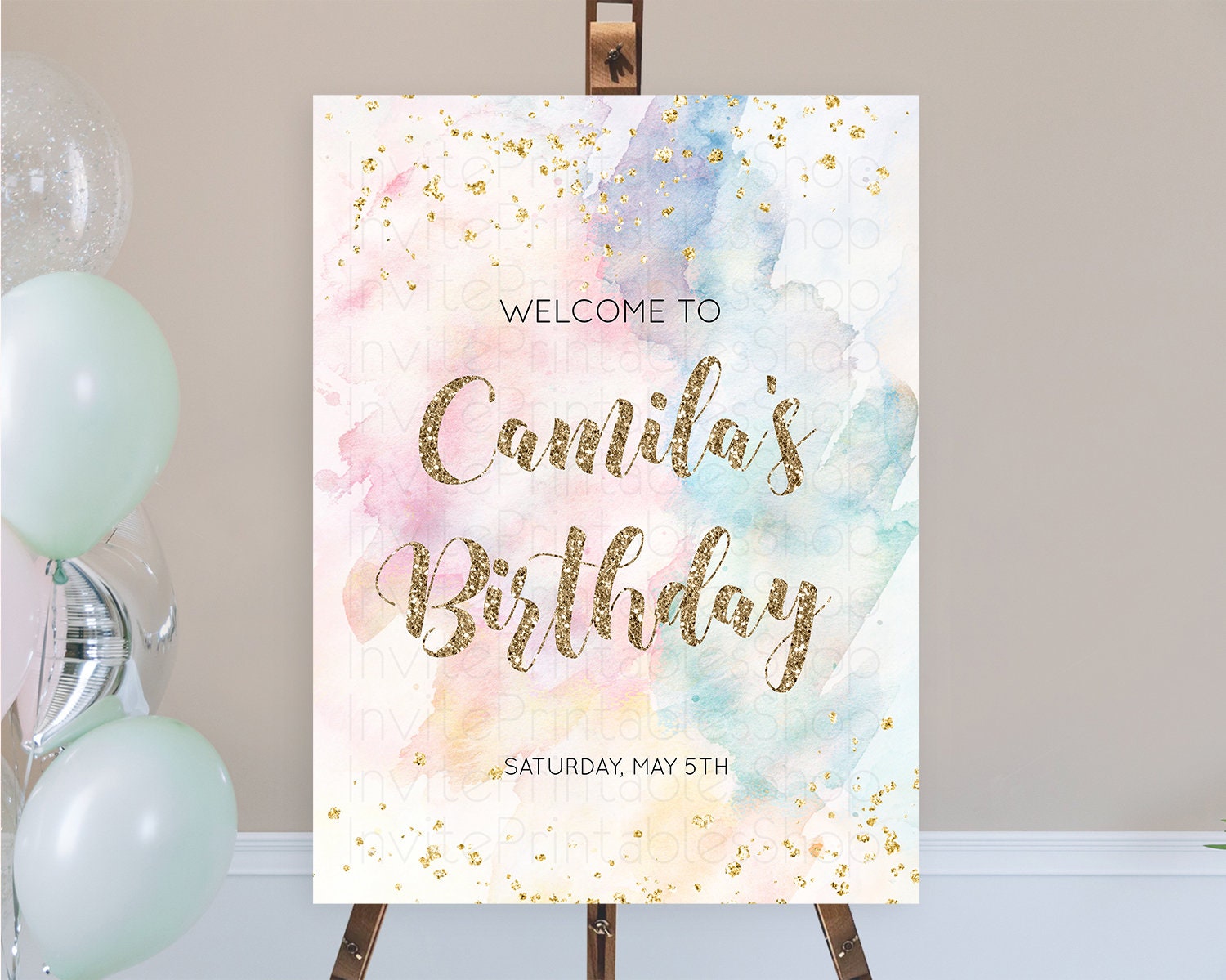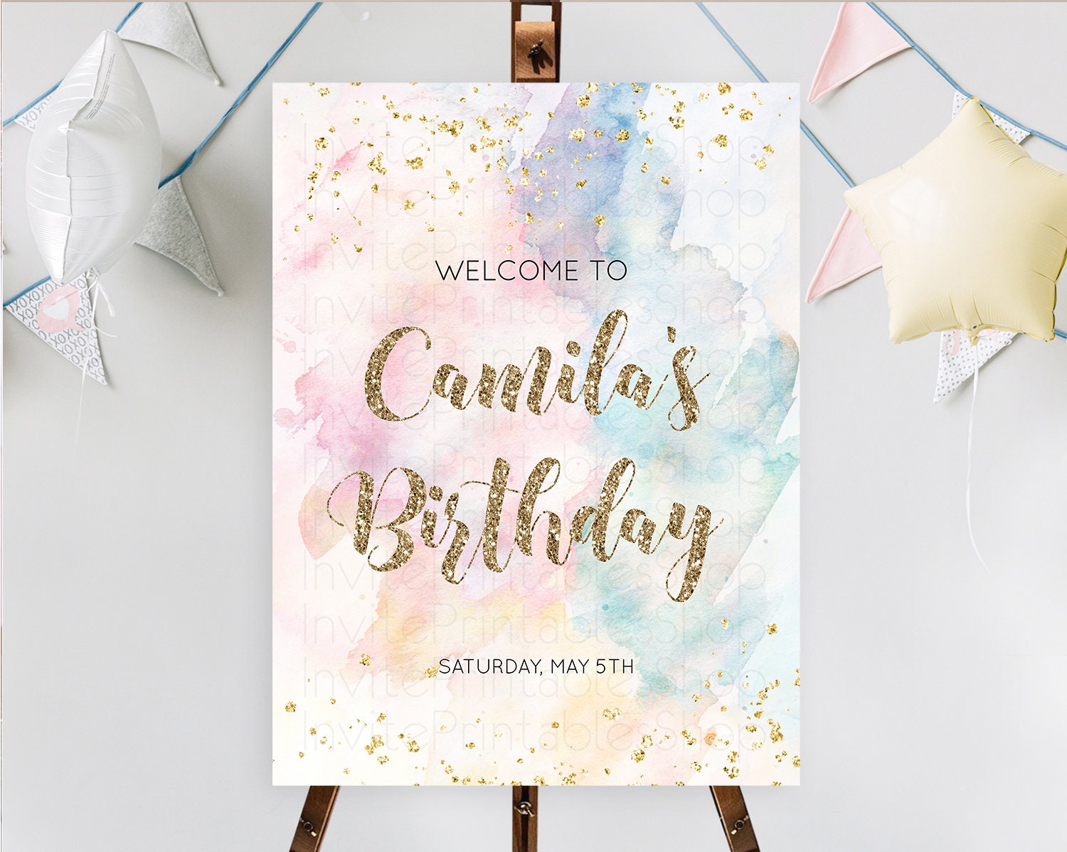 Pastel Welcome Sign Pastel Rainbow Welcome Sign Colorful Rainbow Confetti Watercolor Glitter Pastel First Birthday Welcome Sign D10264