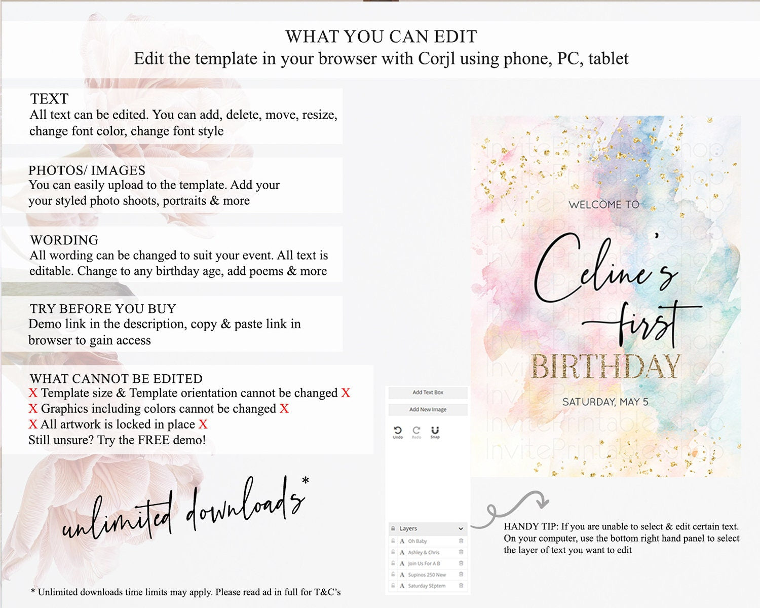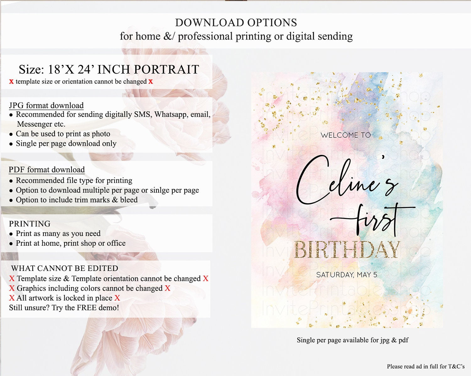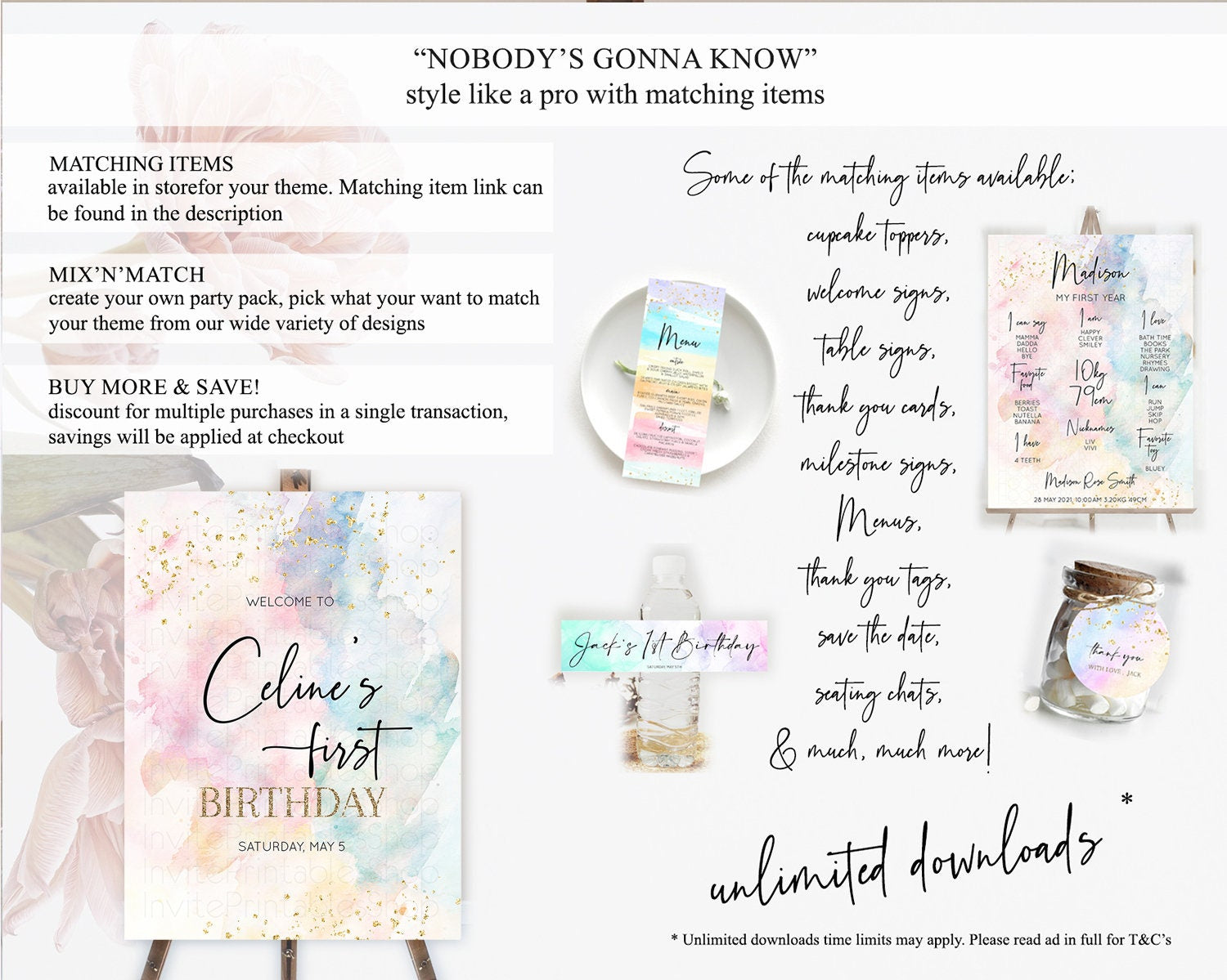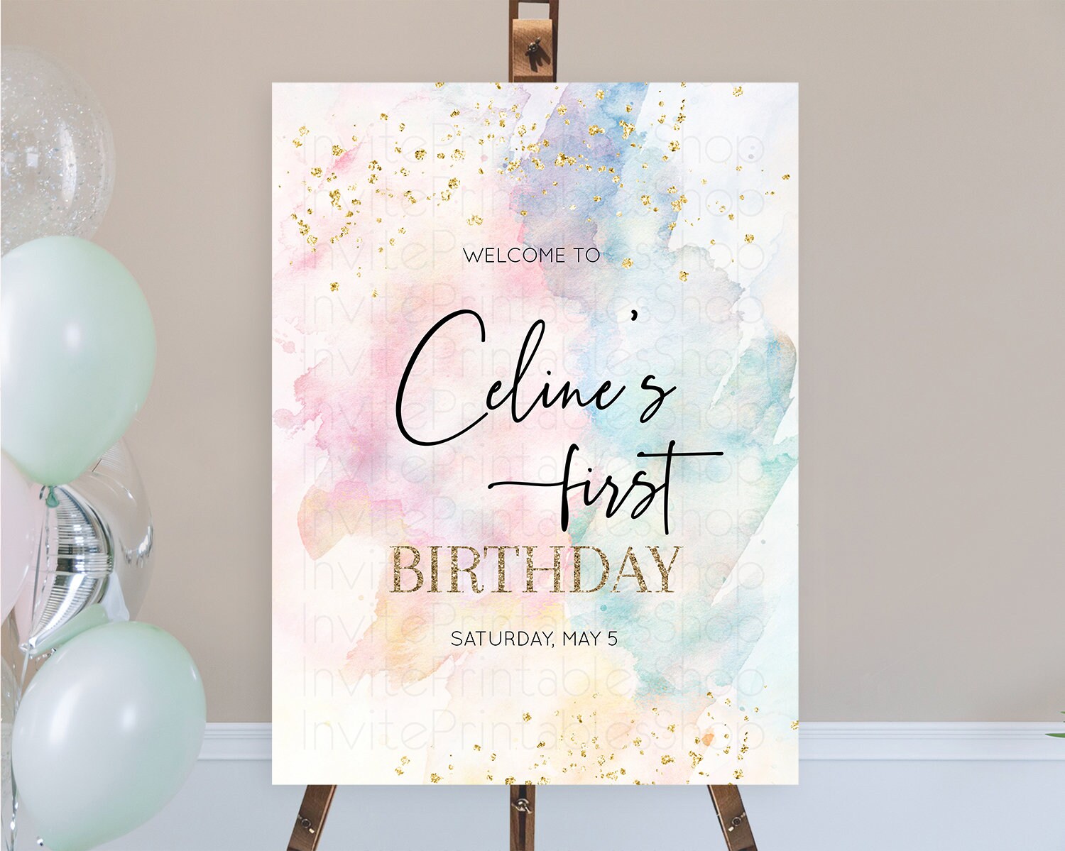 Pastel Welcome Sign Pastel Rainbow Welcome Sign Colorful Rainbow Confetti Watercolor Glitter Pastel First Birthday Welcome Sign D10276
