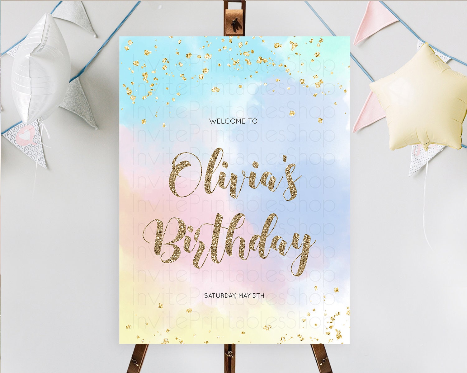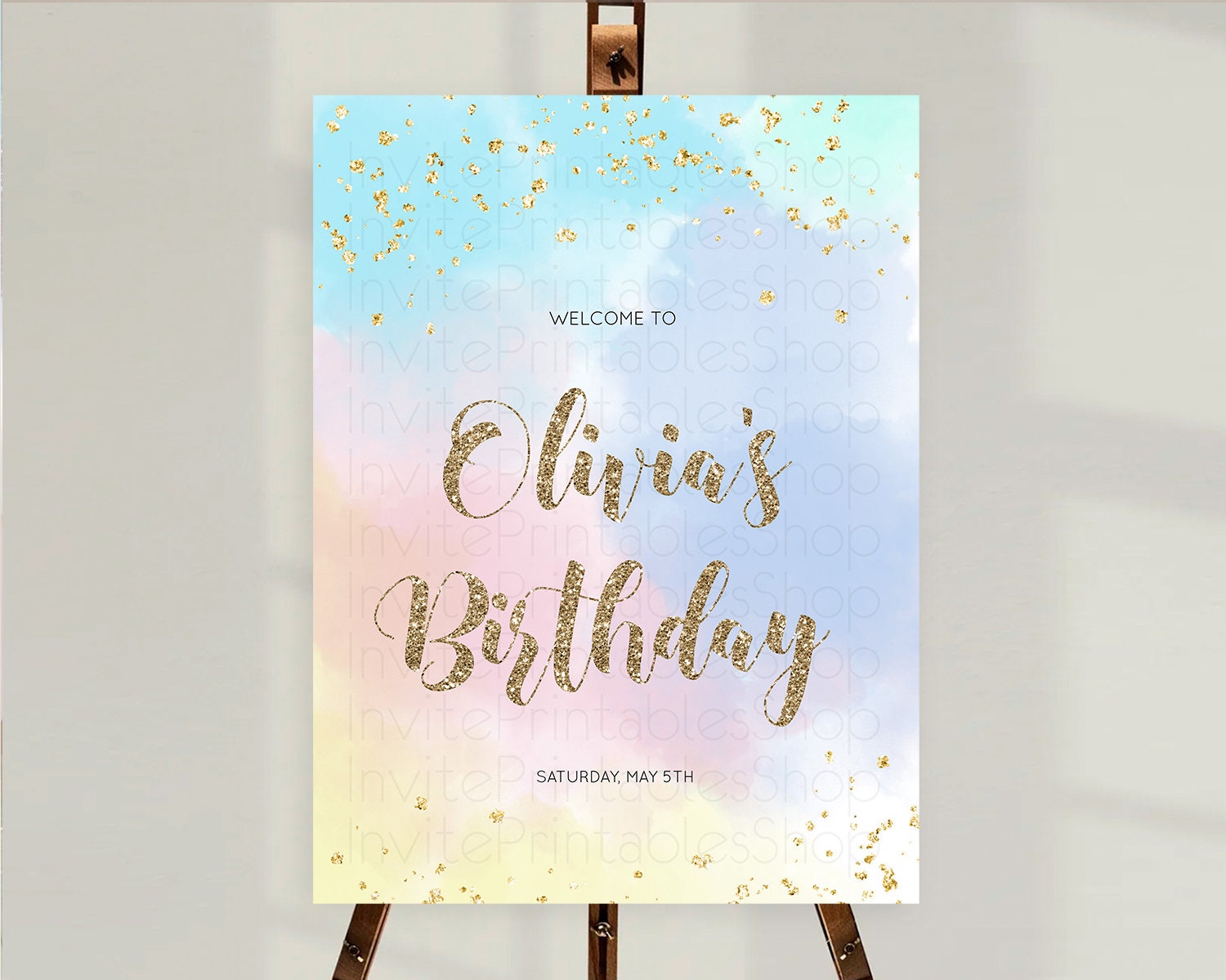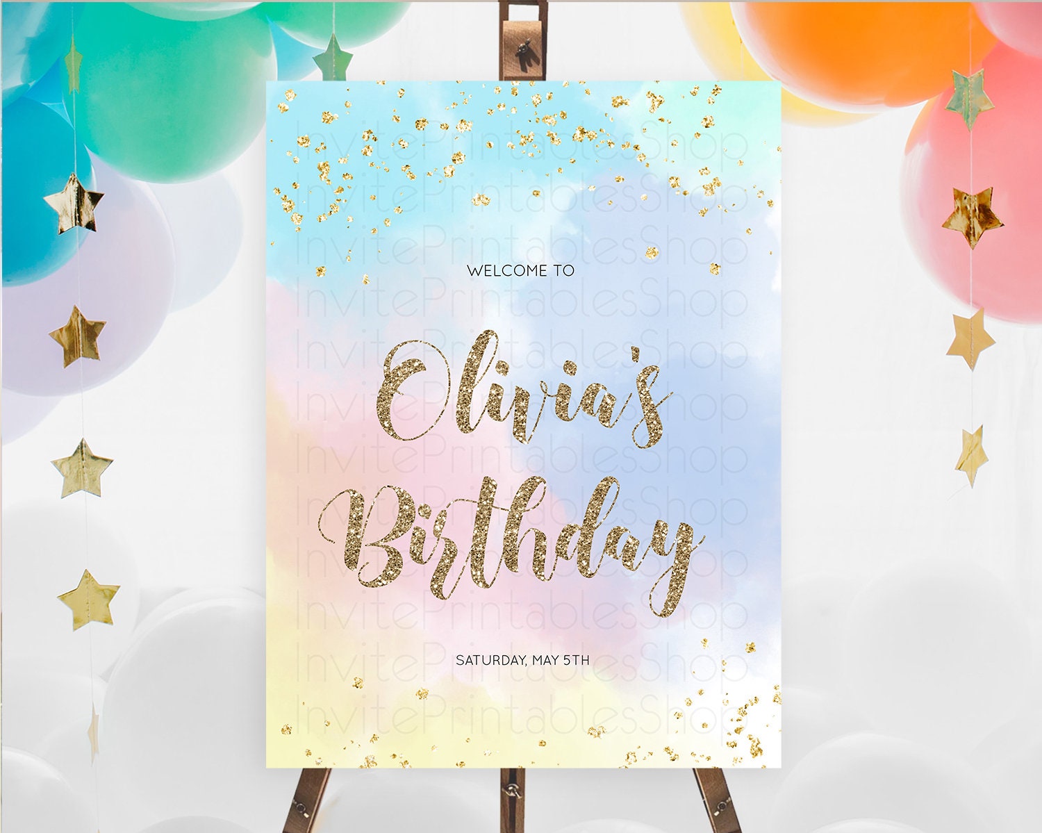 Pastel Welcome Sign Pastel Rainbow Welcome Sign Colorful Rainbow Confetti Watercolor Glitter Pastel First Birthday Welcome Sign D10367