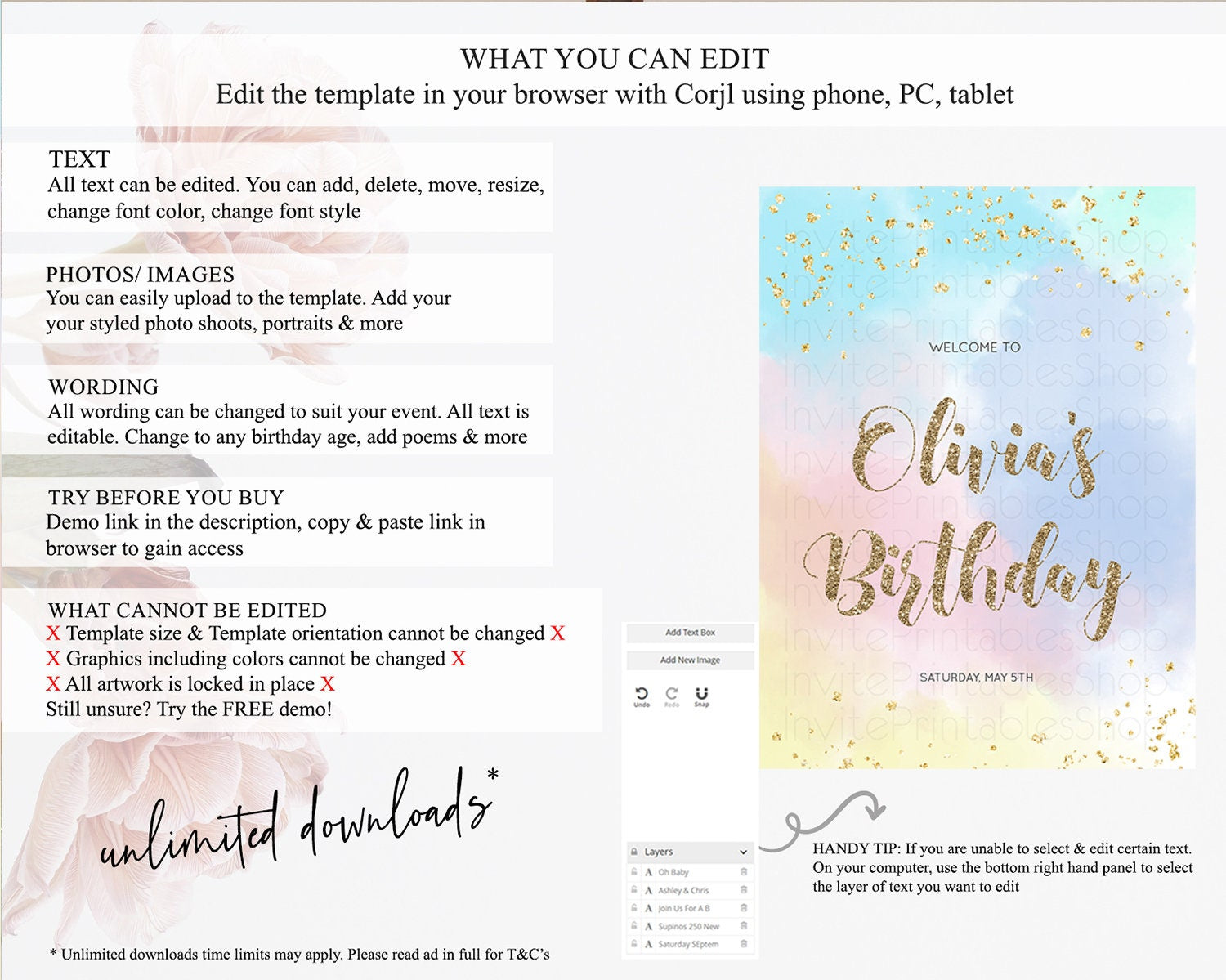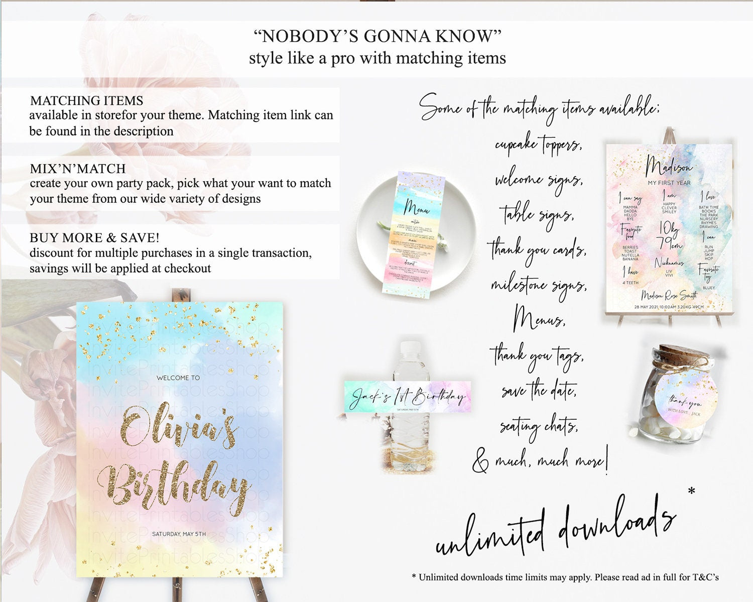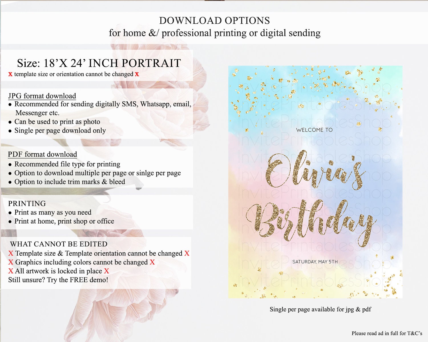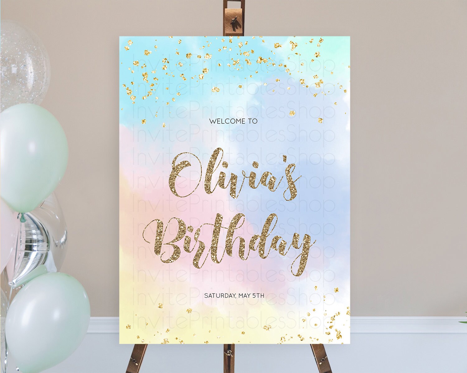 Pastel Welcome Sign Pastel Rainbow Welcome Sign Colorful Rainbow Confetti Watercolor Glitter Pastel First Birthday Welcome Sign D10367