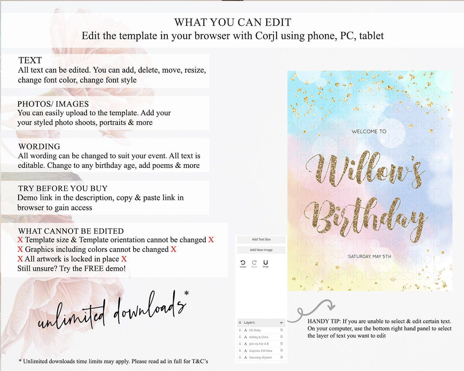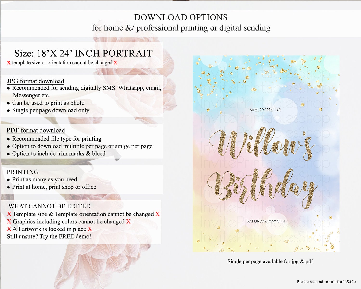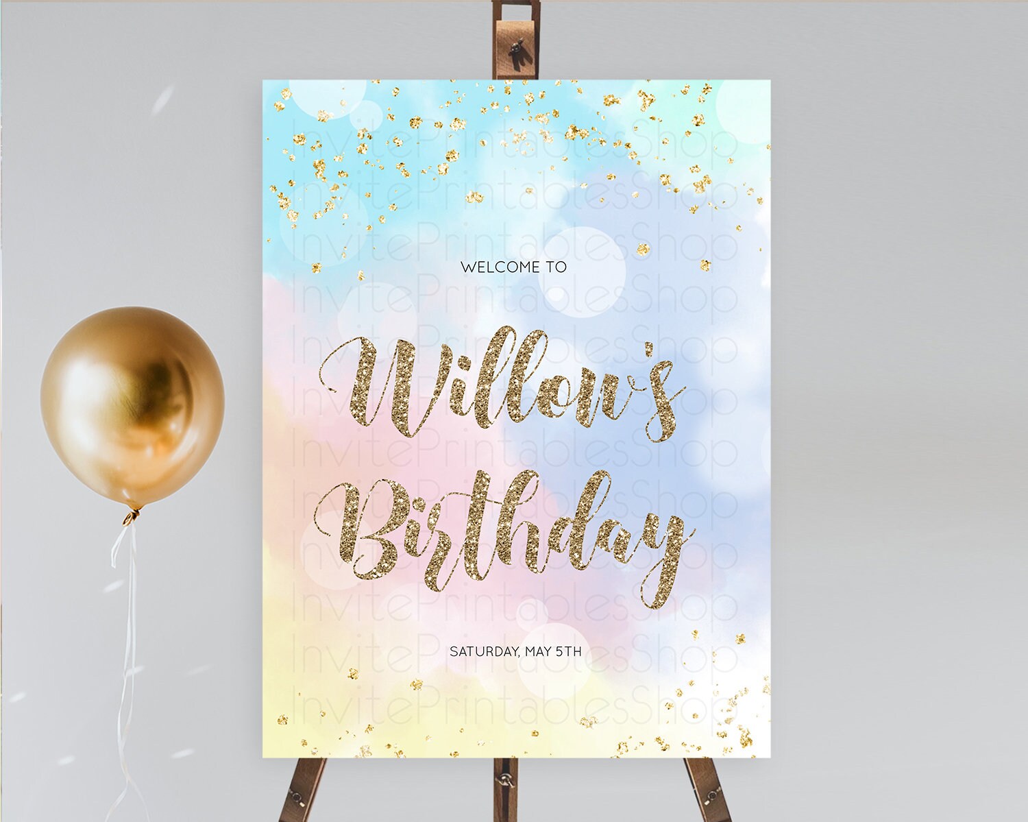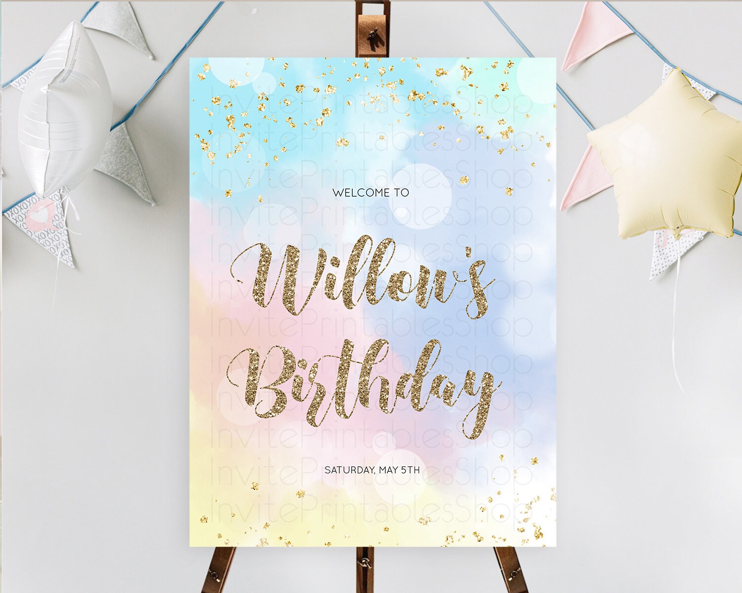 Pastel Welcome Sign Pastel Rainbow Welcome Sign Colorful Rainbow Confetti Watercolor Glitter Pastel First Birthday Welcome Sign D10367