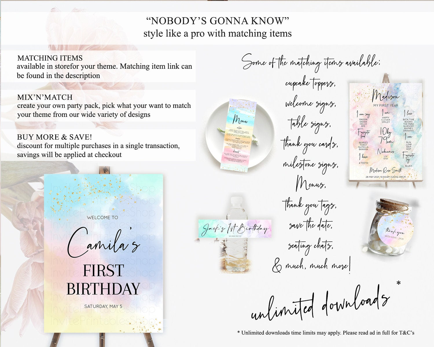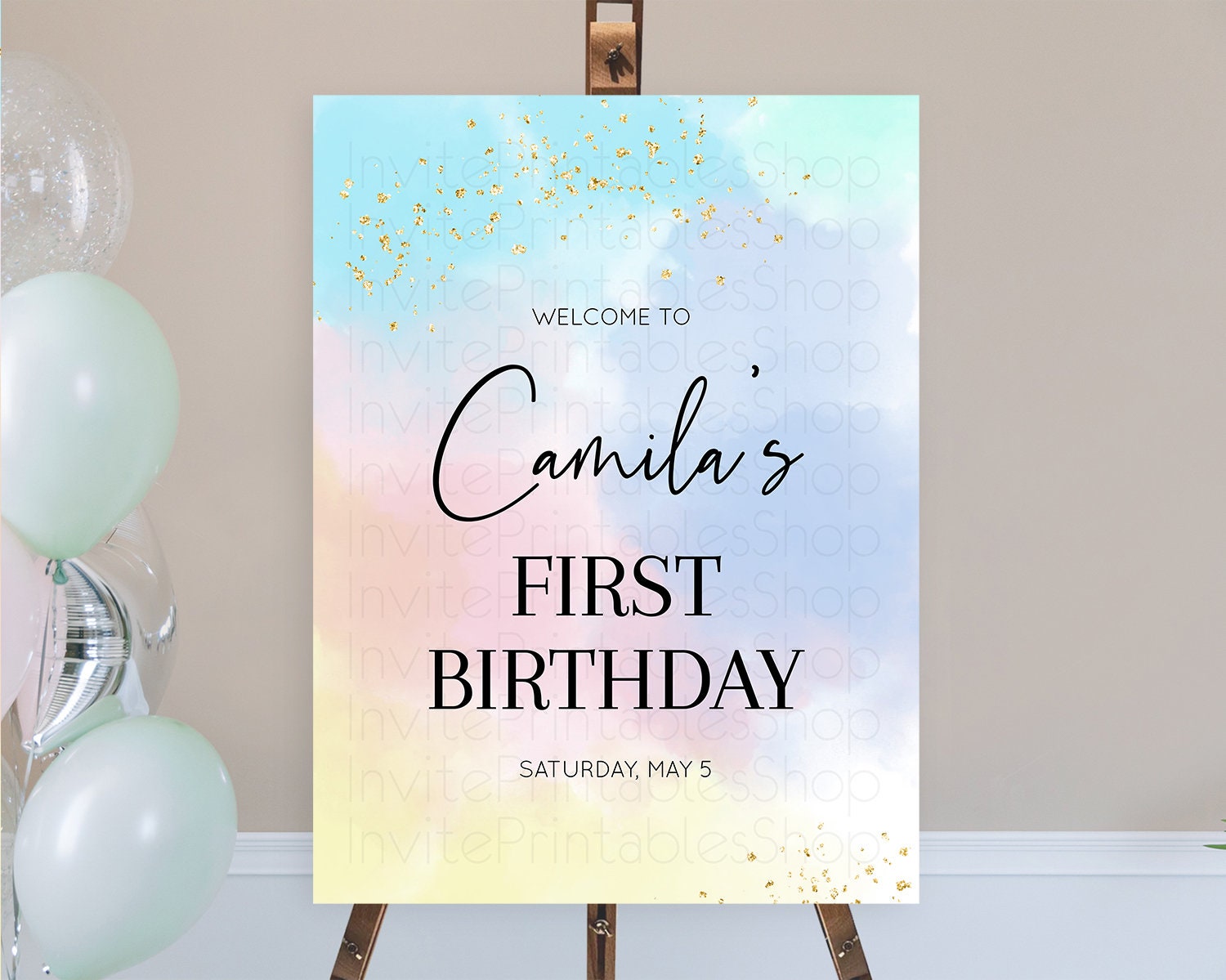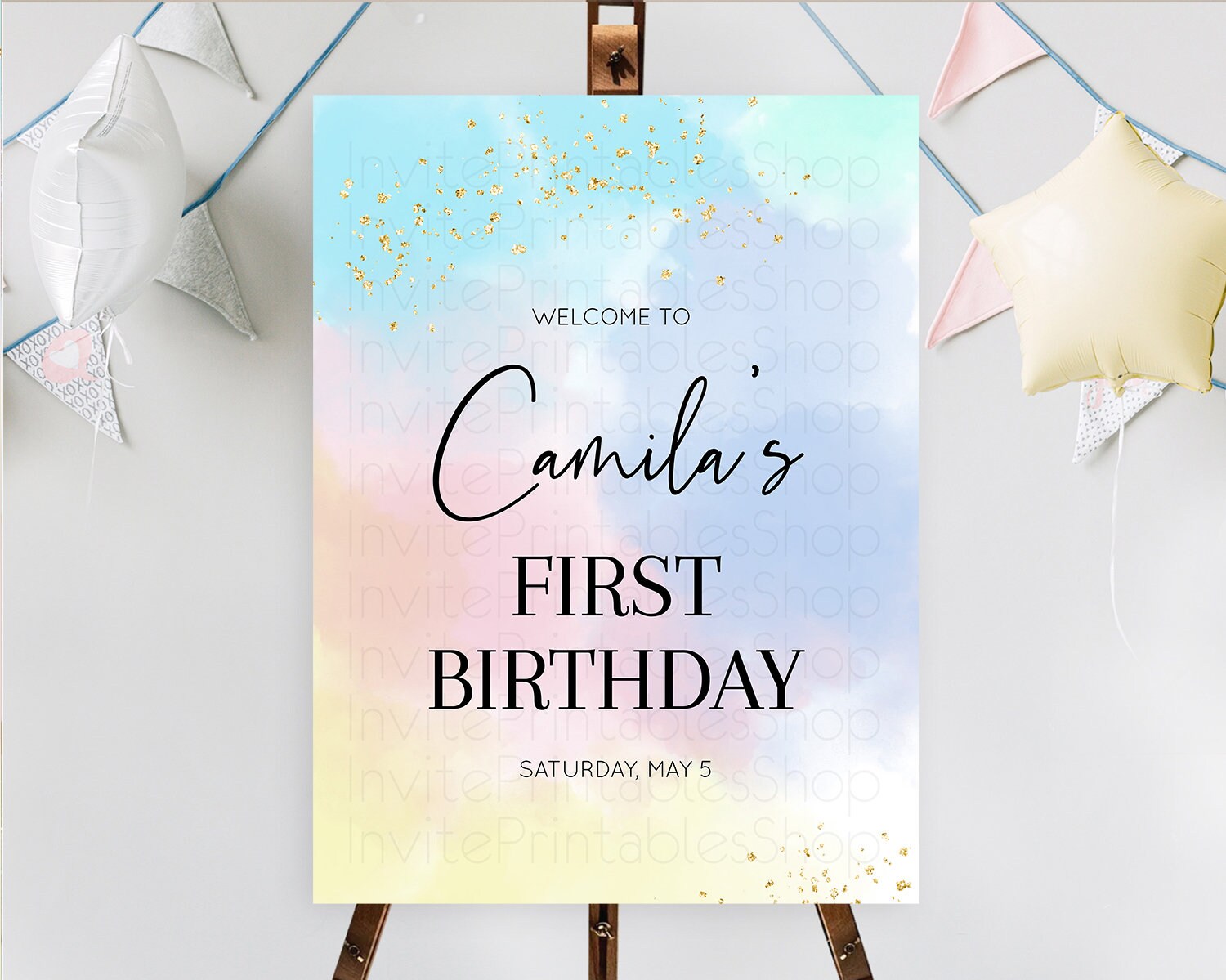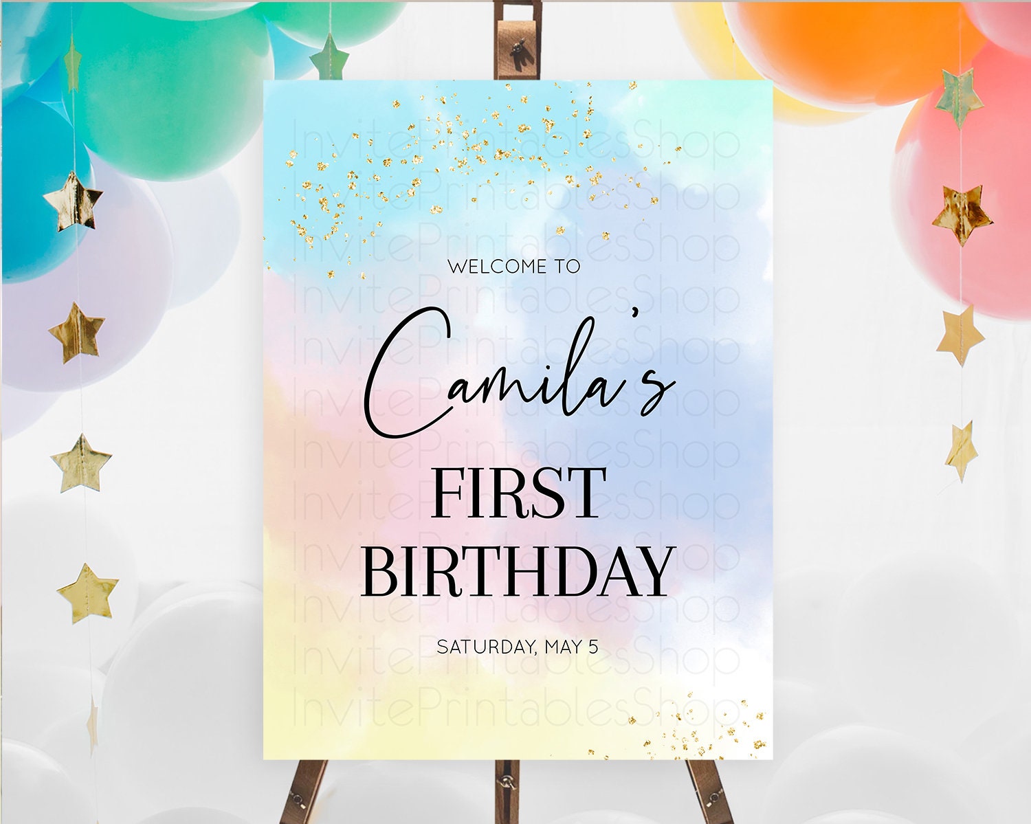 Pastel Welcome Sign Pastel Rainbow Welcome Sign Colorful Rainbow Confetti Watercolor Glitter Pastel First Birthday Welcome Sign D10368