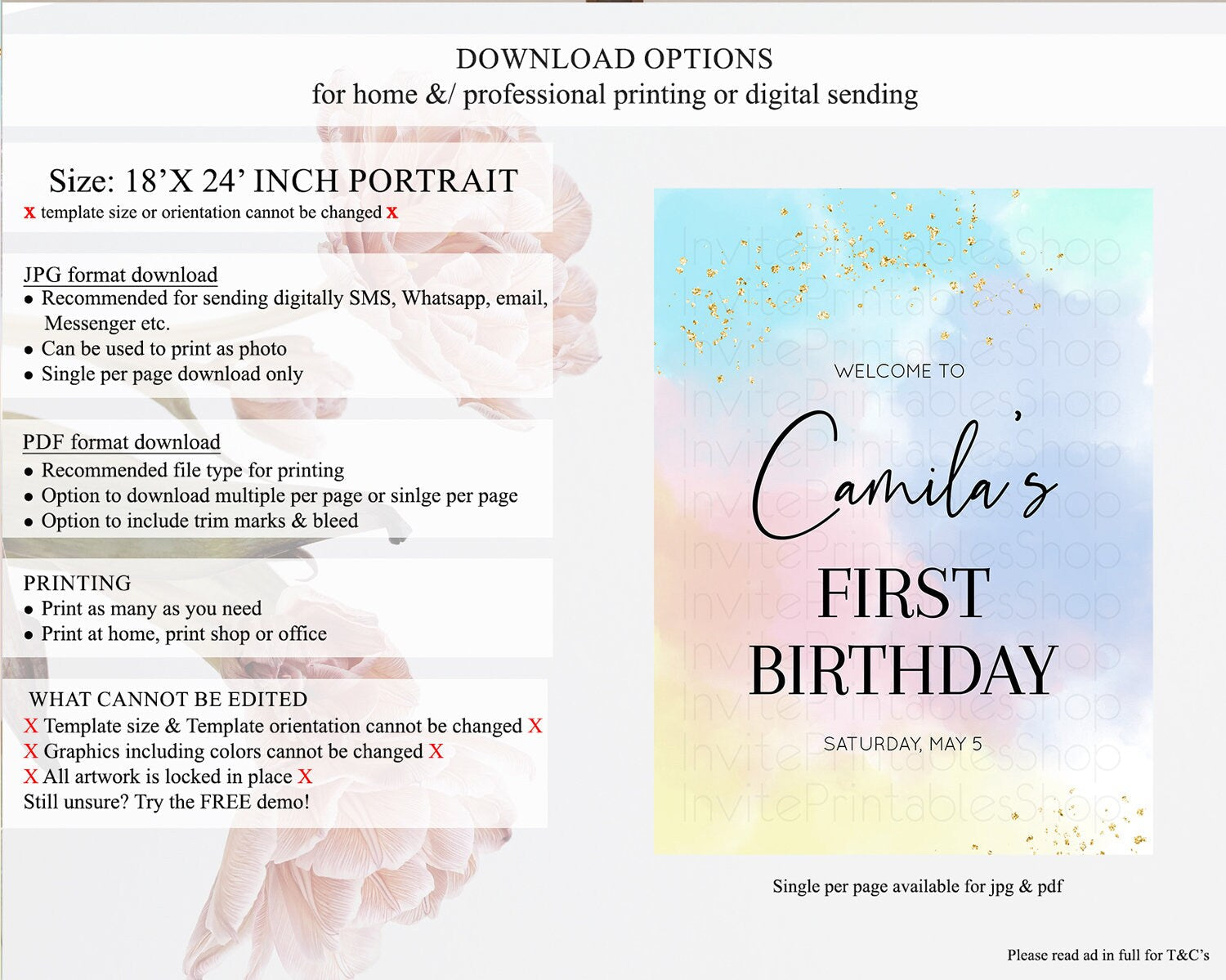 • Template size & orientation cannot be changed. Please use the demo link to confirm this product suits your needs.