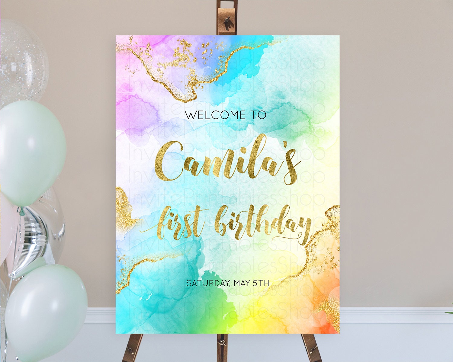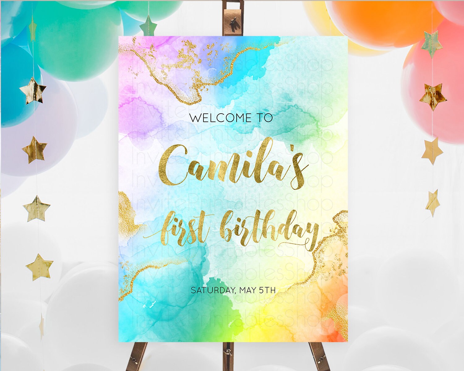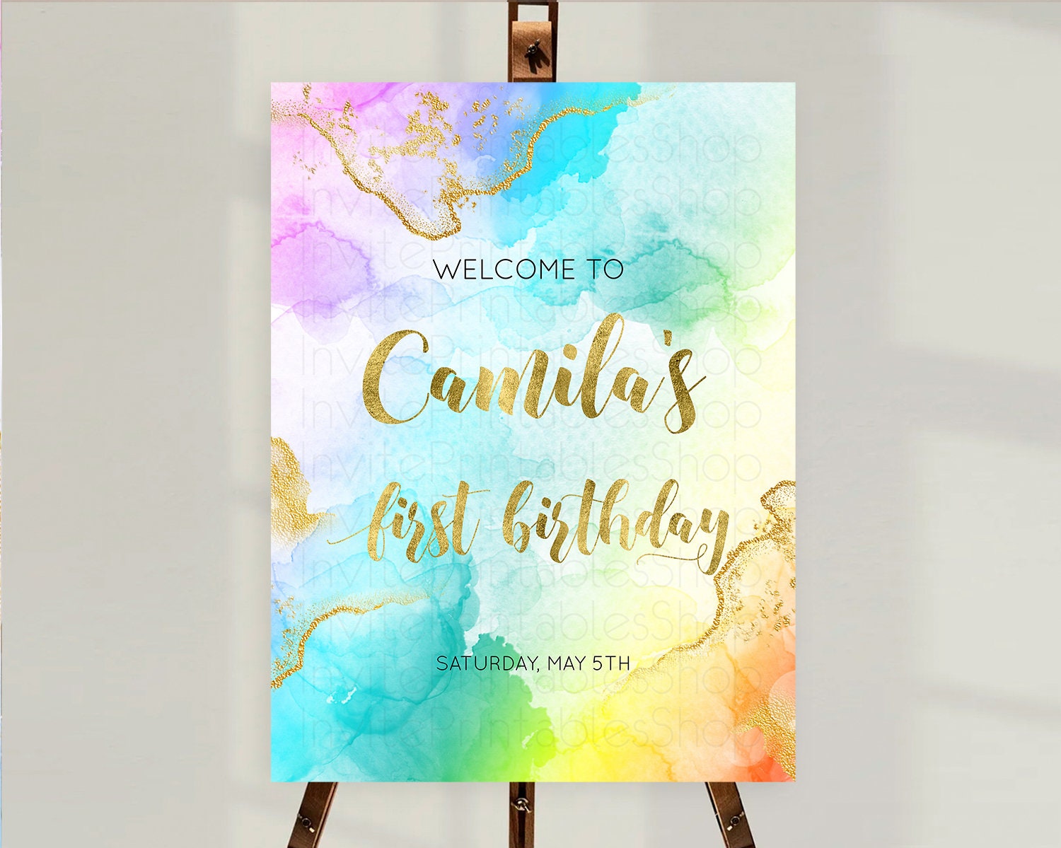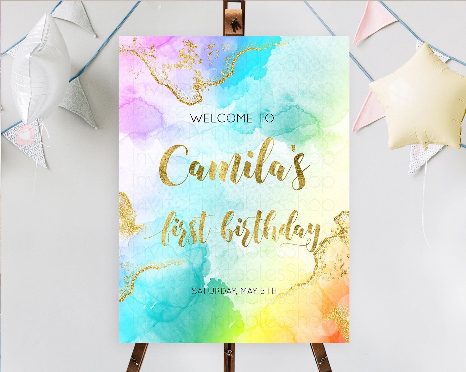 Pastel Welcome Sign Pastel Rainbow Welcome Sign Colorful Rainbow Confetti Watercolor Glitter Pastel First Birthday Welcome Sign D10392