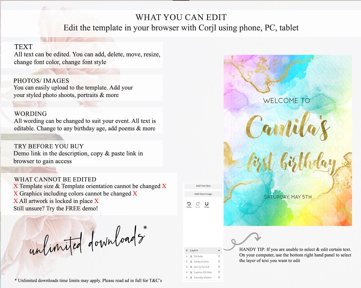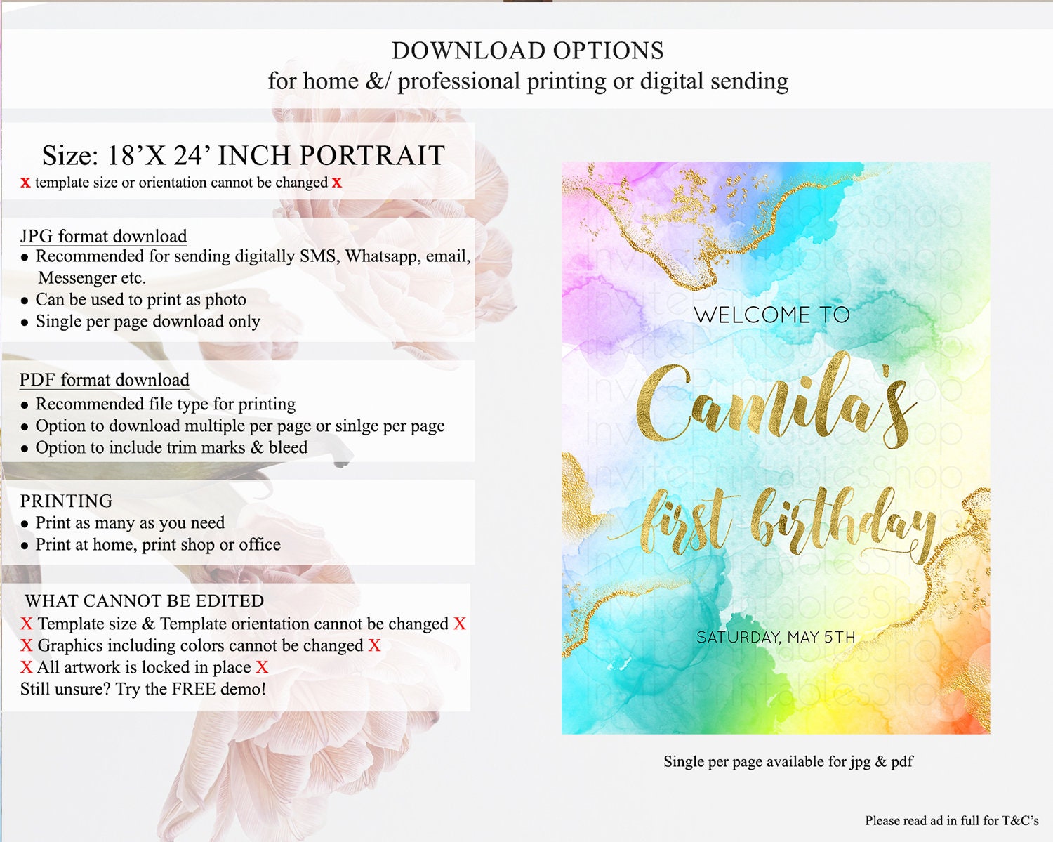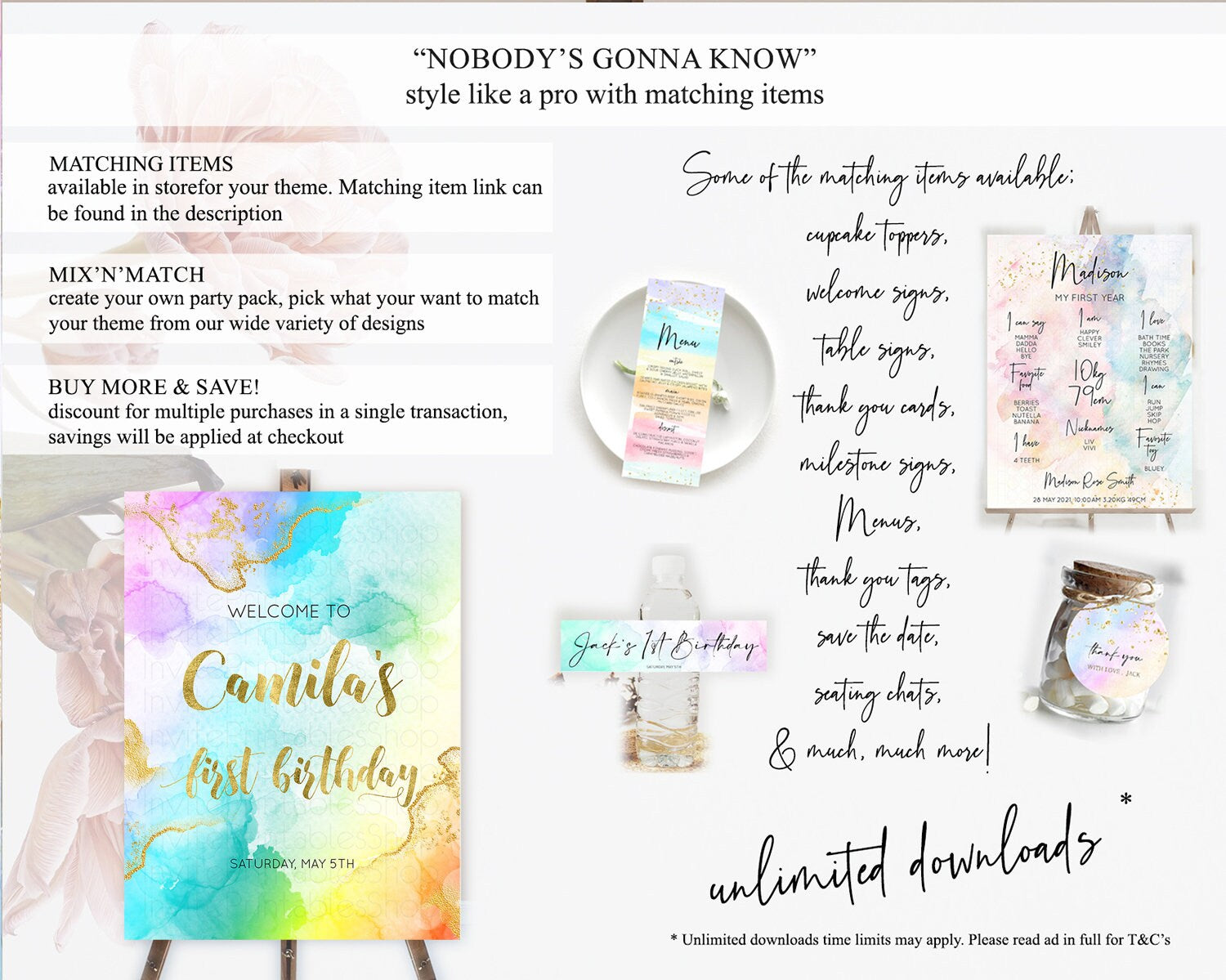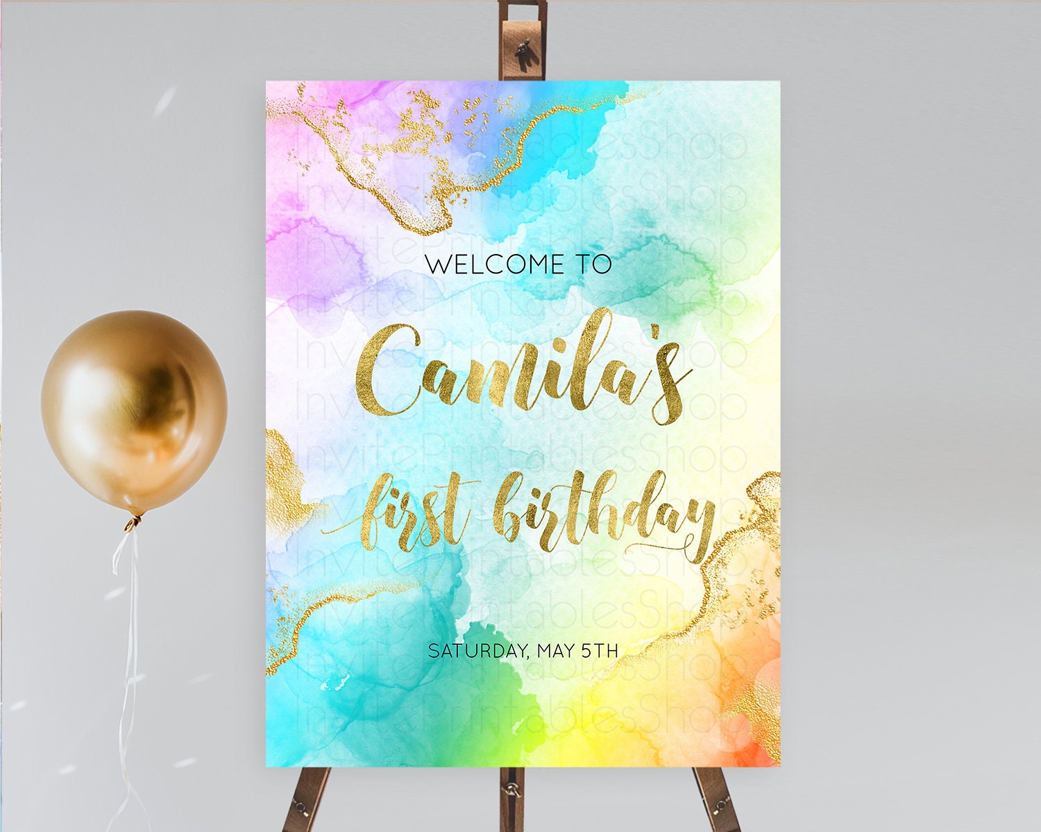 Pastel Welcome Sign Pastel Rainbow Welcome Sign Colorful Rainbow Confetti Watercolor Glitter Pastel First Birthday Welcome Sign D10392
