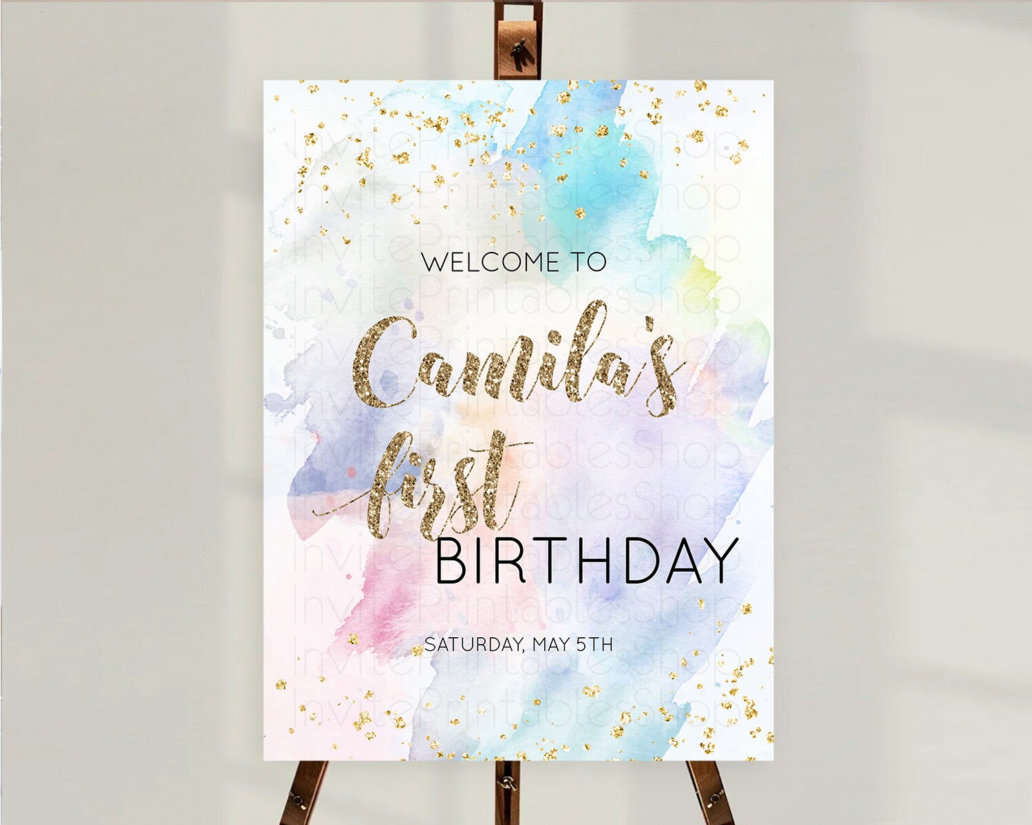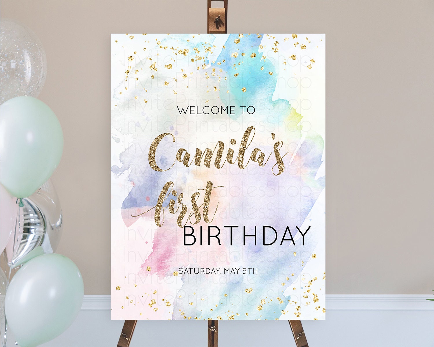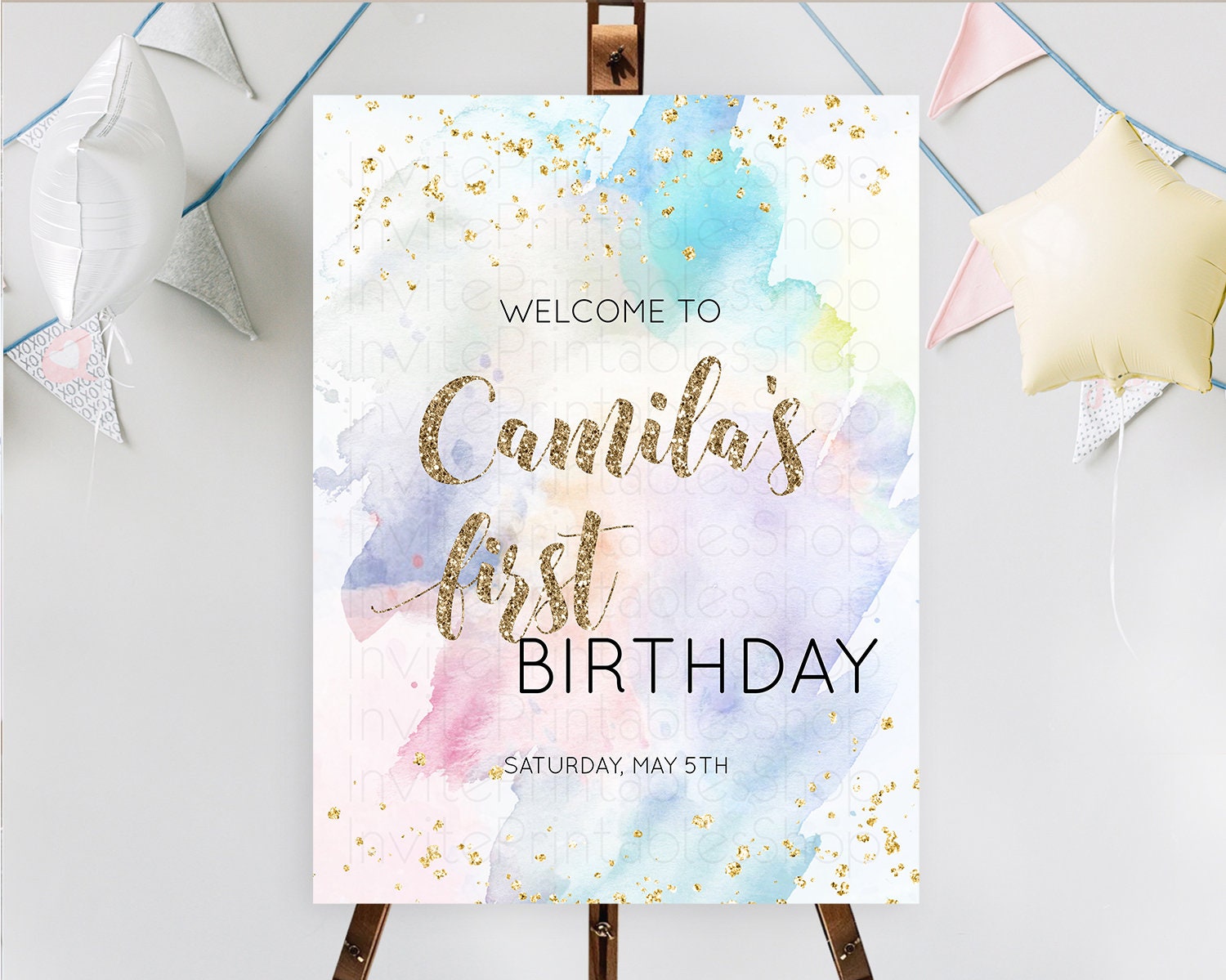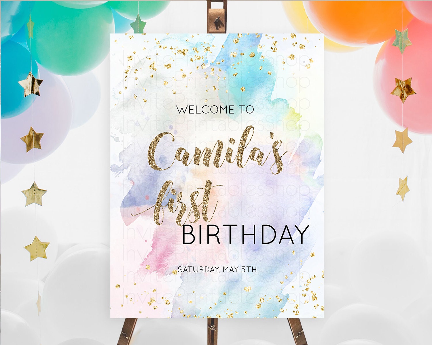 Pastel Welcome Sign Pastel Rainbow Welcome Sign Colorful Rainbow Confetti Watercolor Glitter Pastel First Birthday Welcome Sign D10421