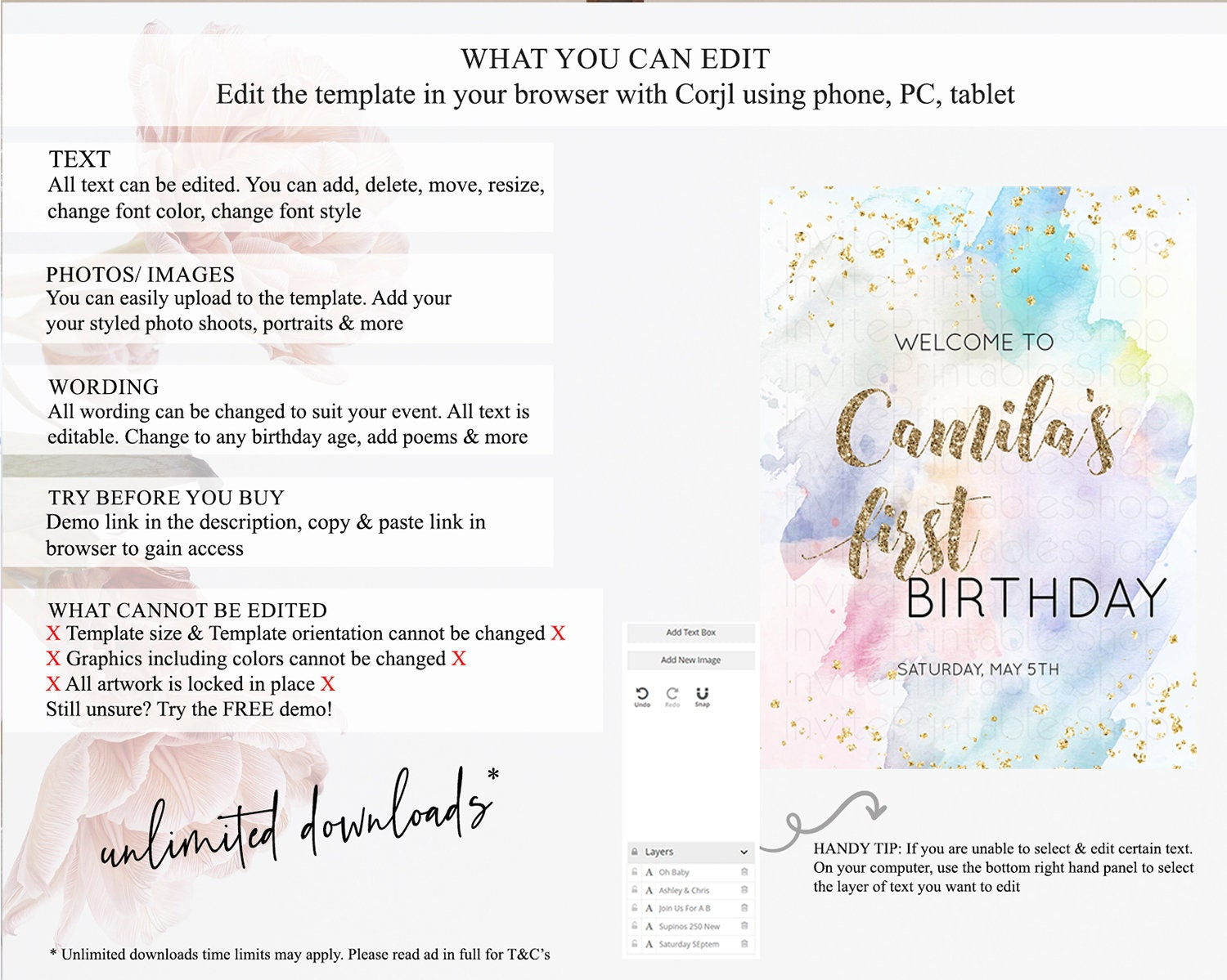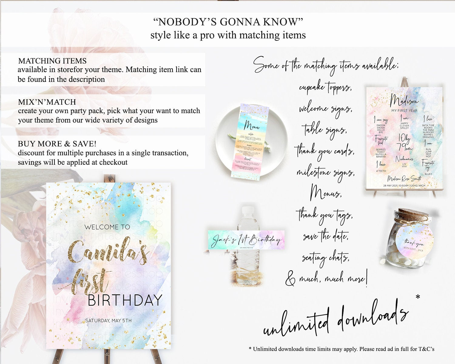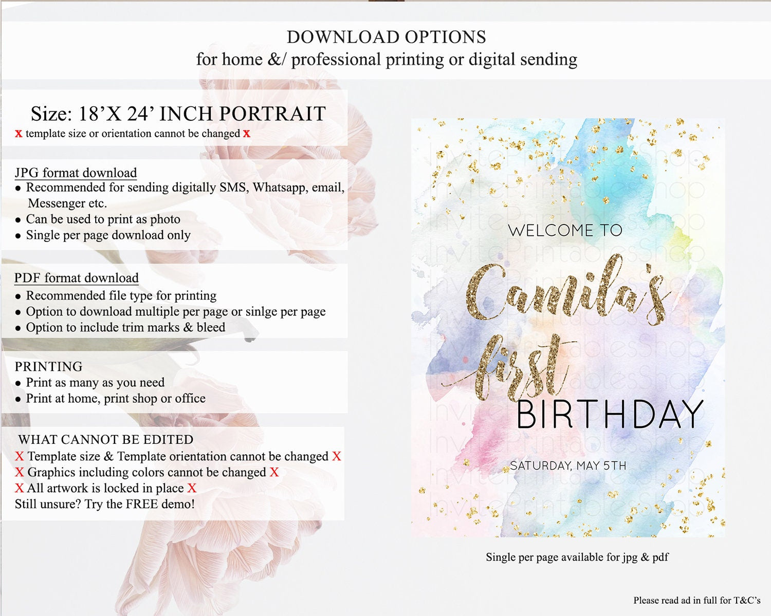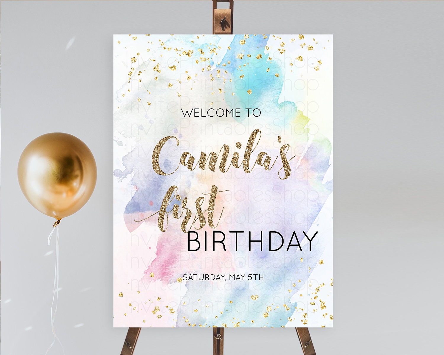 Pastel Welcome Sign Pastel Rainbow Welcome Sign Colorful Rainbow Confetti Watercolor Glitter Pastel First Birthday Welcome Sign D10421