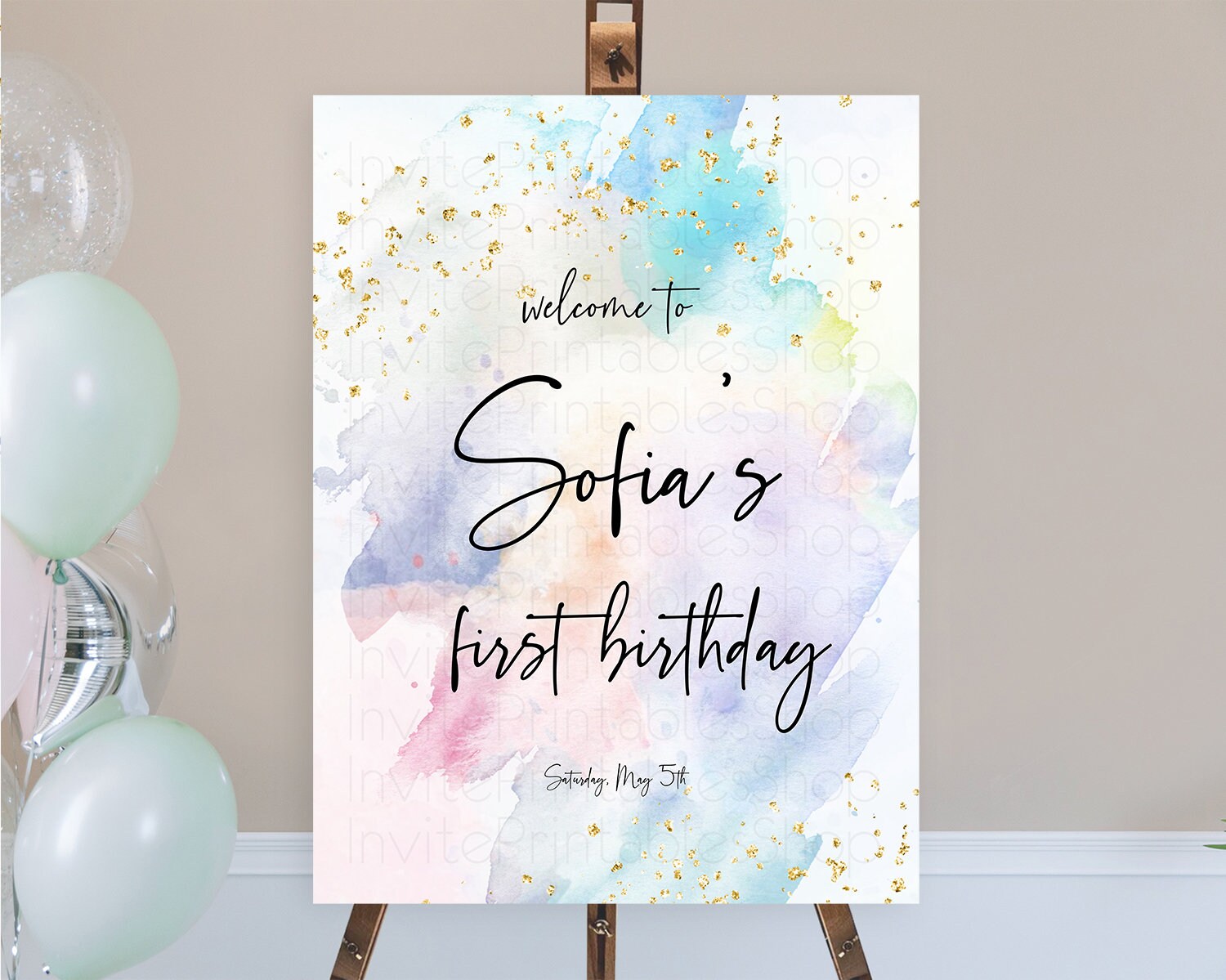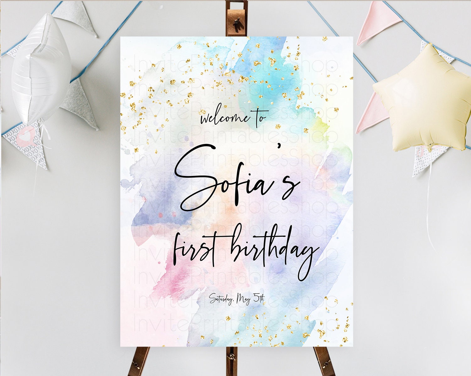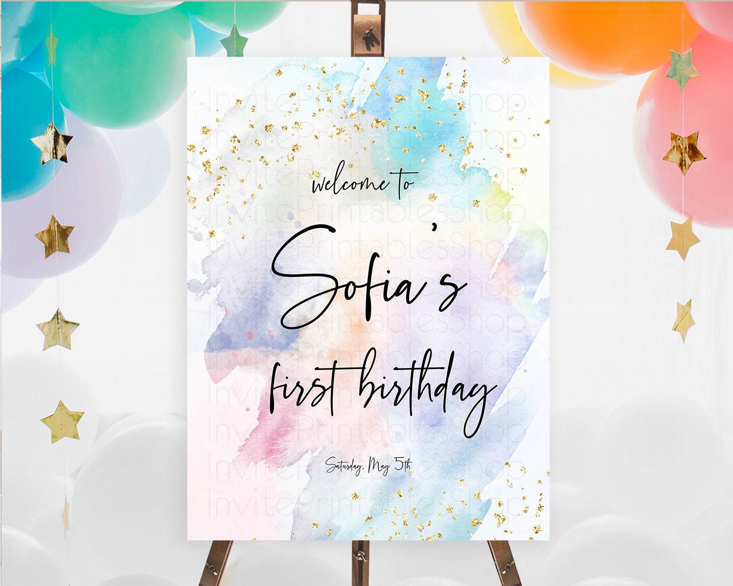 Pastel Welcome Sign Pastel Rainbow Welcome Sign Colorful Rainbow Confetti Watercolor Glitter Pastel First Birthday Welcome Sign D10424