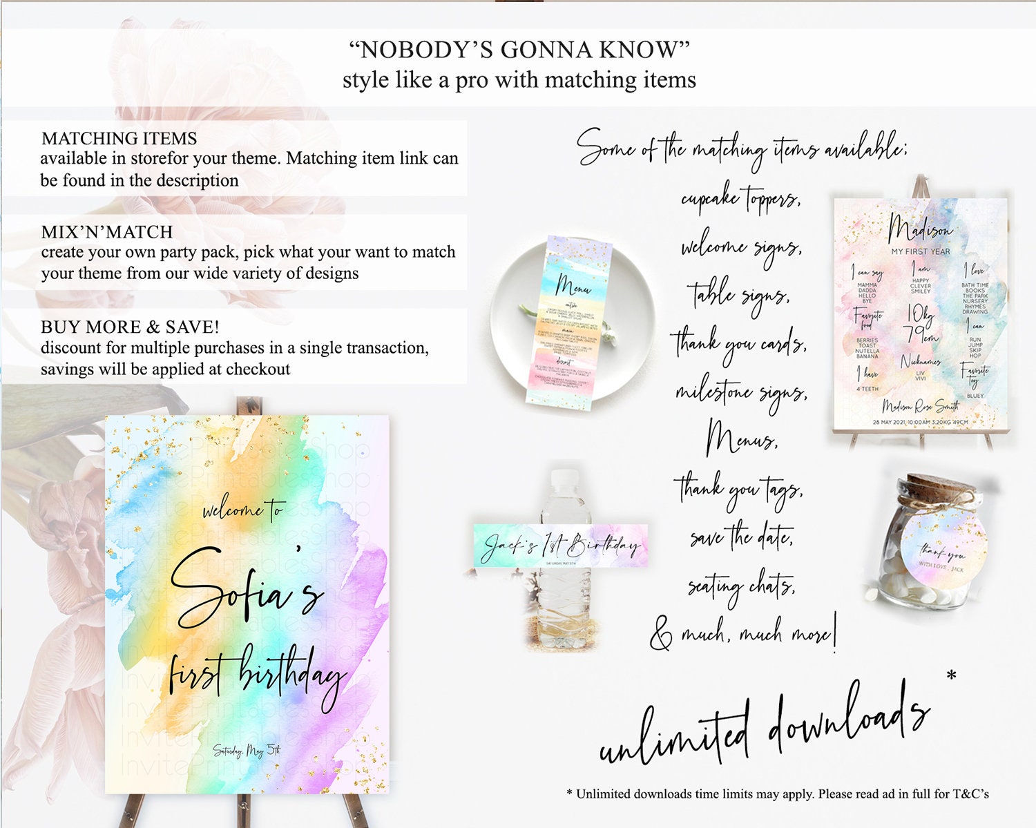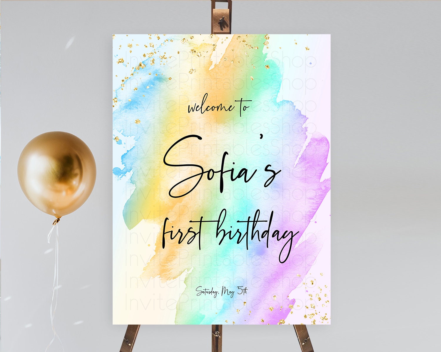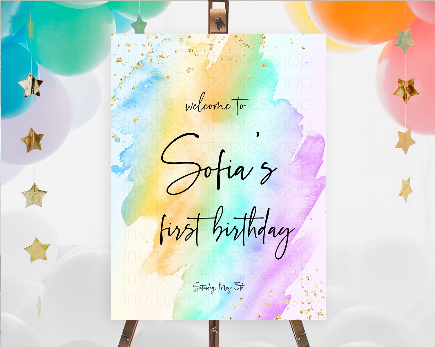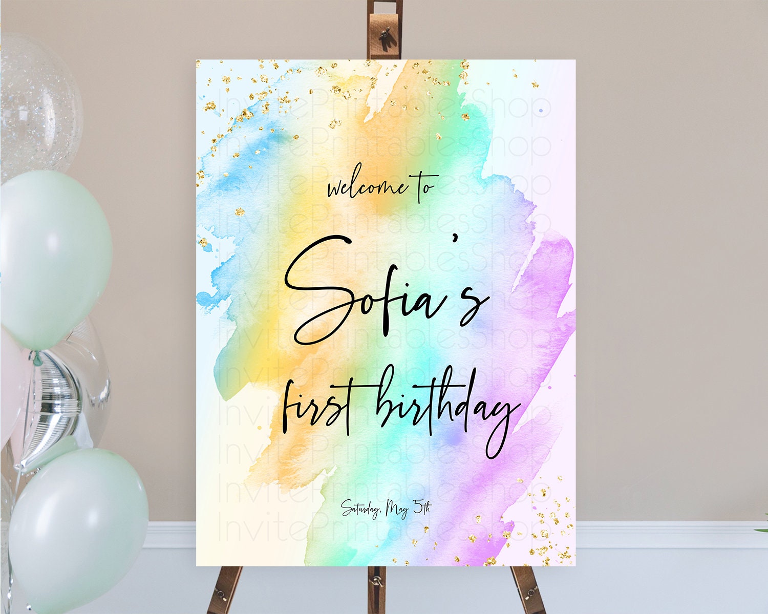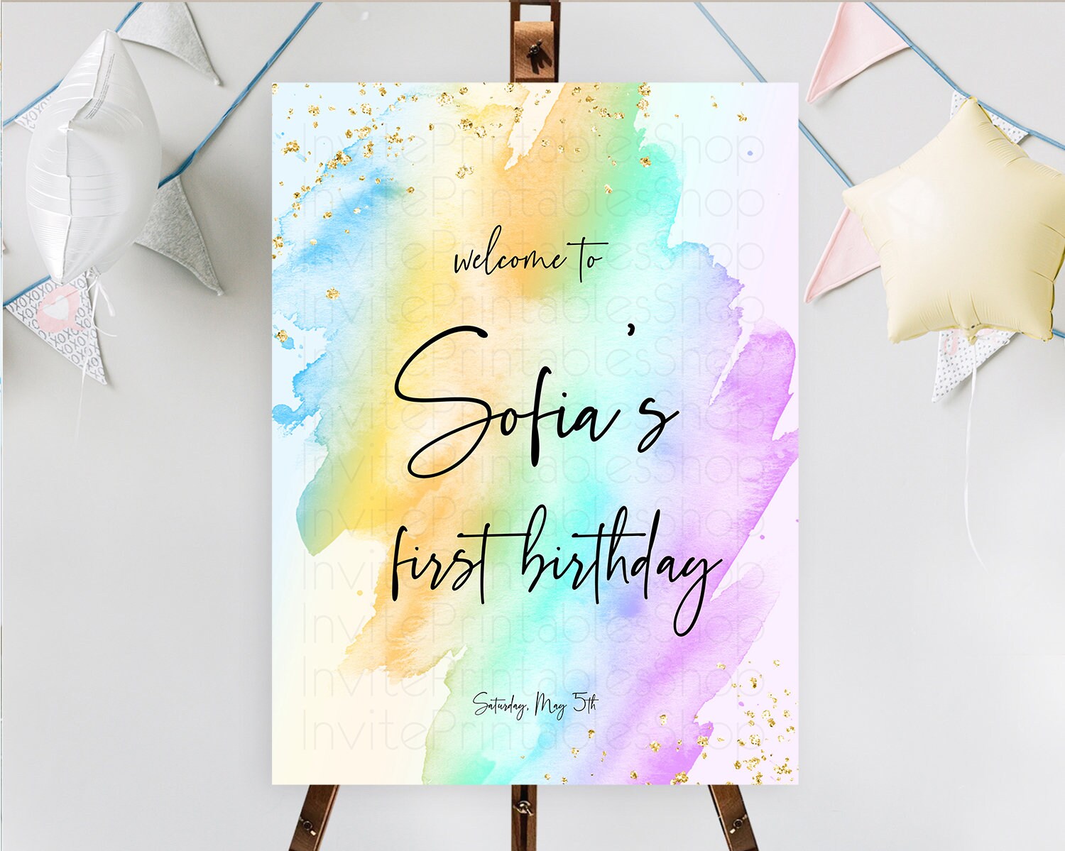 Pastel Welcome Sign Pastel Rainbow Welcome Sign Colorful Rainbow Confetti Watercolor Glitter Pastel First Birthday Welcome Sign D10425