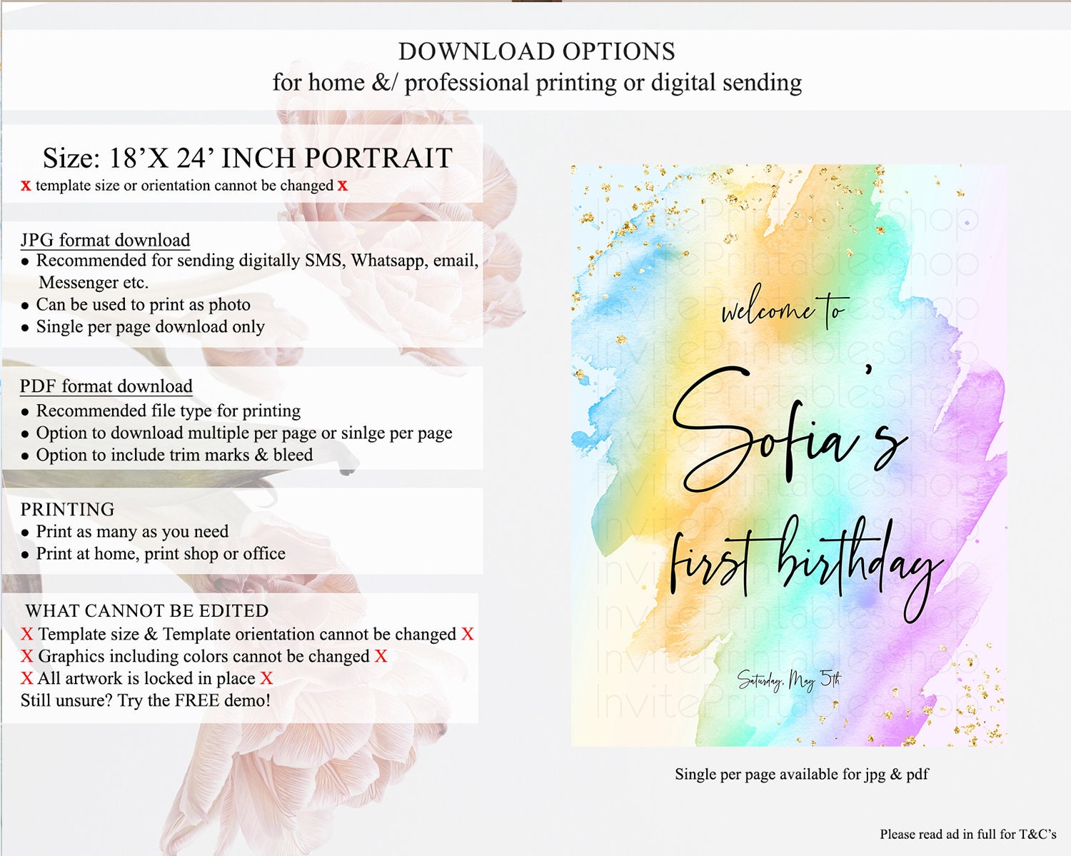 • Template size & orientation cannot be changed. Please use the demo link to confirm this product suits your needs.