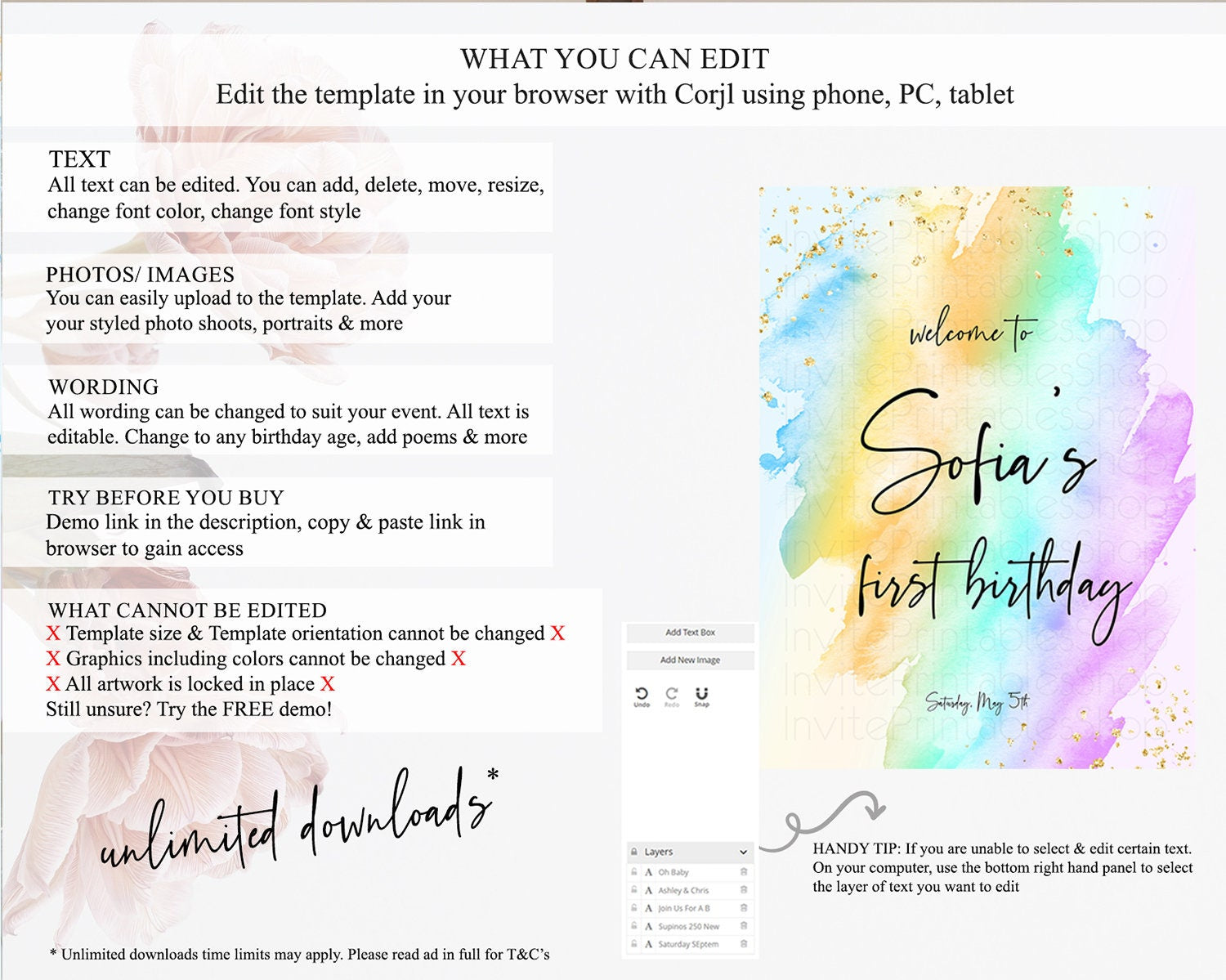 • After purchase, Corjl emails your editing link. Allow up to 15 minutes for delivery.