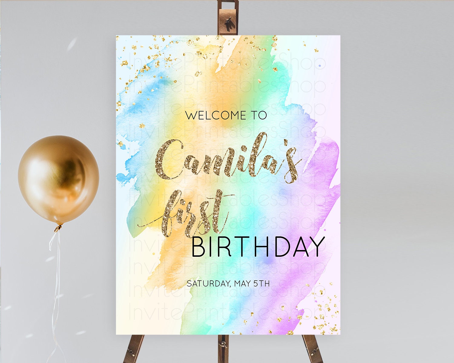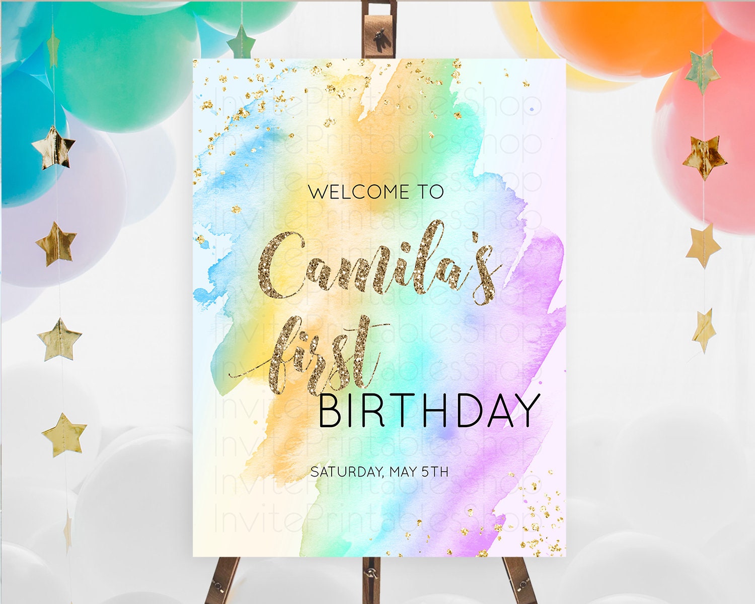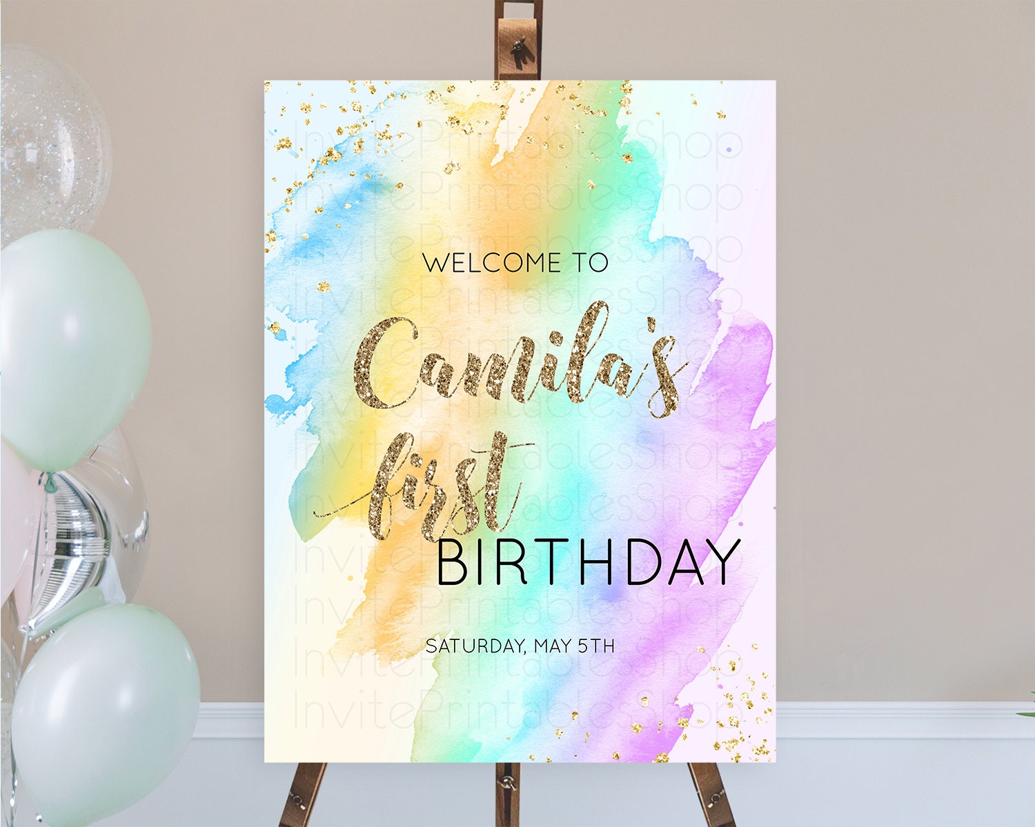 Pastel Welcome Sign Pastel Rainbow Welcome Sign Colorful Rainbow Confetti Watercolor Glitter Pastel First Birthday Welcome Sign D10426