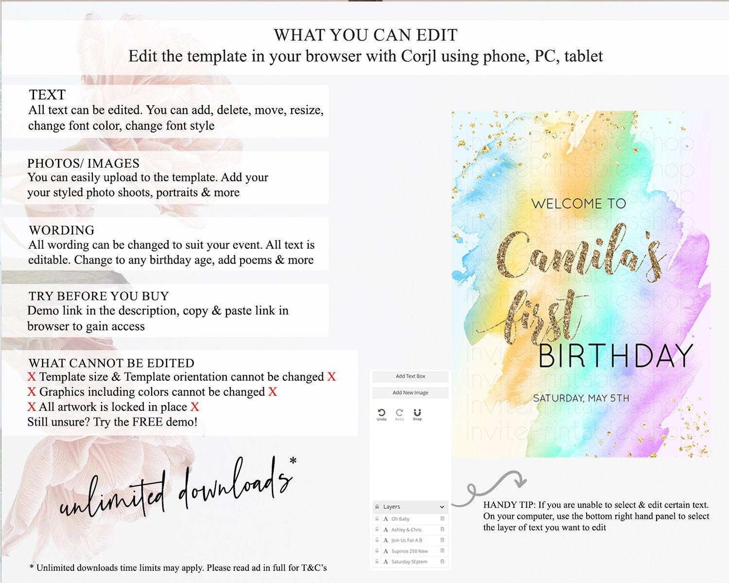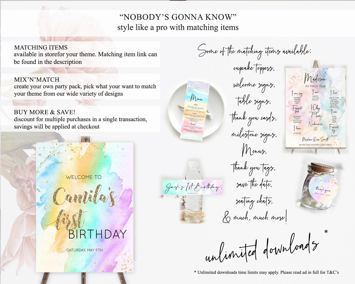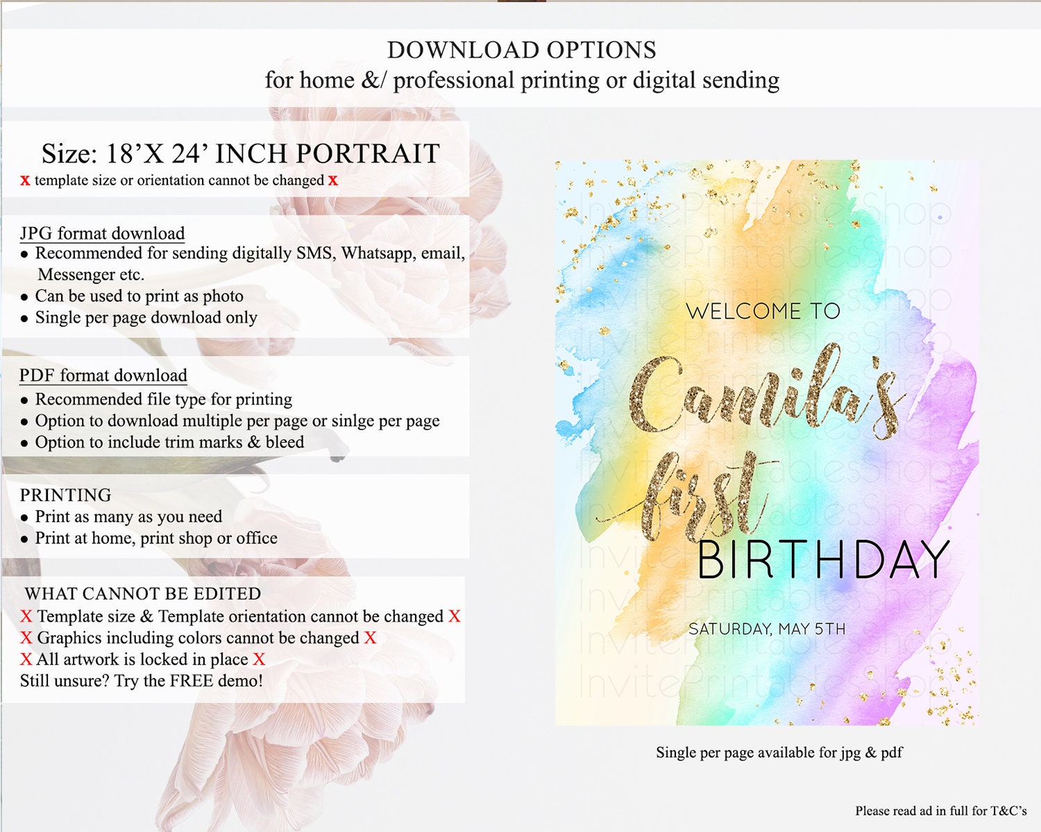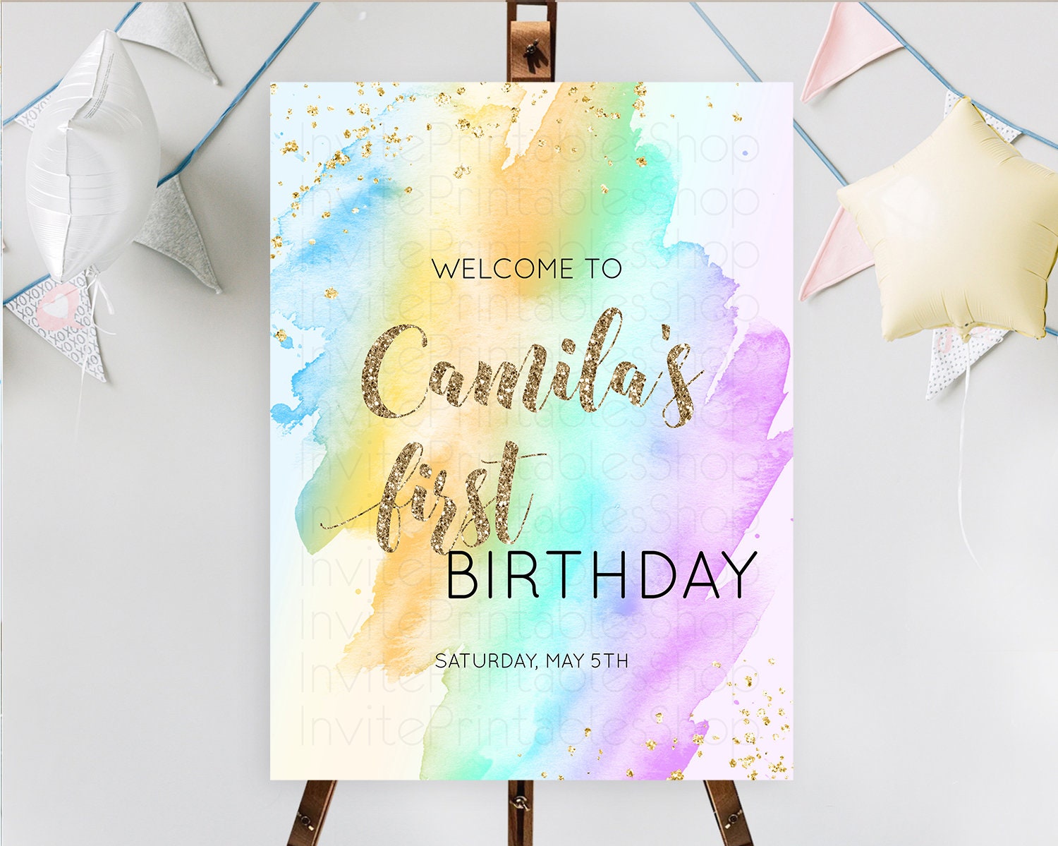 Pastel Welcome Sign Pastel Rainbow Welcome Sign Colorful Rainbow Confetti Watercolor Glitter Pastel First Birthday Welcome Sign D10426