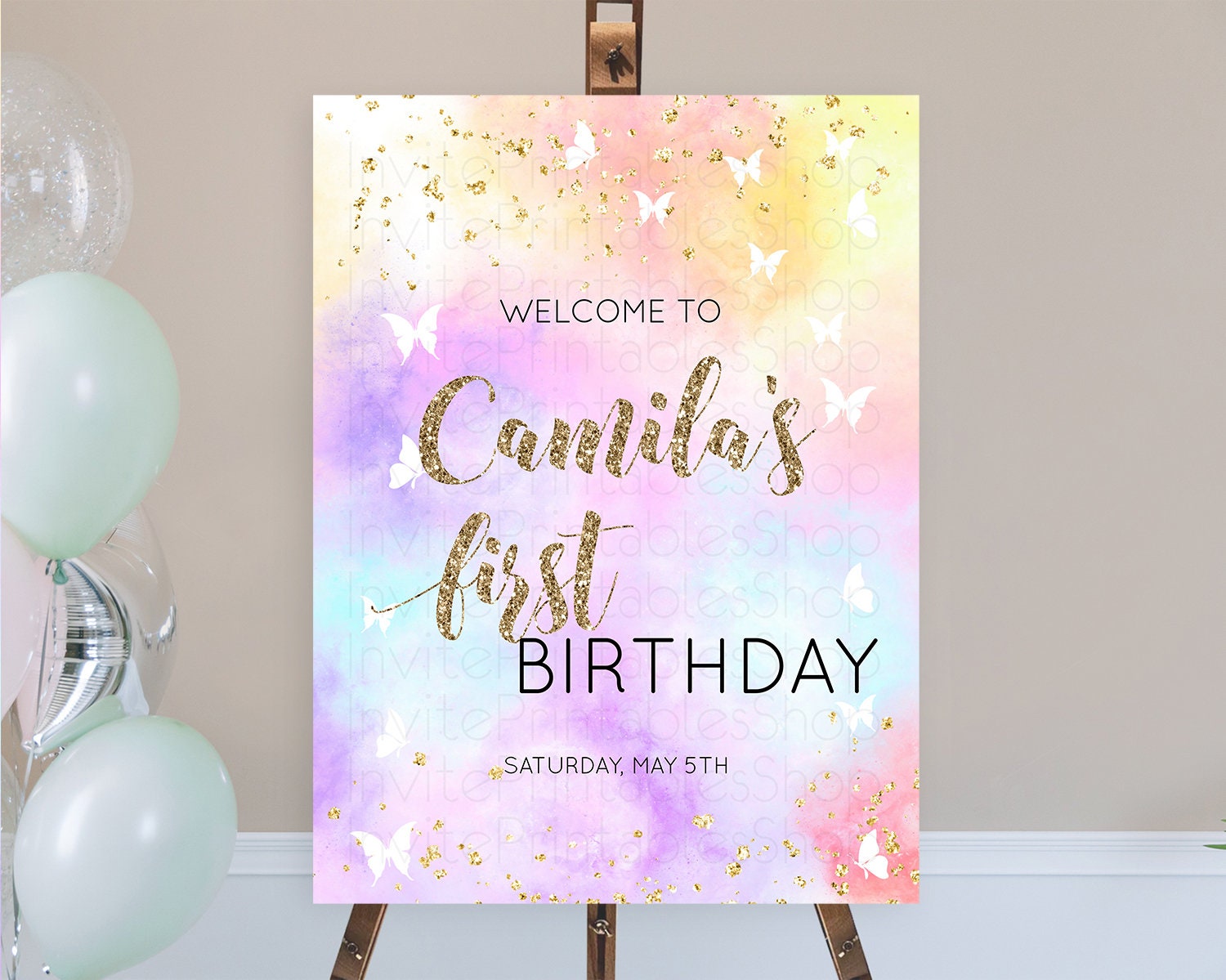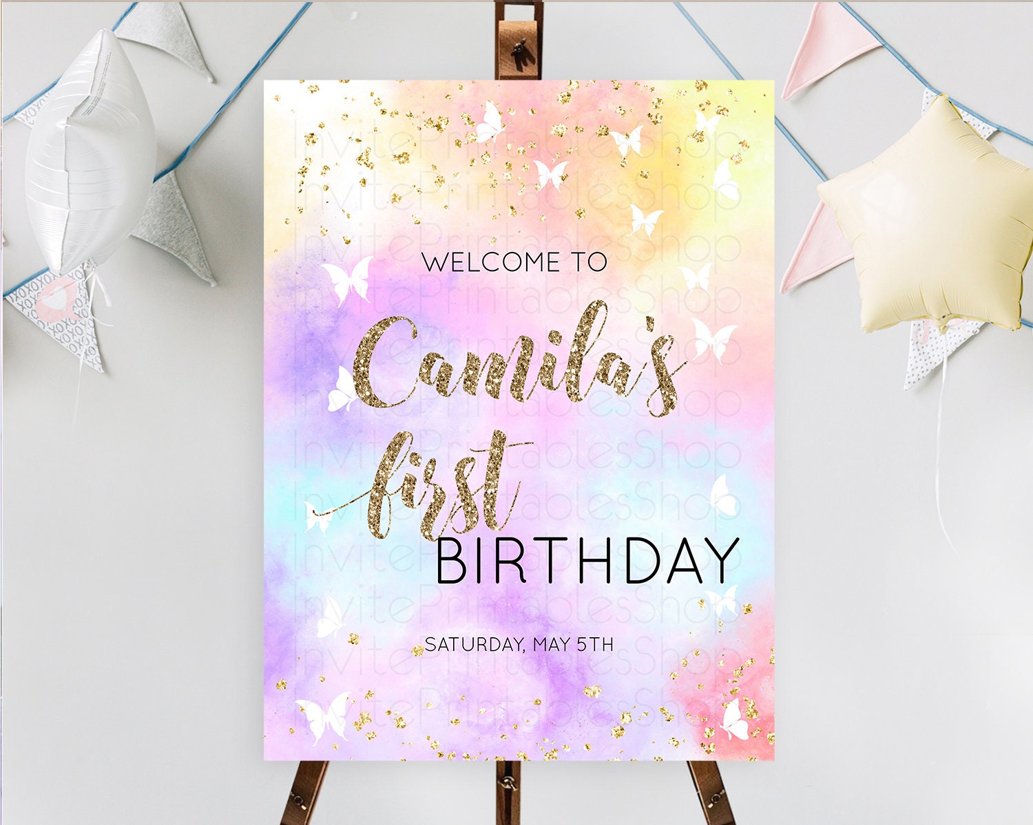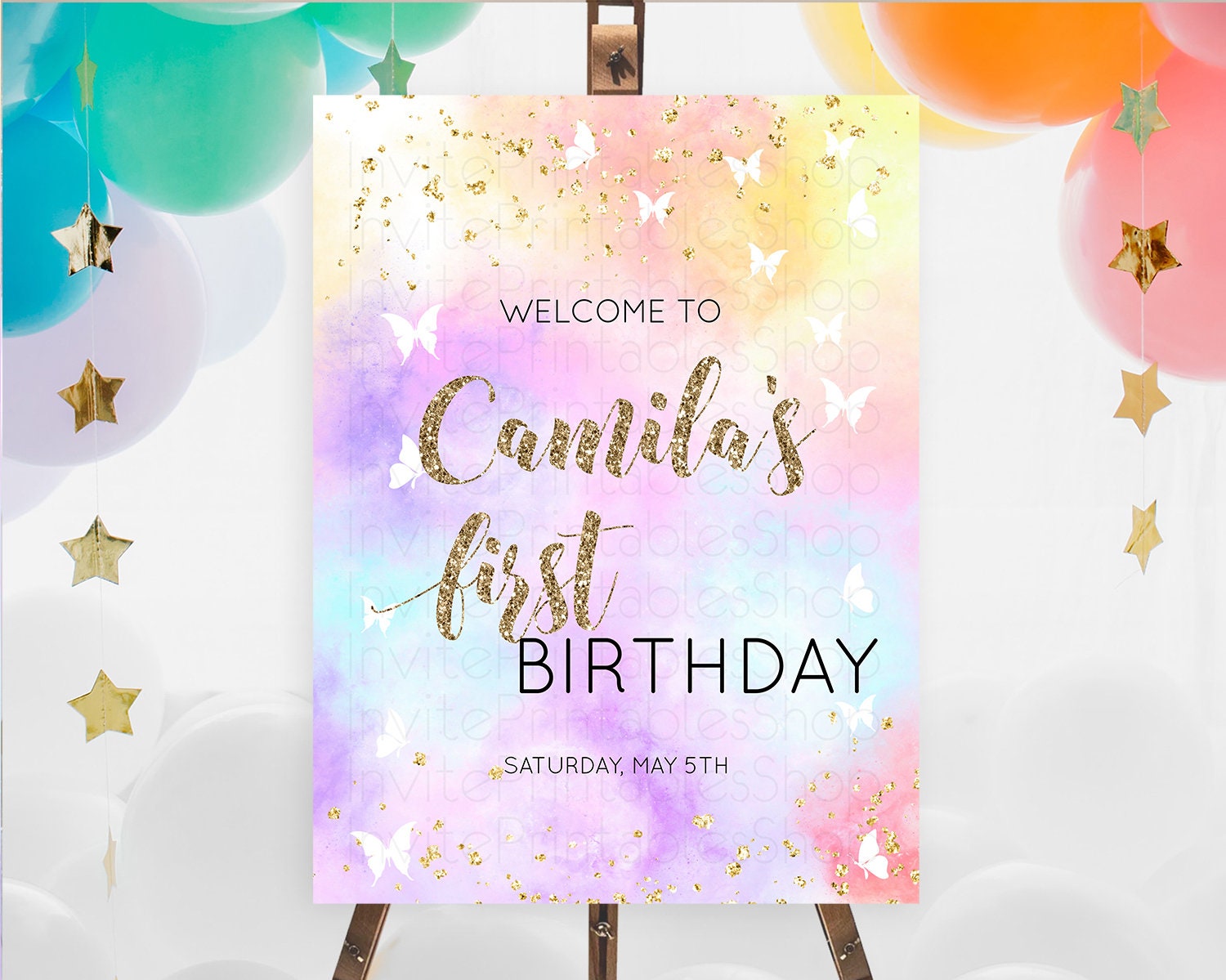 Pastel Welcome Sign Pastel Rainbow Welcome Sign Colorful Rainbow Confetti Watercolor Glitter Pastel First Birthday Welcome Sign D10435