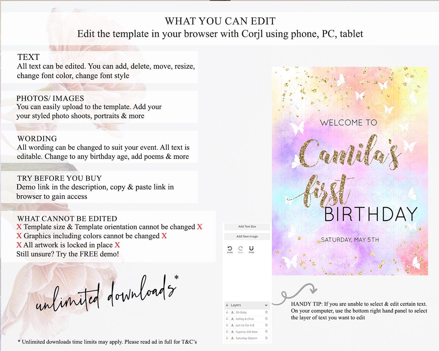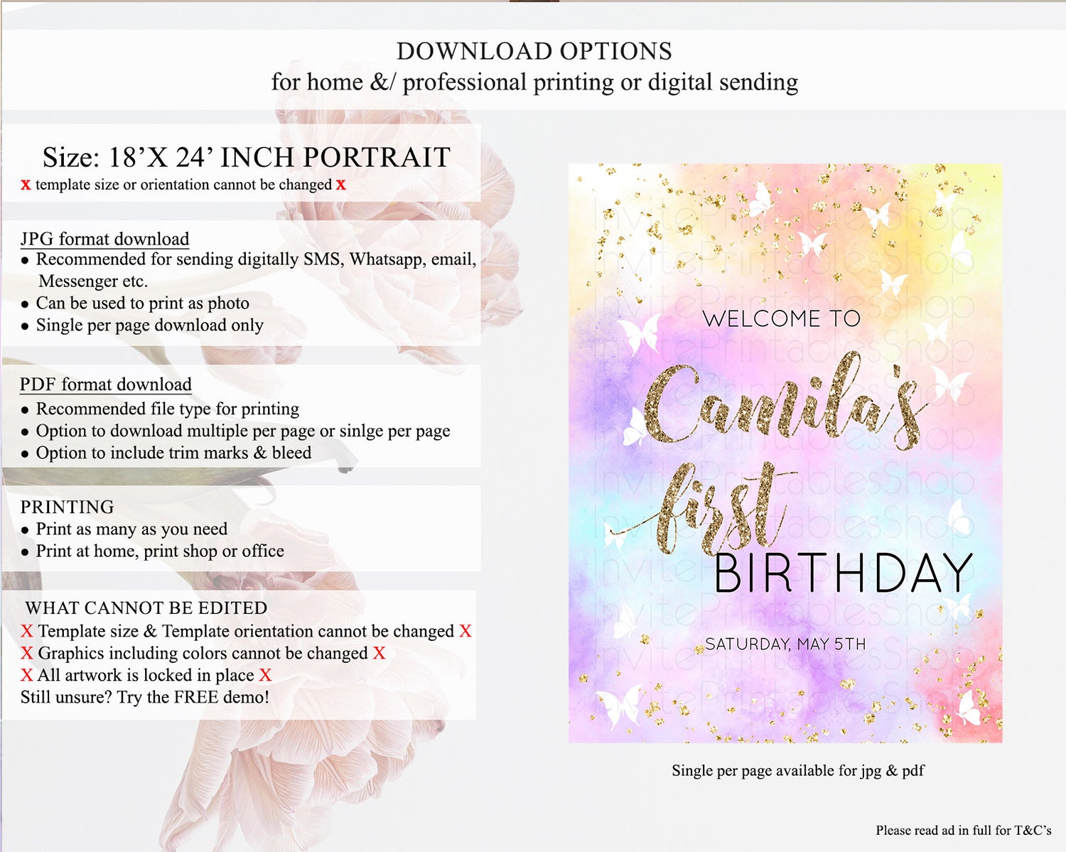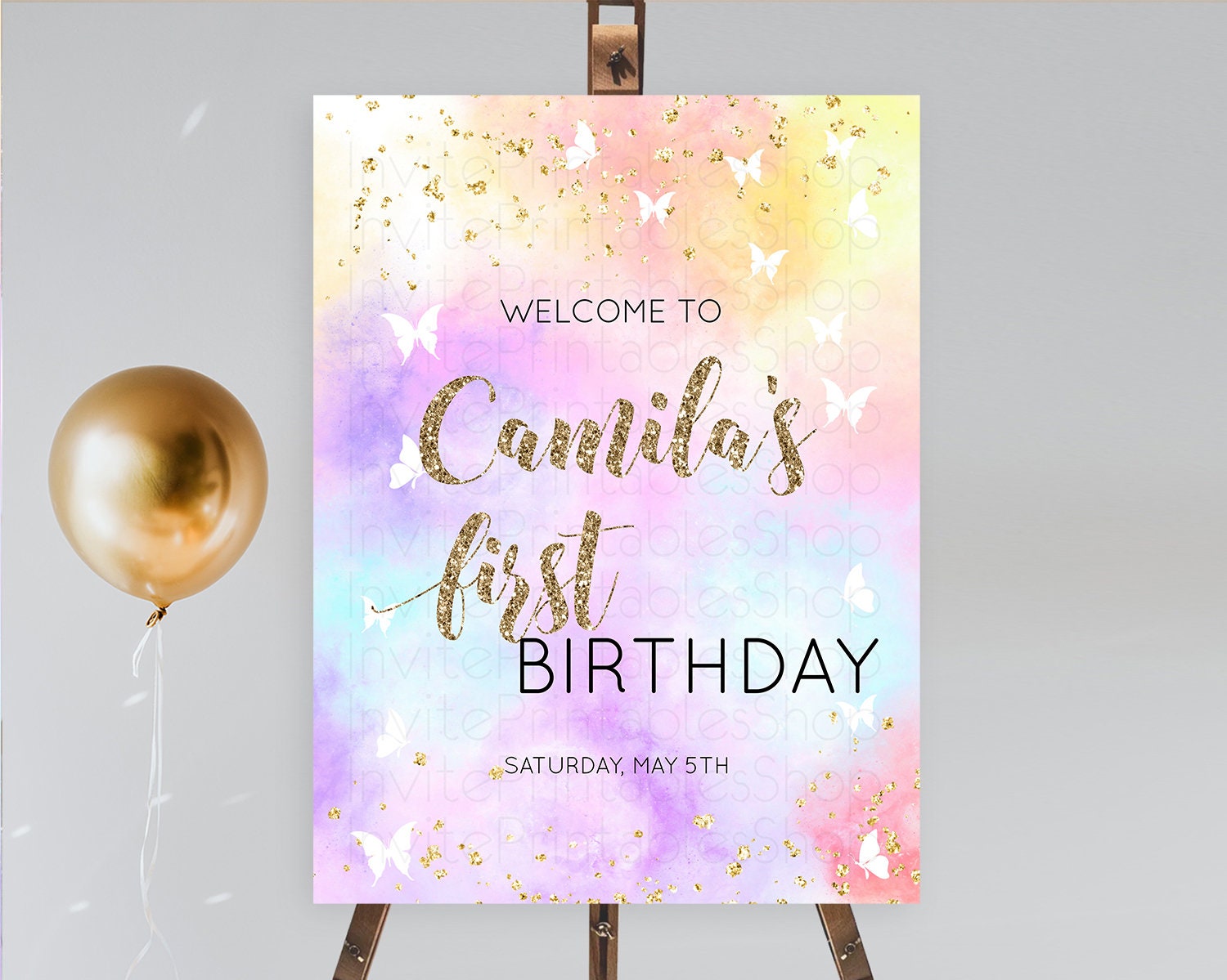 Pastel Welcome Sign Pastel Rainbow Welcome Sign Colorful Rainbow Confetti Watercolor Glitter Pastel First Birthday Welcome Sign D10435