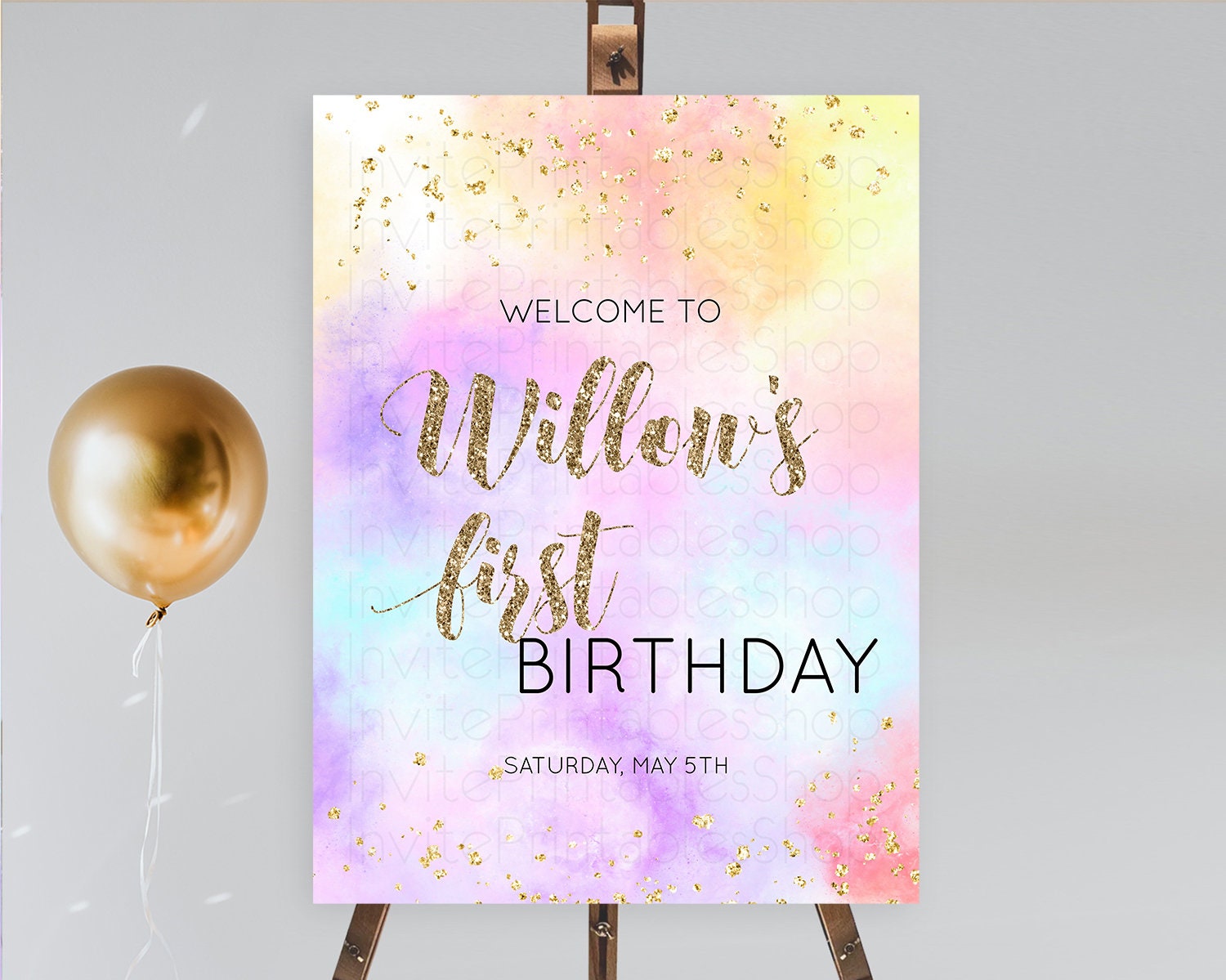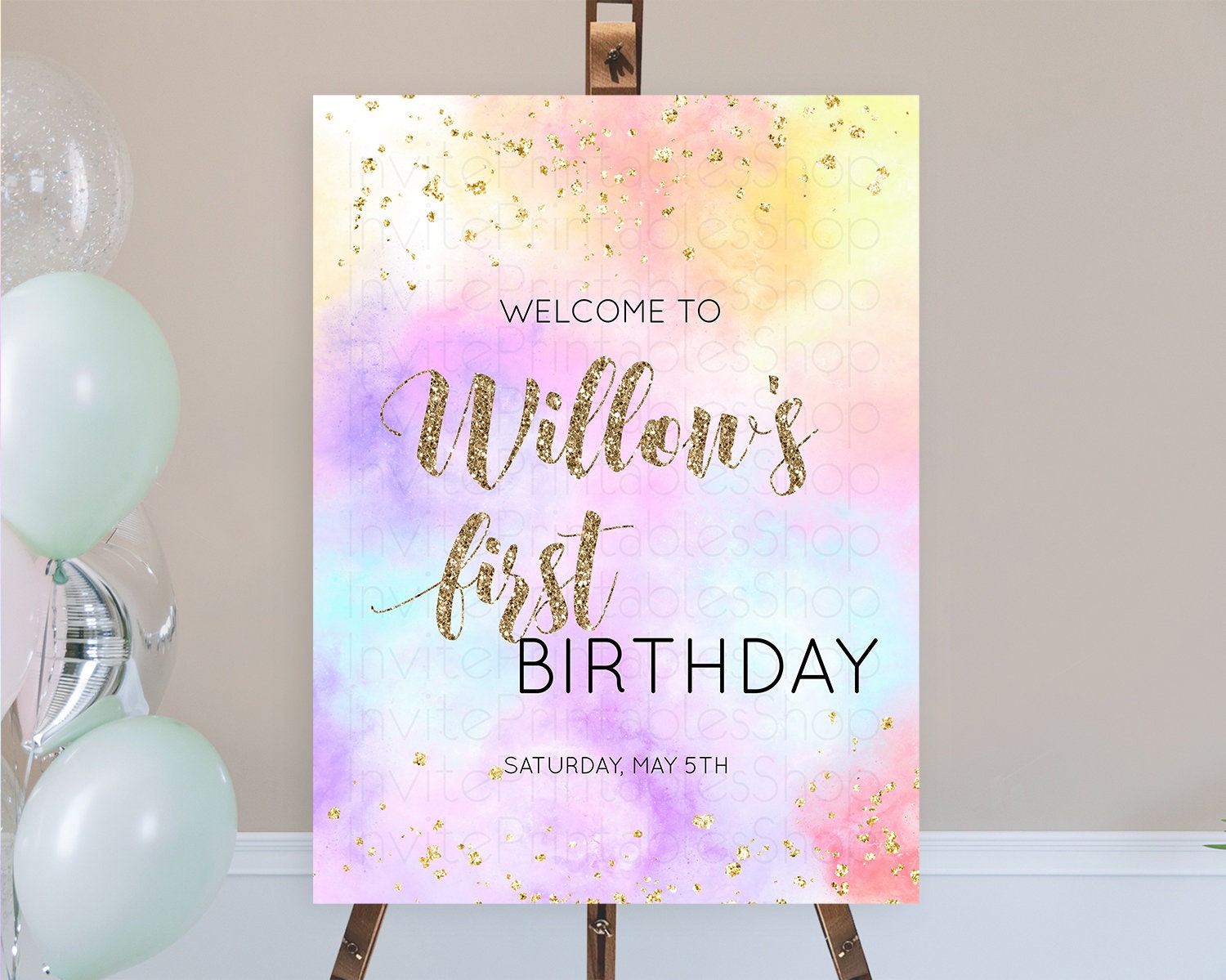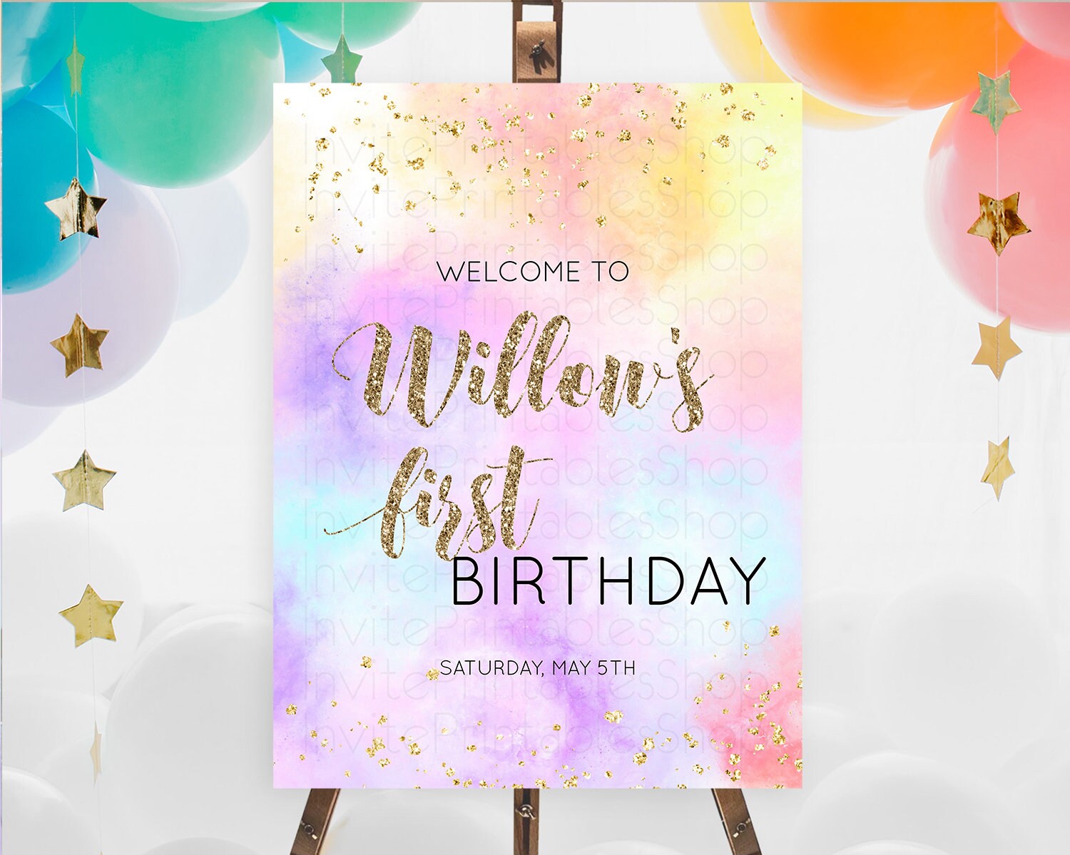Pastel Welcome Sign Pastel Rainbow Welcome Sign Colorful Rainbow Confetti Watercolor Glitter Pastel First Birthday Welcome Sign D10435