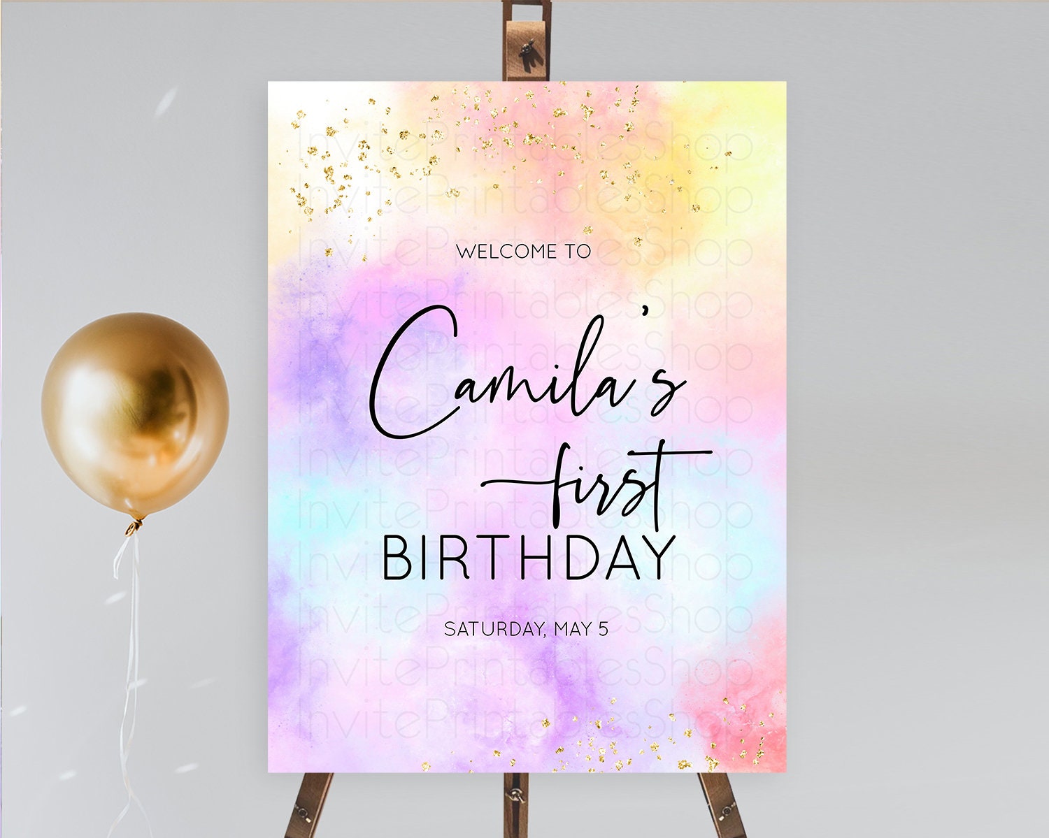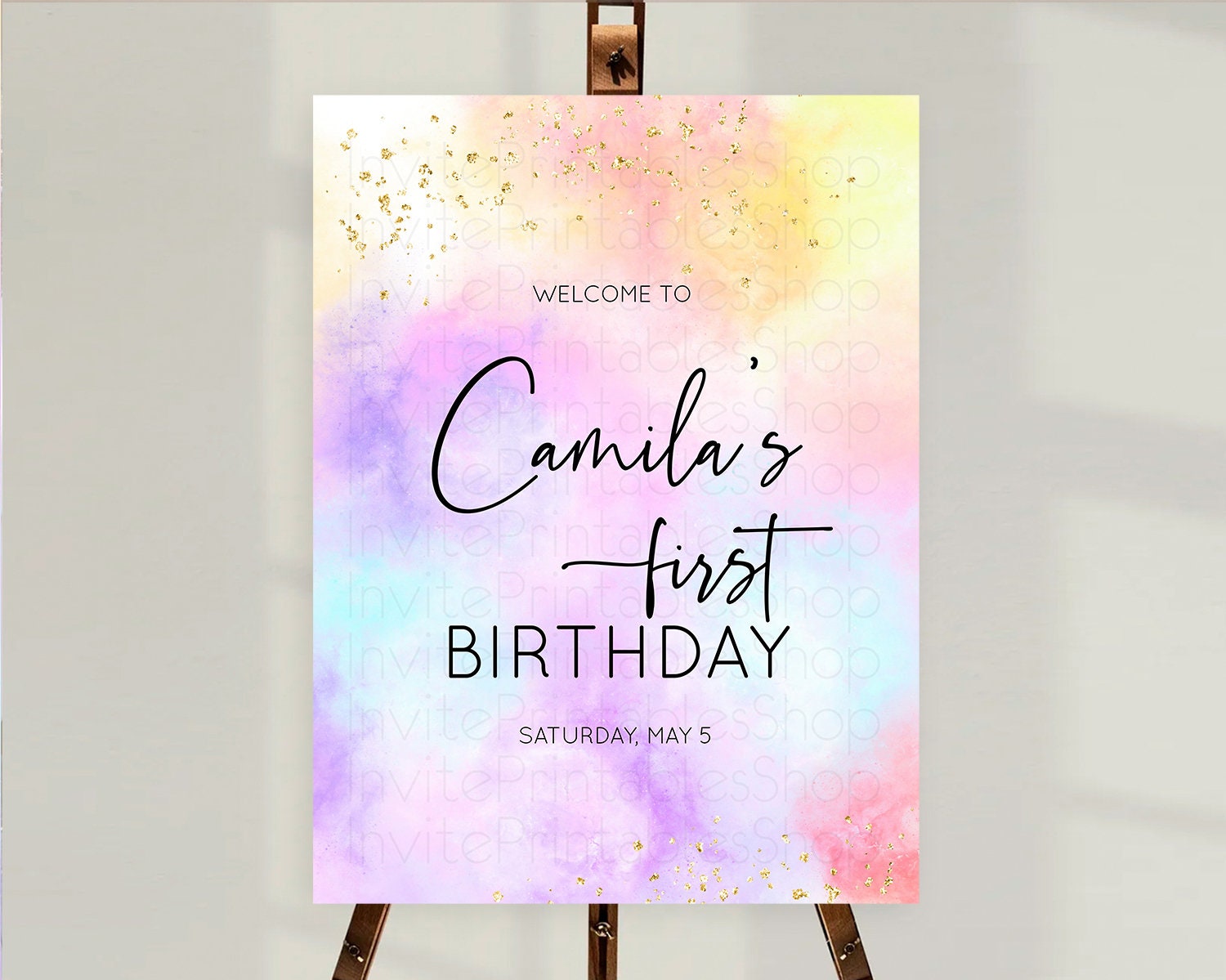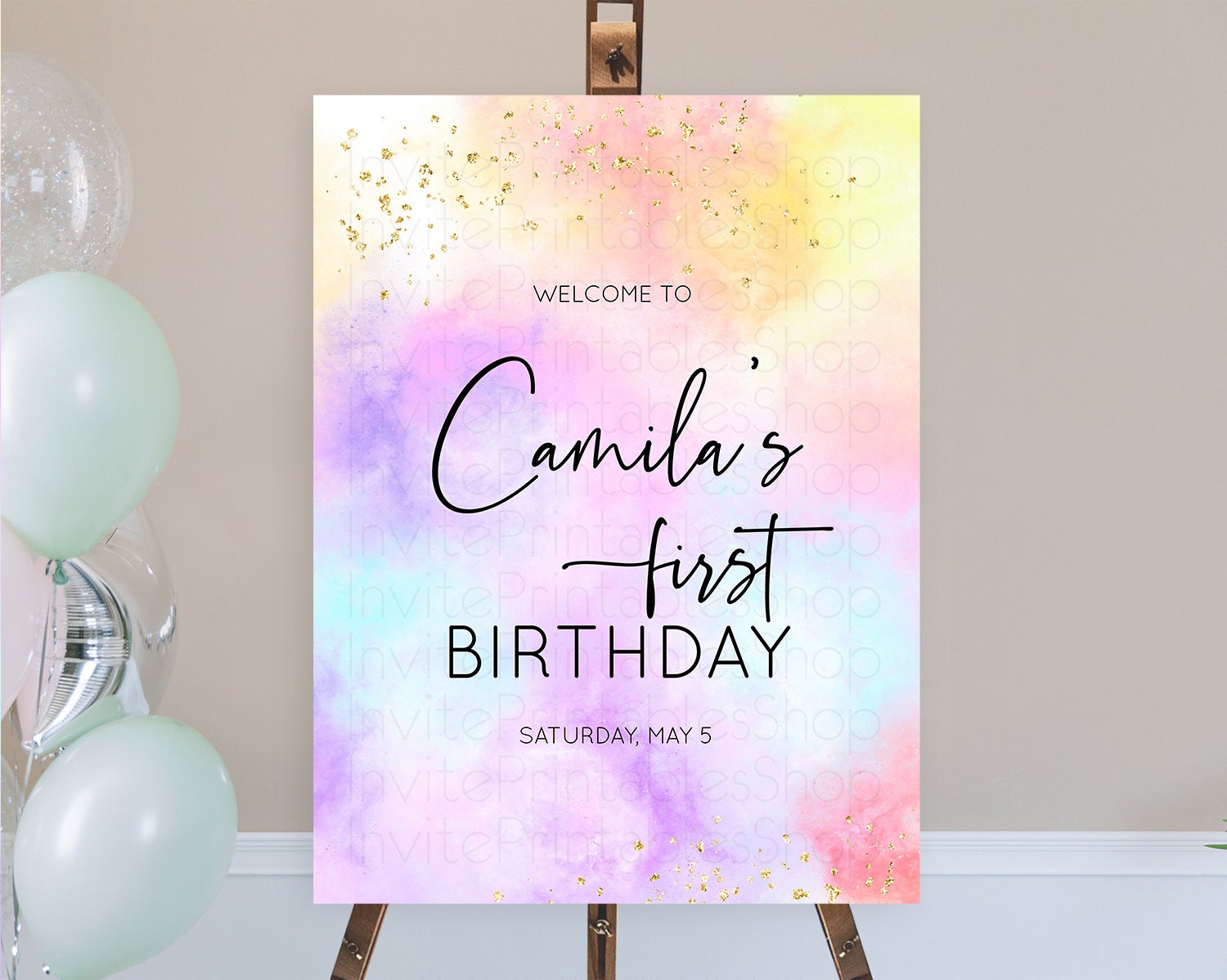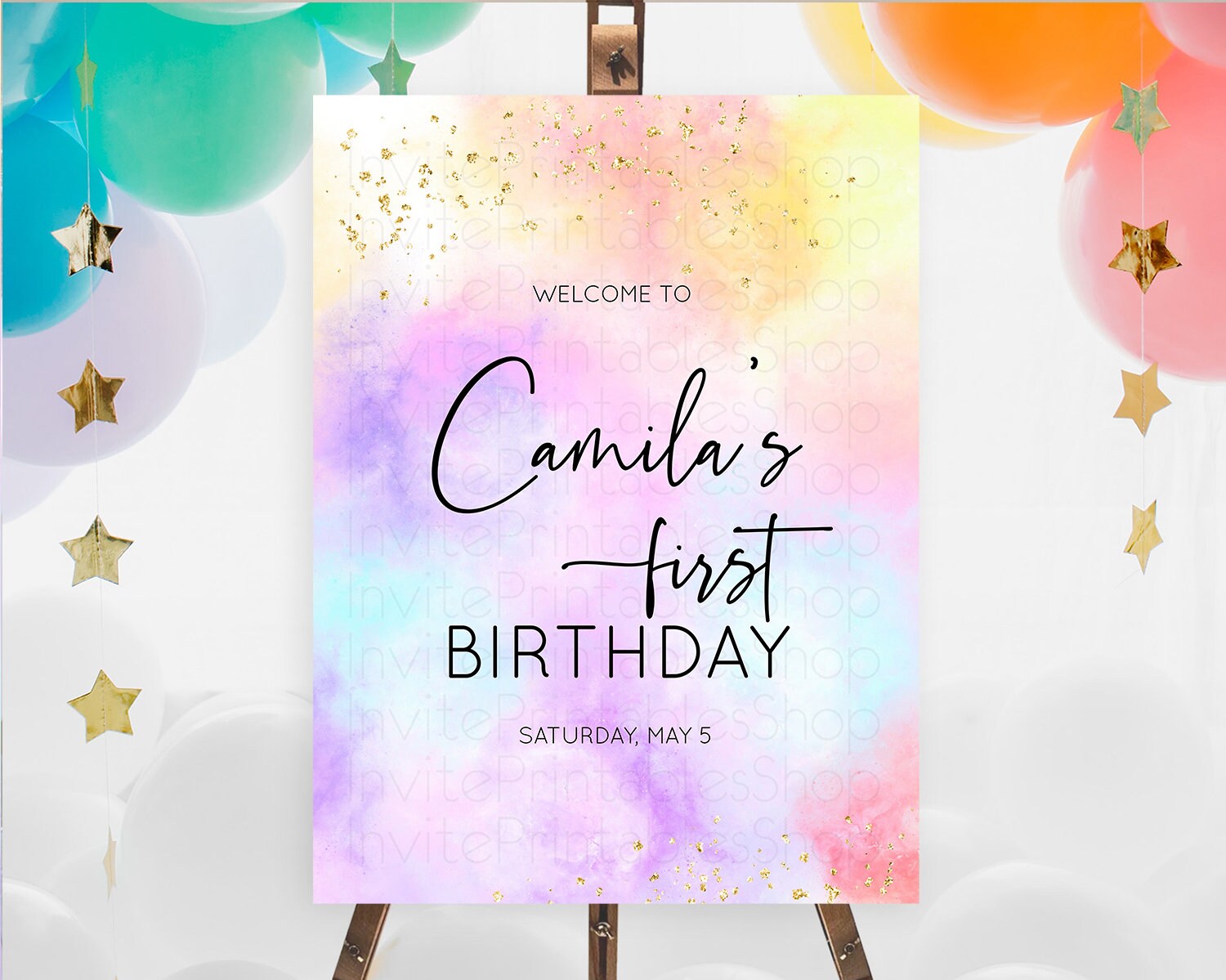 Pastel Welcome Sign Pastel Rainbow Welcome Sign Colorful Rainbow Confetti Watercolor Glitter Pastel First Birthday Welcome Sign D10437