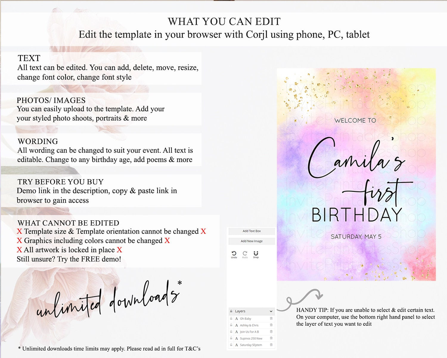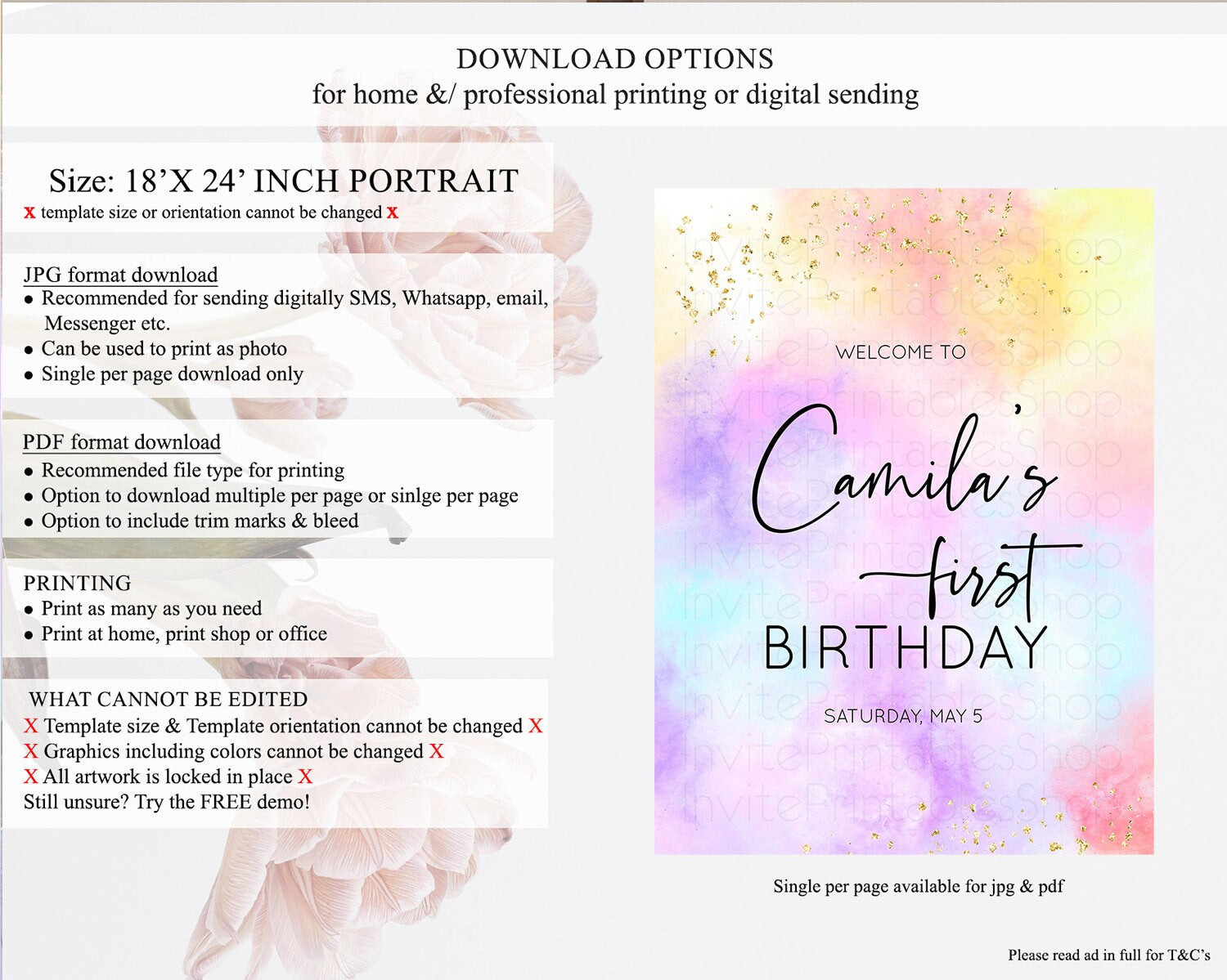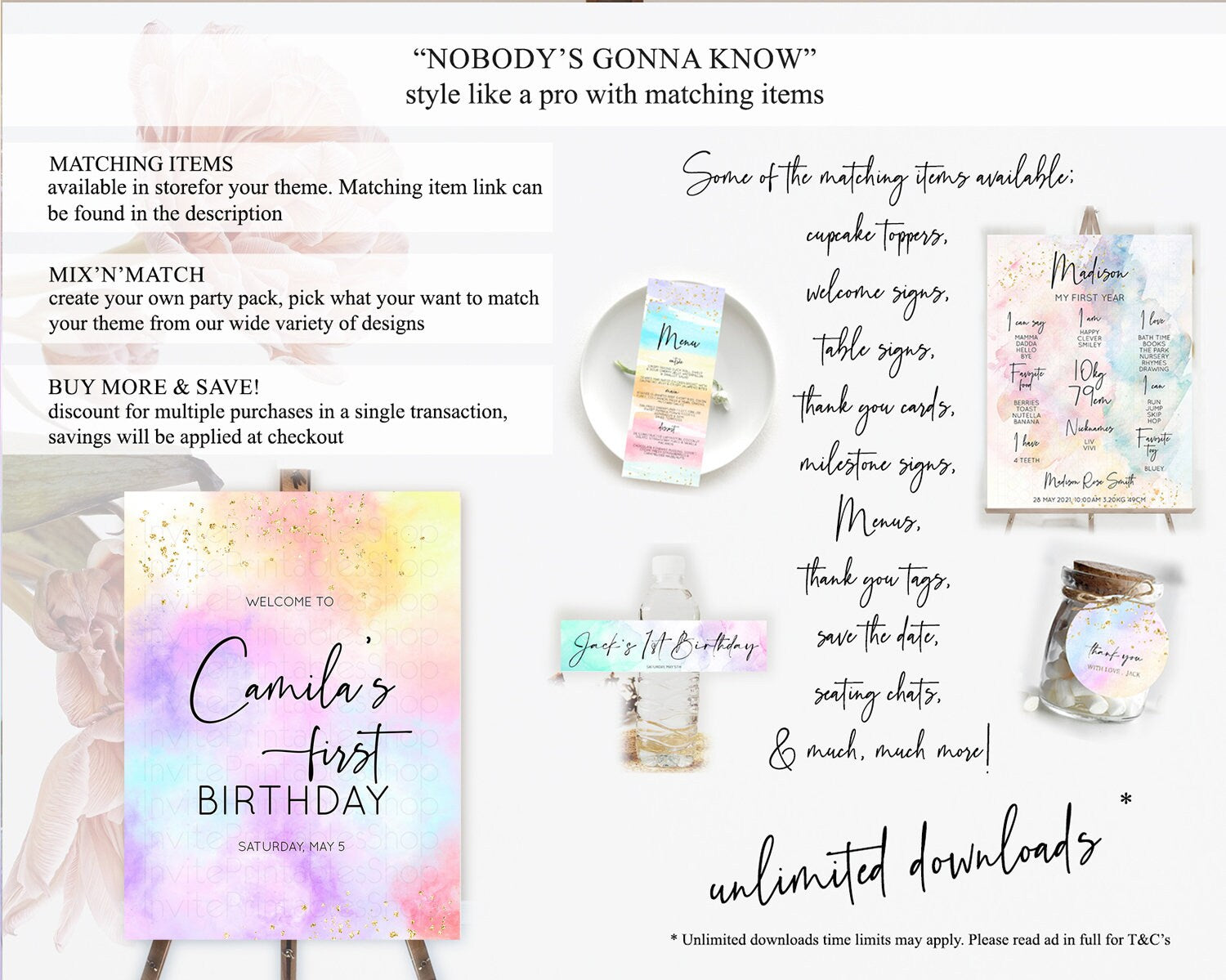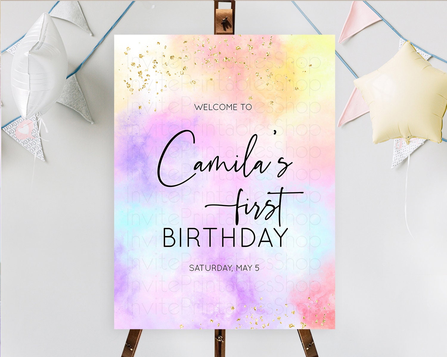 Pastel Welcome Sign Pastel Rainbow Welcome Sign Colorful Rainbow Confetti Watercolor Glitter Pastel First Birthday Welcome Sign D10437