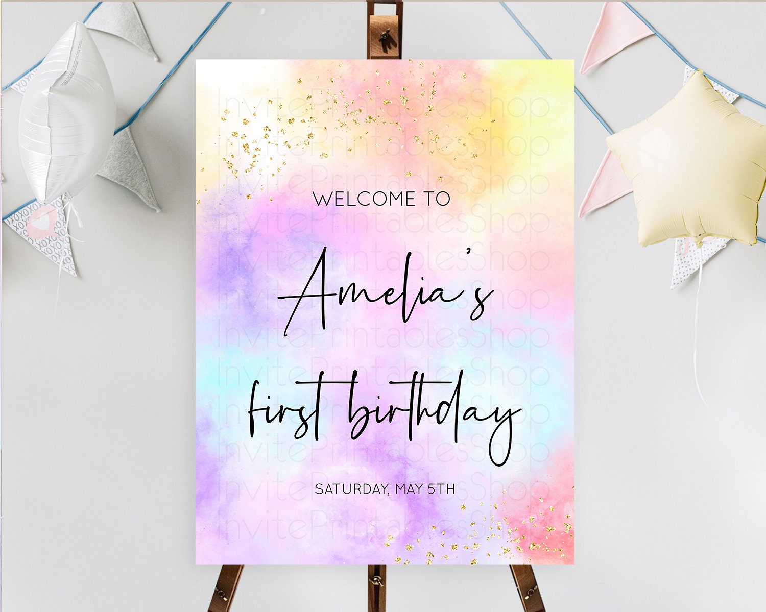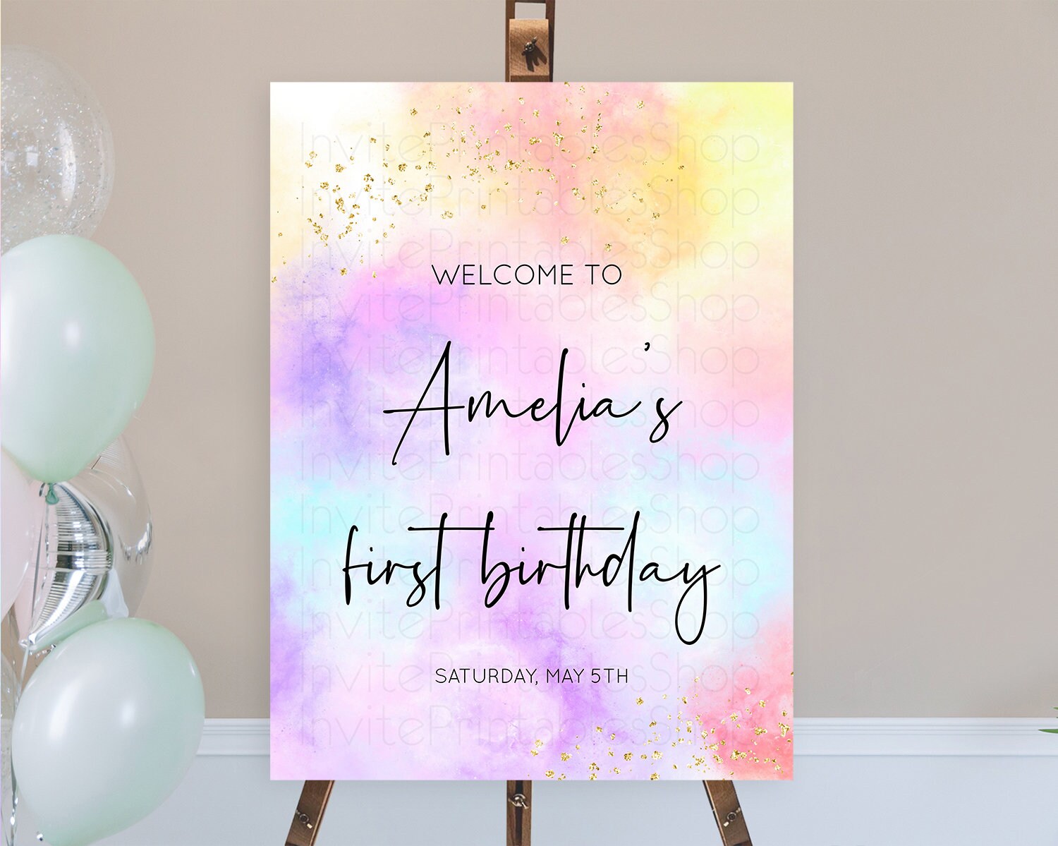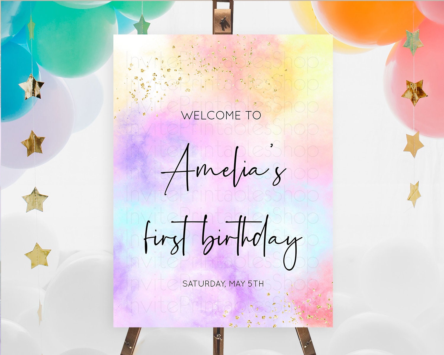 Pastel Welcome Sign Pastel Rainbow Welcome Sign Colorful Rainbow Confetti Watercolor Glitter Pastel First Birthday Welcome Sign D10438