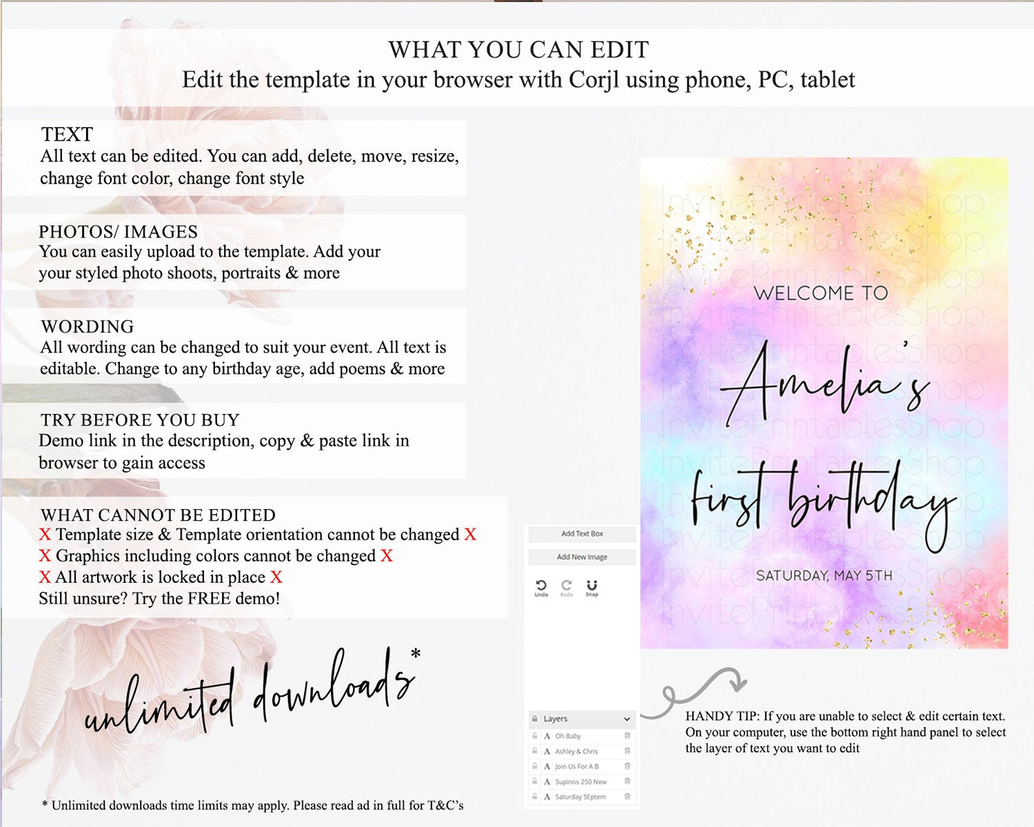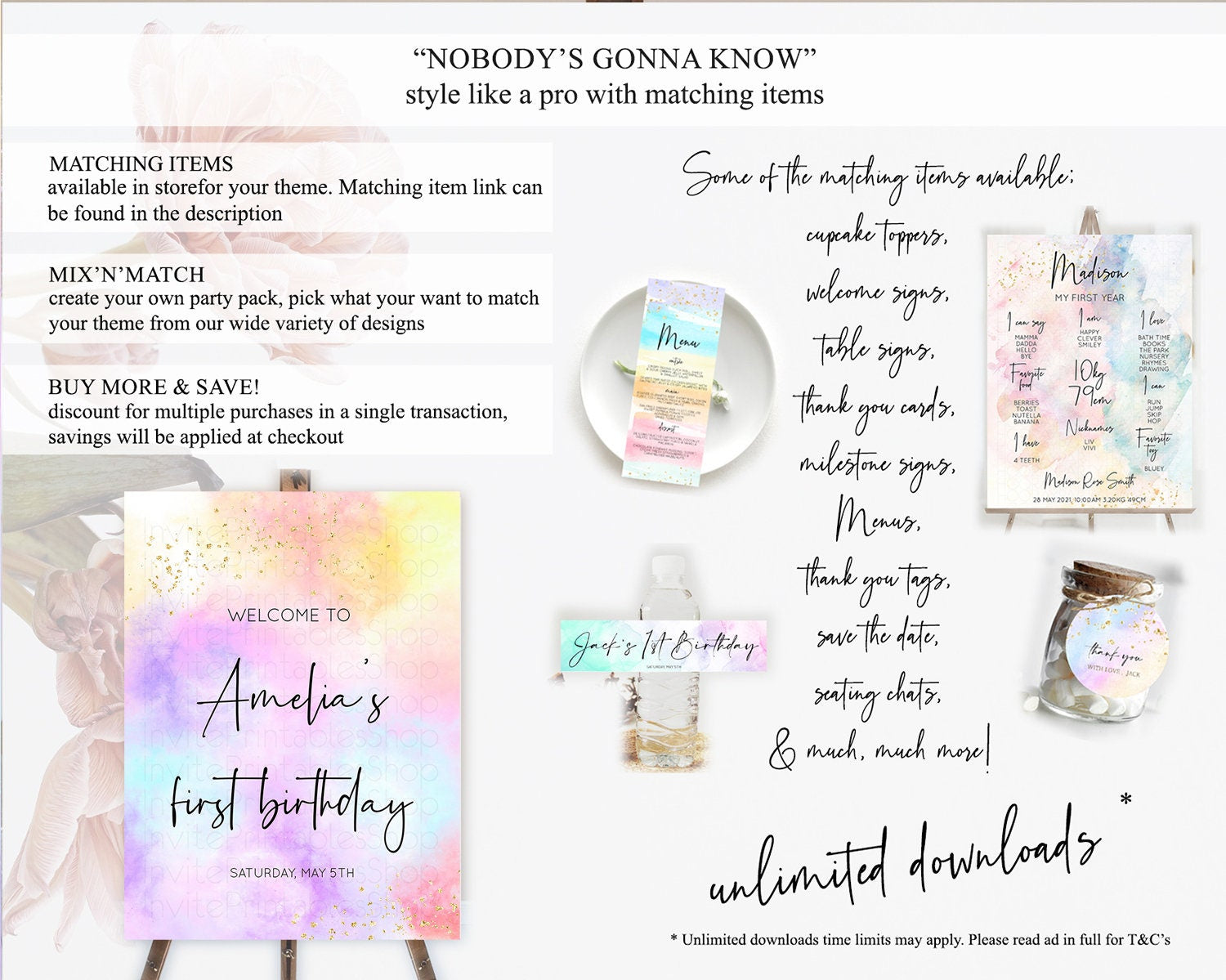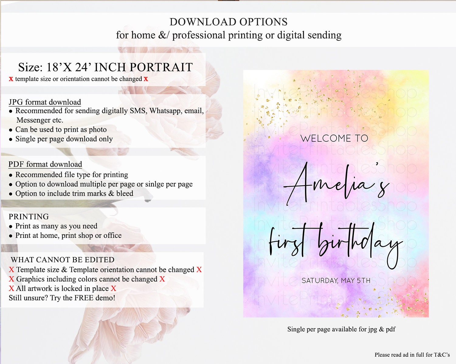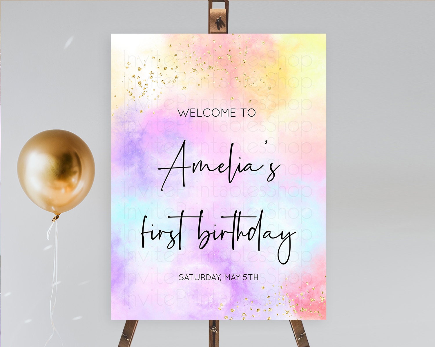Pastel Welcome Sign Pastel Rainbow Welcome Sign Colorful Rainbow Confetti Watercolor Glitter Pastel First Birthday Welcome Sign D10438
