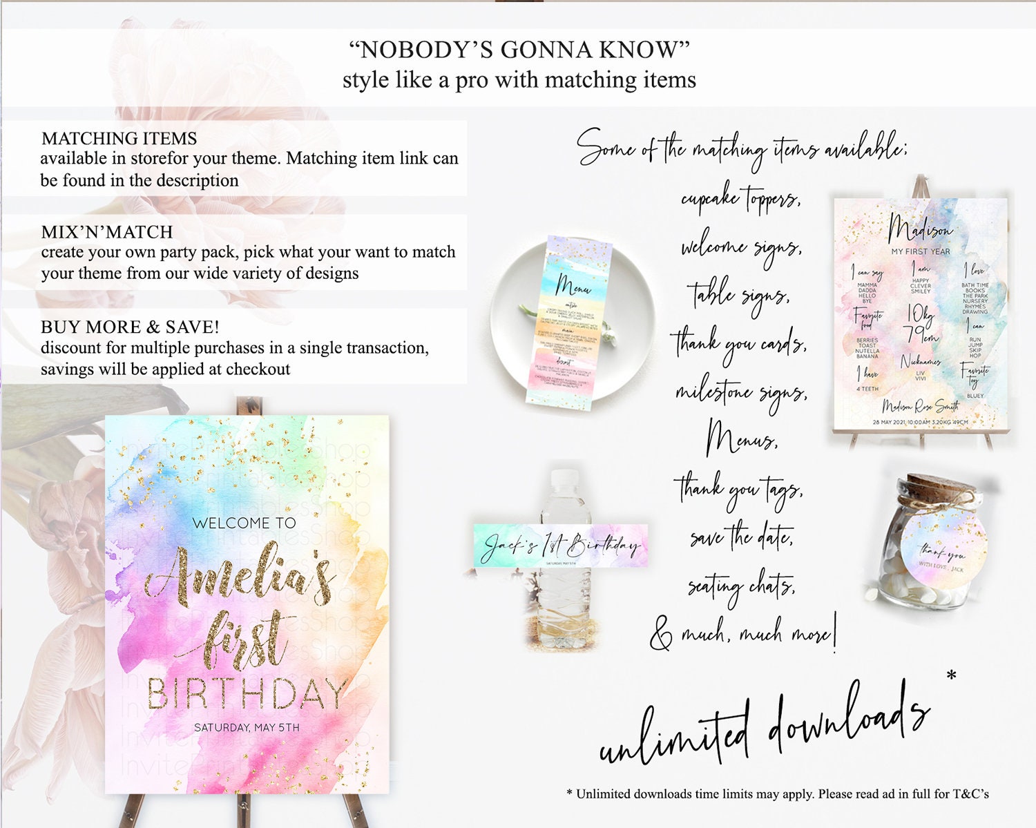 Pastel Welcome Sign Pastel Rainbow Welcome Sign Colorful Rainbow Confetti Watercolor Glitter Pastel First Birthday Welcome Sign D10450