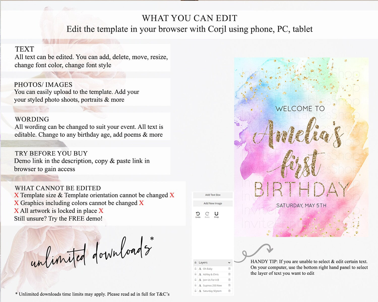 • After purchase, Corjl emails your editing link. Allow up to 15 minutes for delivery.