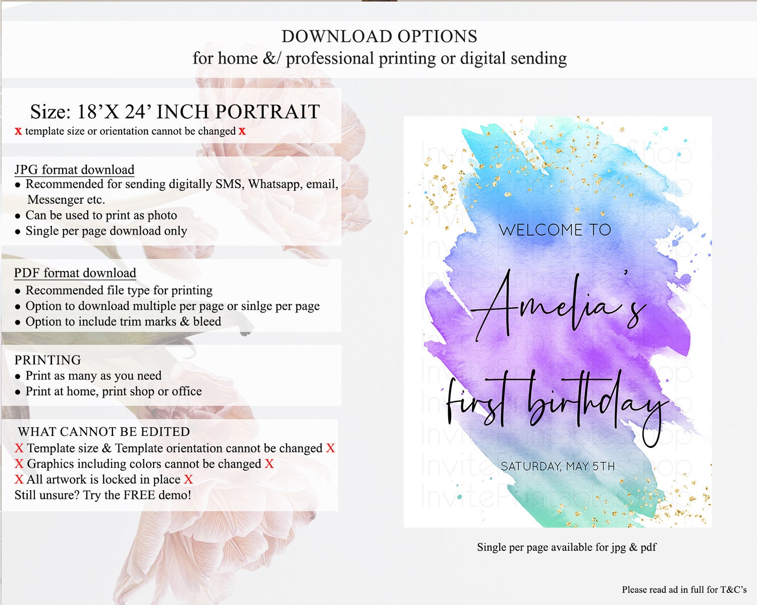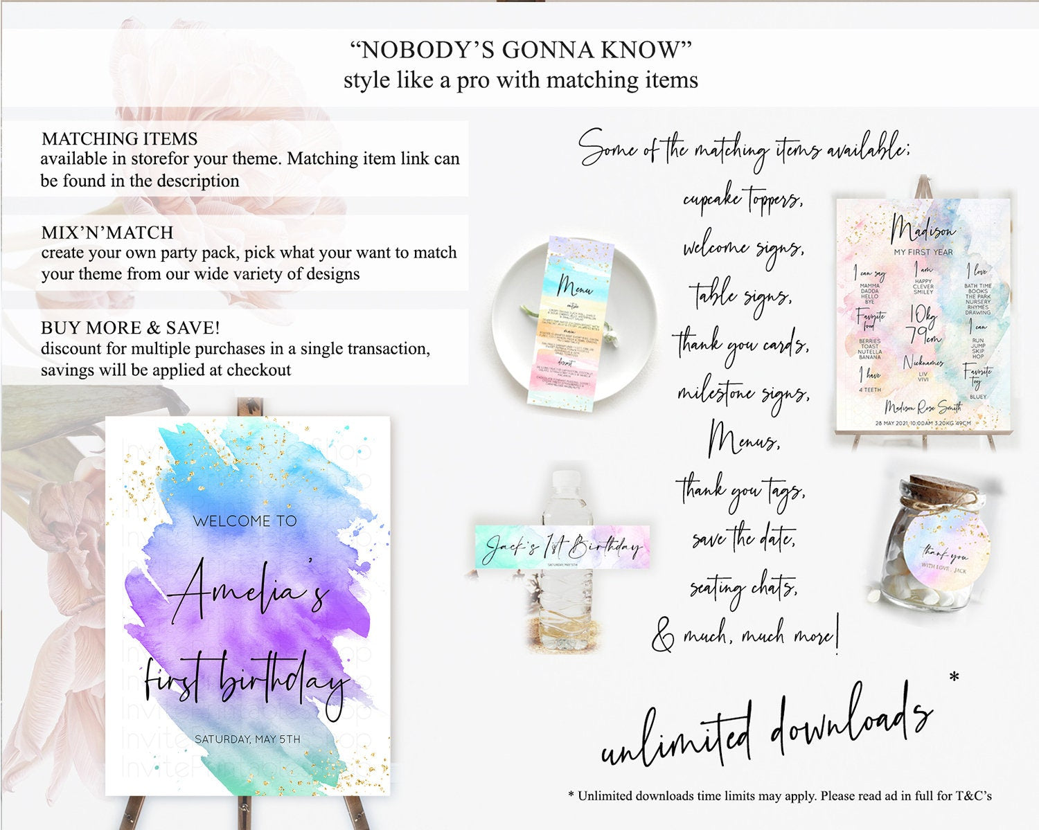 Pastel Welcome Sign Pastel Rainbow Welcome Sign Colorful Rainbow Confetti Watercolor Glitter Pastel First Birthday Welcome Sign D10491